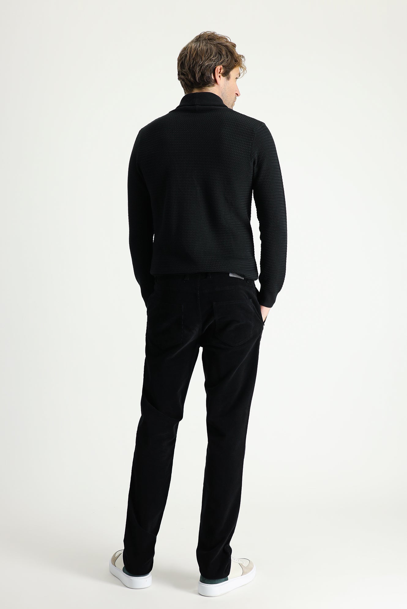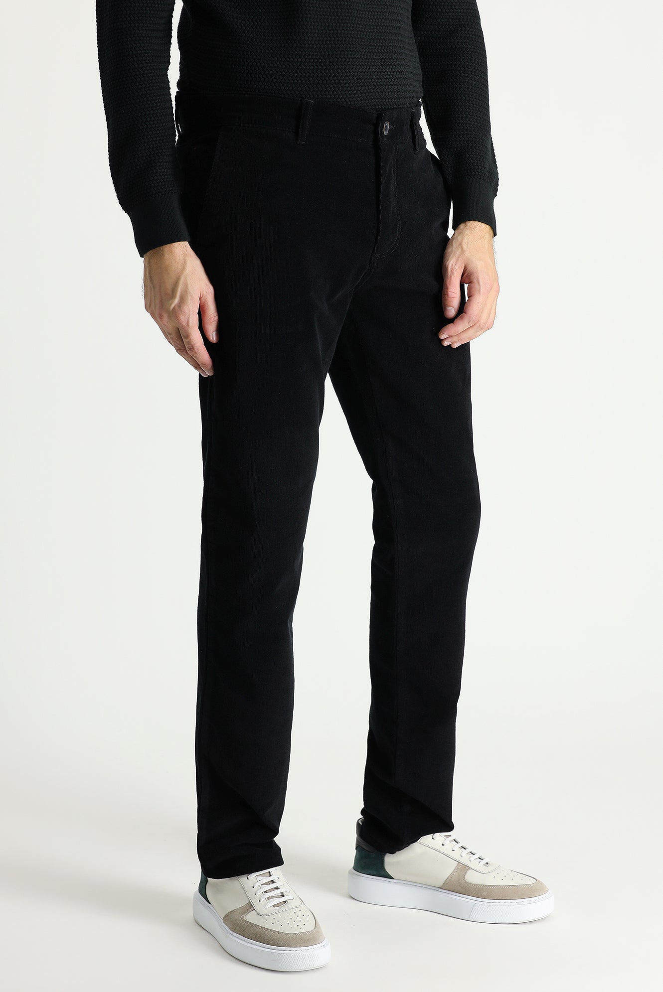 Siyah Slim Fit Dar Kesim Likralı Kadife Pantolon