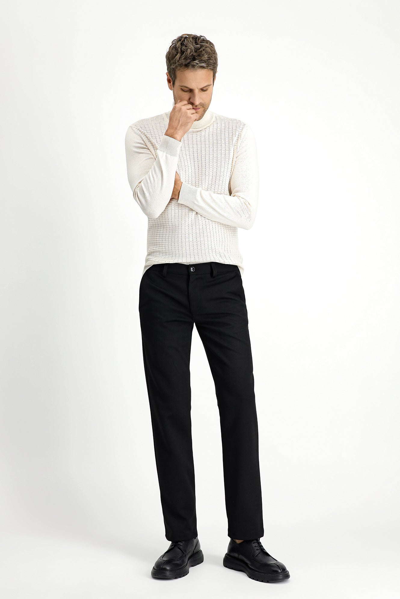 Siyah Slim Fit Dar Kesim Likralı Örme Klasik Kumaş Pantolon