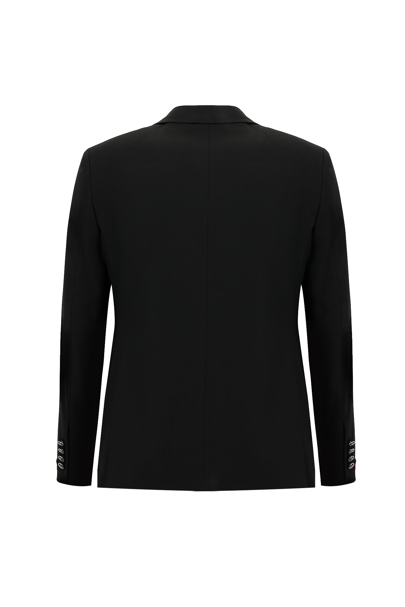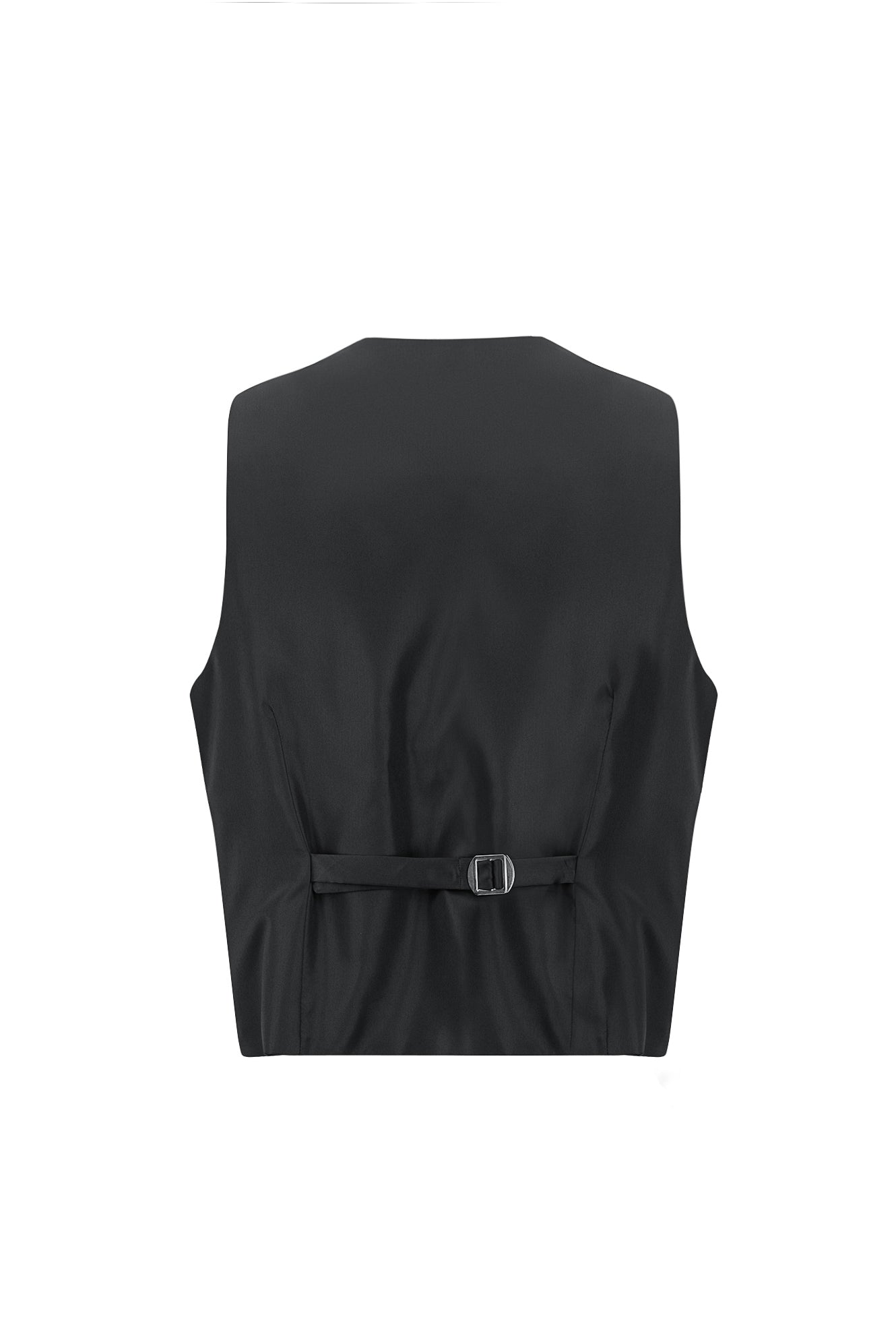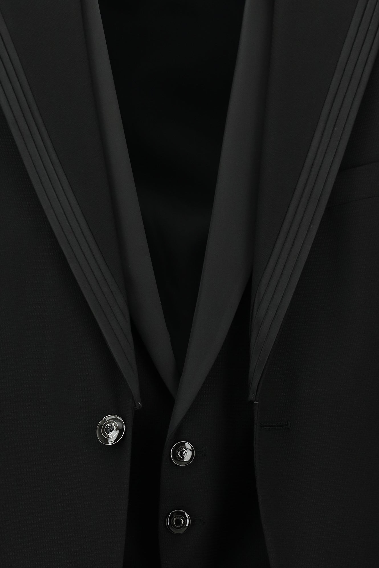 Siyah 7 Drop Slim Fit Dar Kesim Mono Yaka Yelekli Smokin & Damatlık