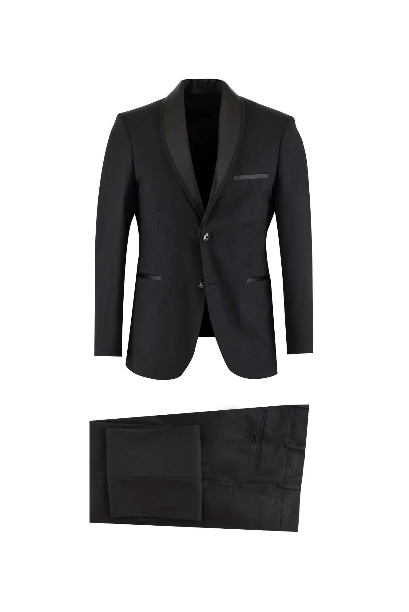 Siyah 7 Drop Slim Fit Dar Kesim Şal Yaka Smokin & Damatlık