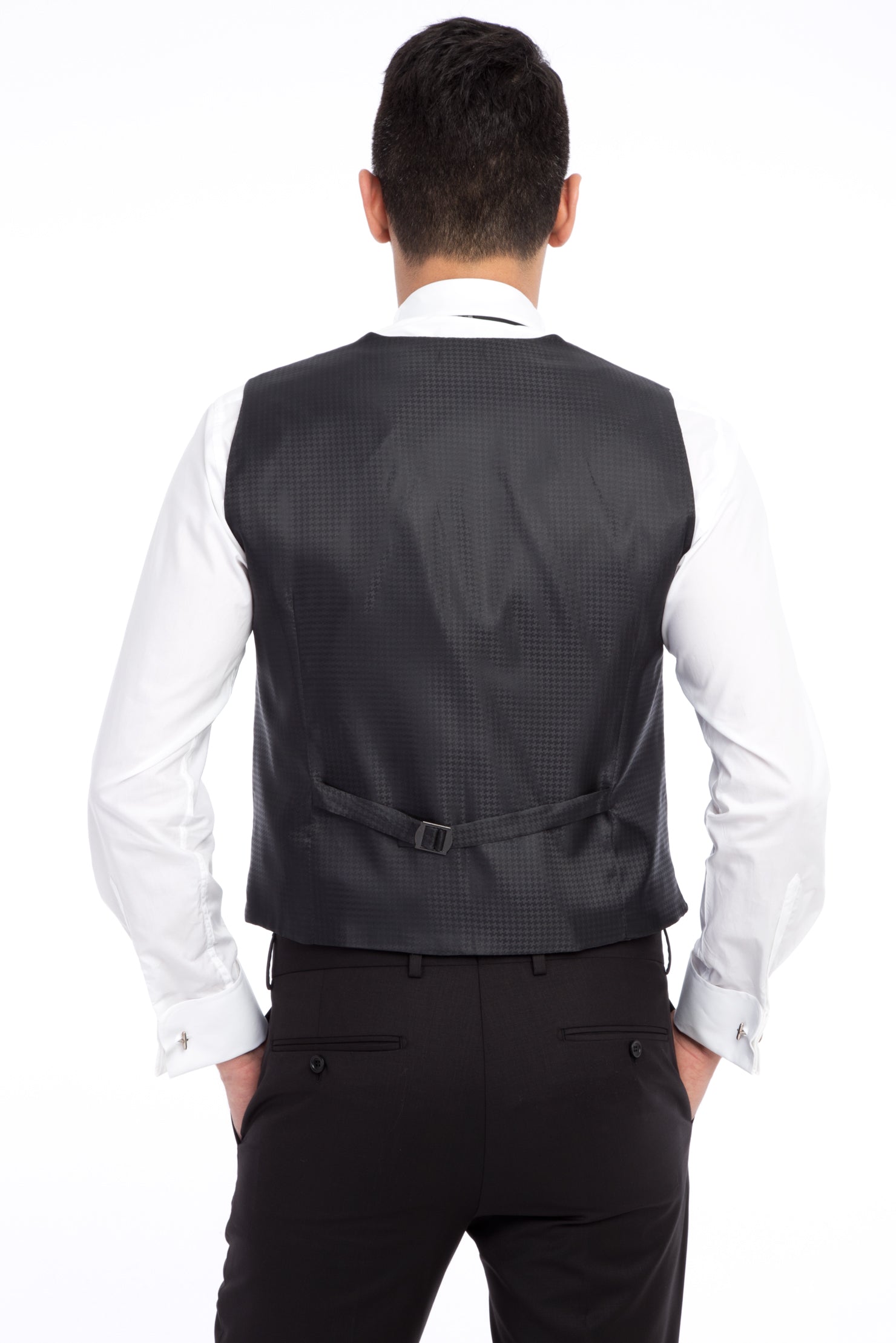 Siyah Slim Fit Dar Kesim Şal Yaka Desenli Yelekli Smokin / Damatlık