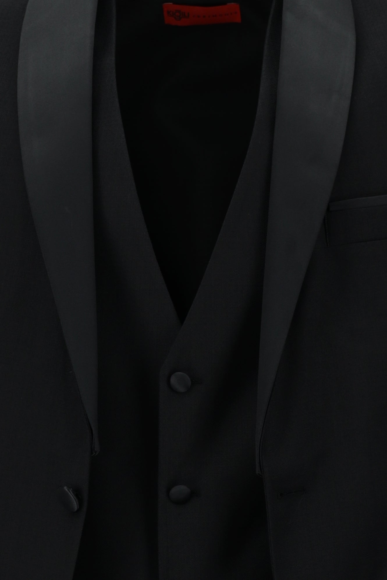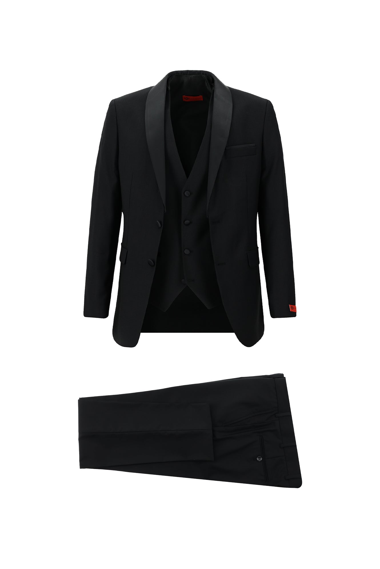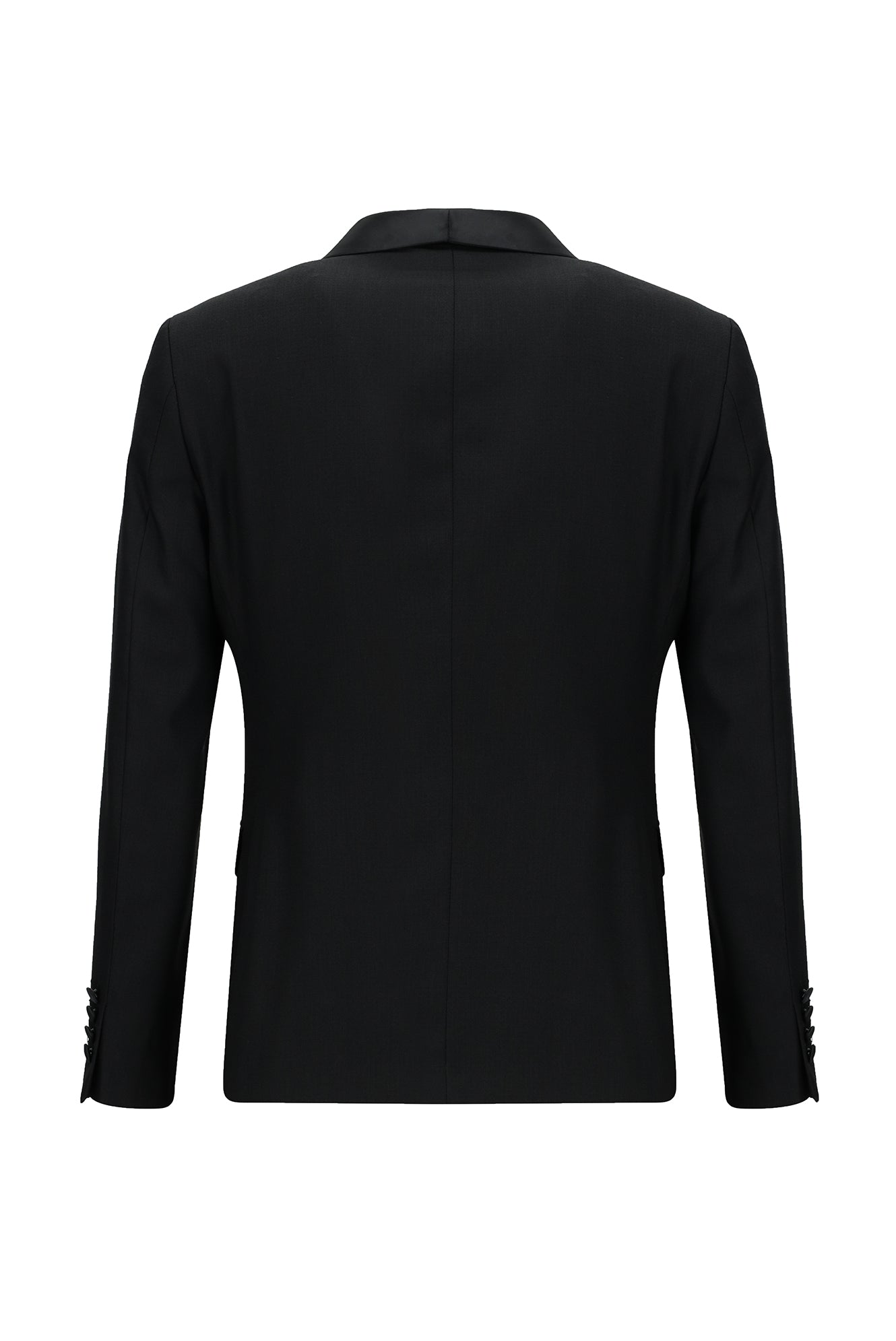 Siyah Slim Fit Dar Kesim Şal Yaka Yelekli Smokin & Damatlık