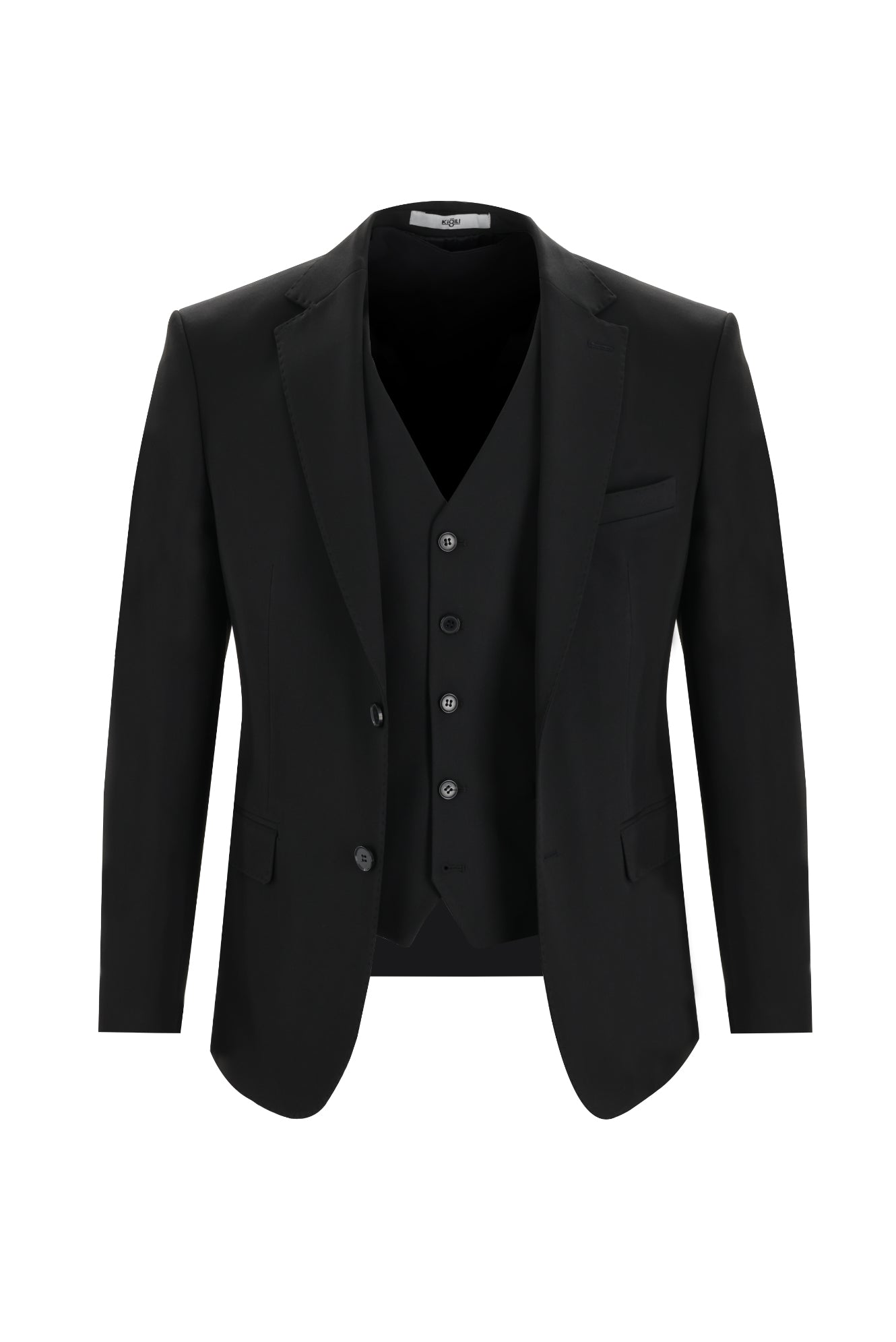 Siyah Slim Fit Dar Kesim Yelekli Takım Elbise