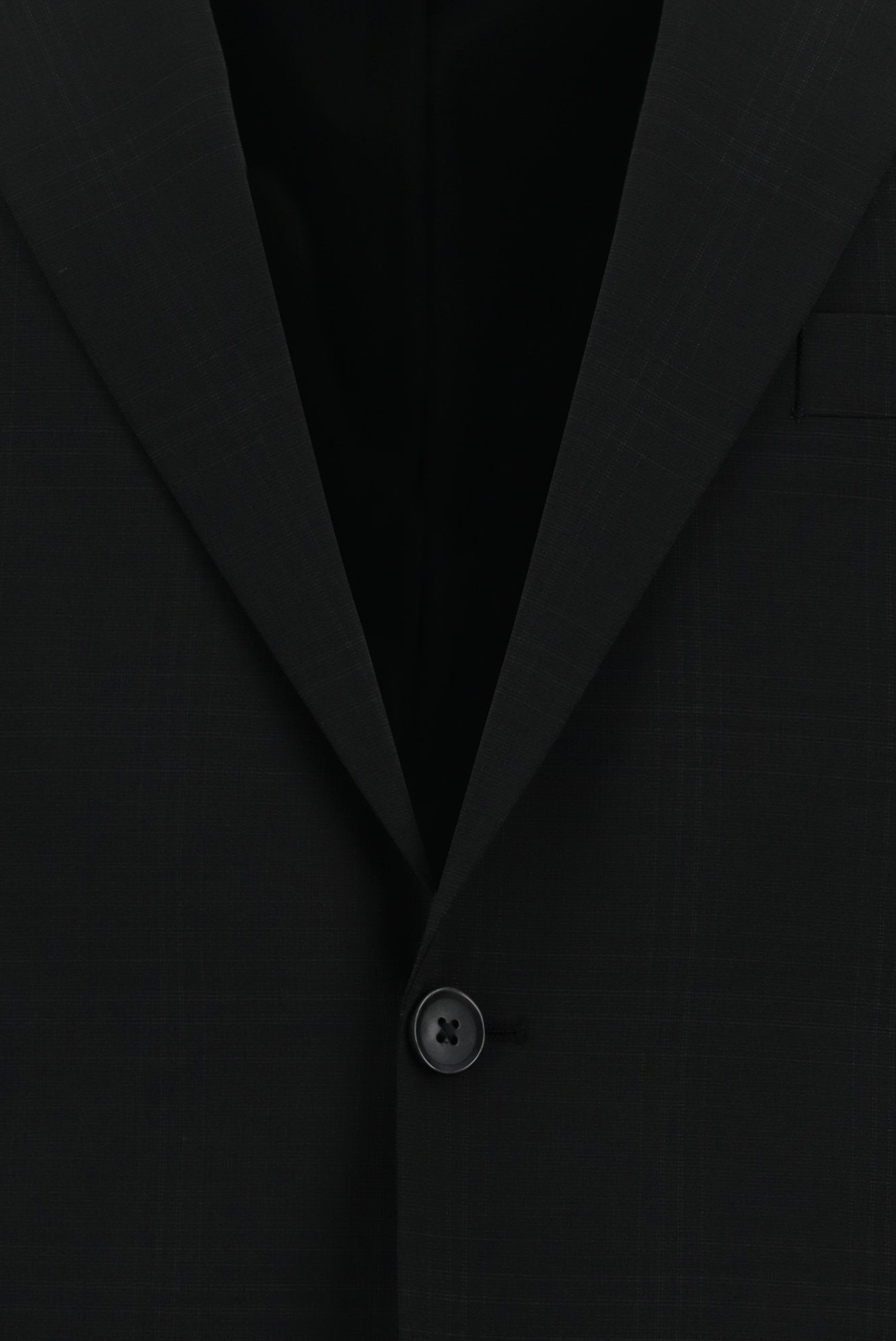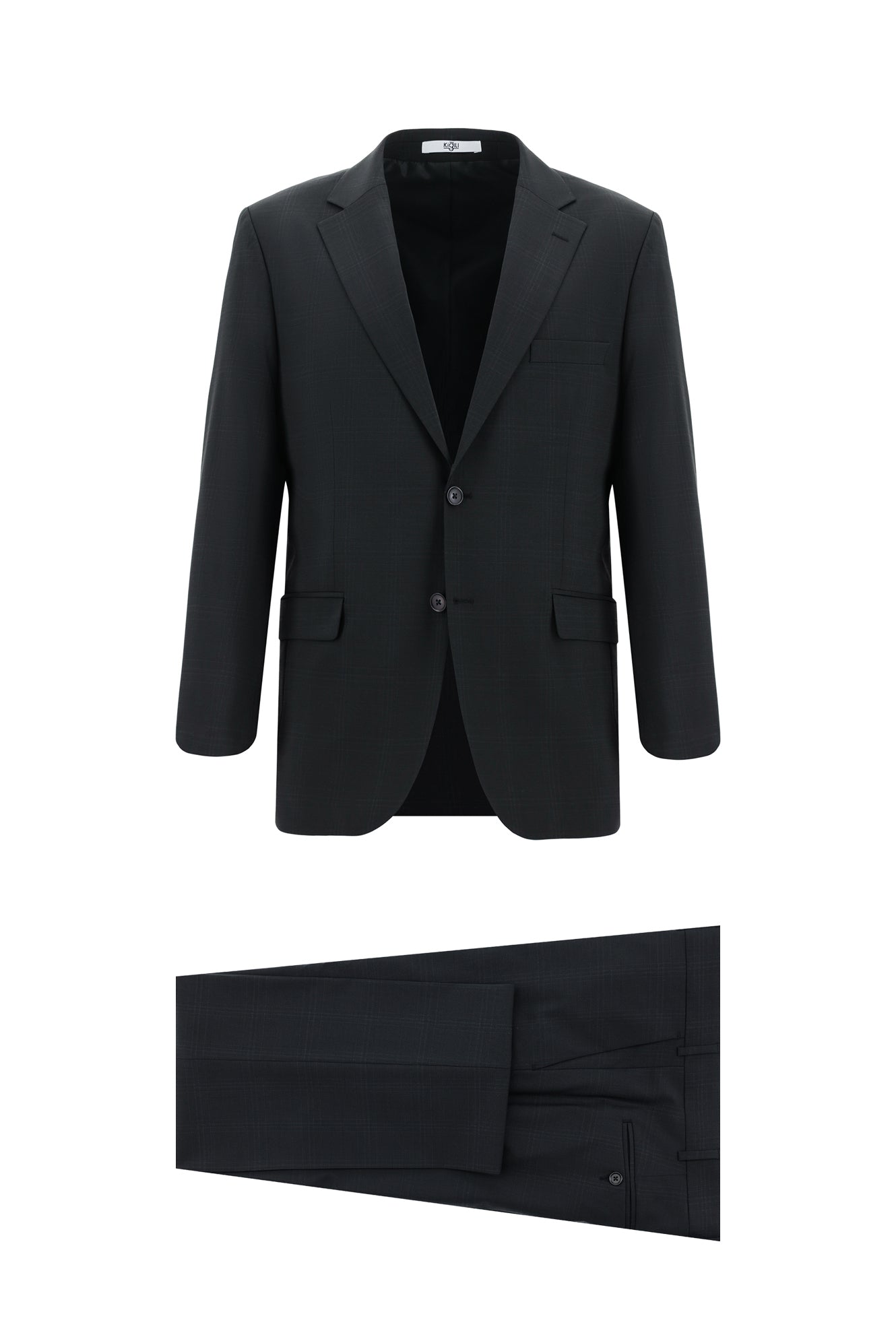 Siyah Slim Fit Dar Kesim Yünlü Klasik Ekose Takım Elbise