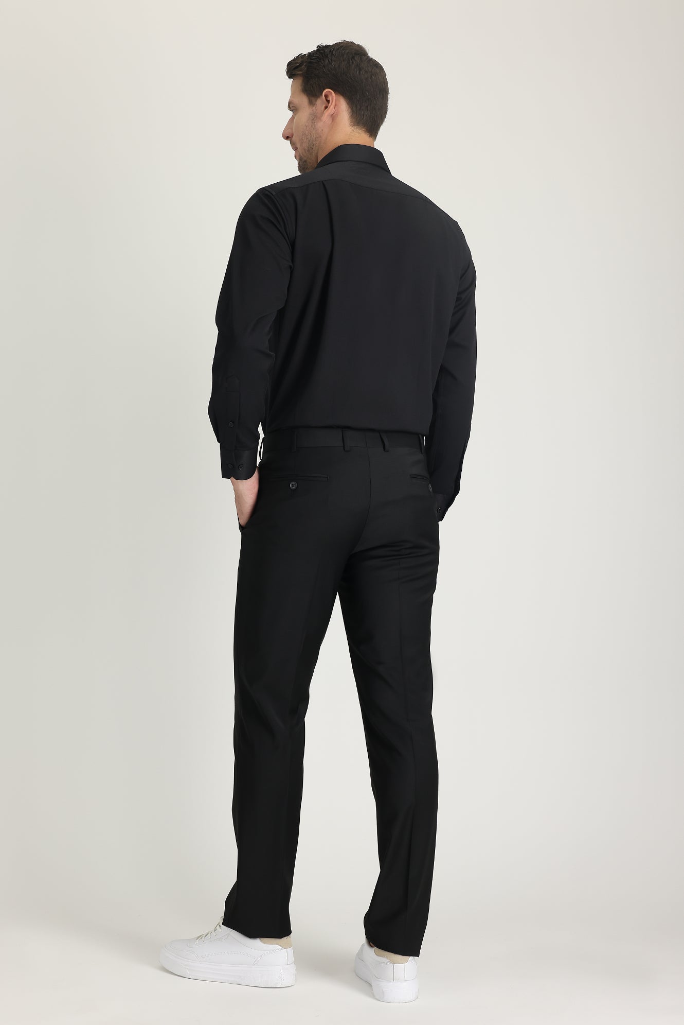Siyah Slim Fit Dar Kesim Yünlü Klasik Kumaş Pantolon