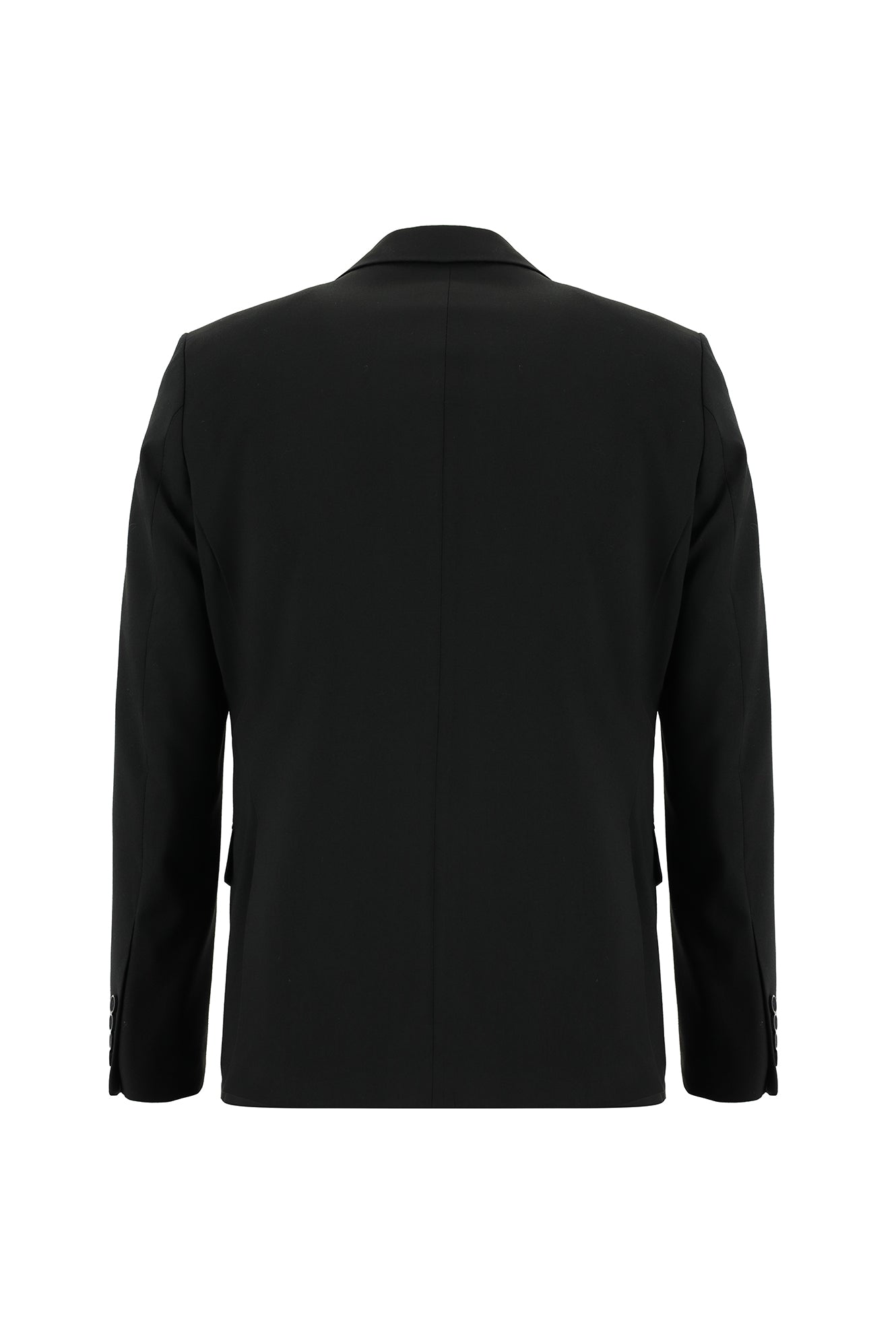 Siyah 7 Drop Slim Fit Dar Kesim Yünlü Klasik Takım Elbise