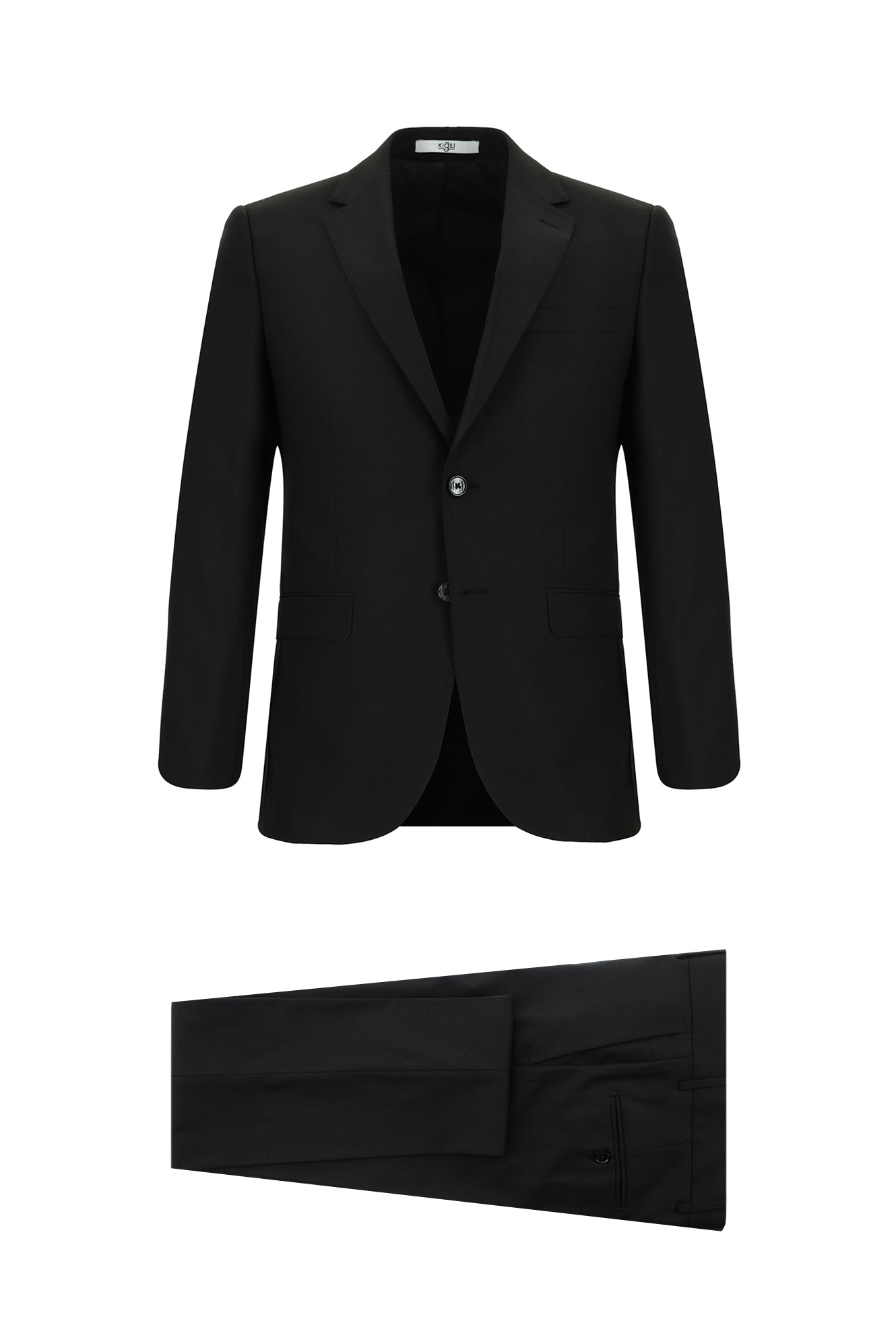 Siyah Slim Fit Dar Kesim Yünlü Klasik Takım Elbise