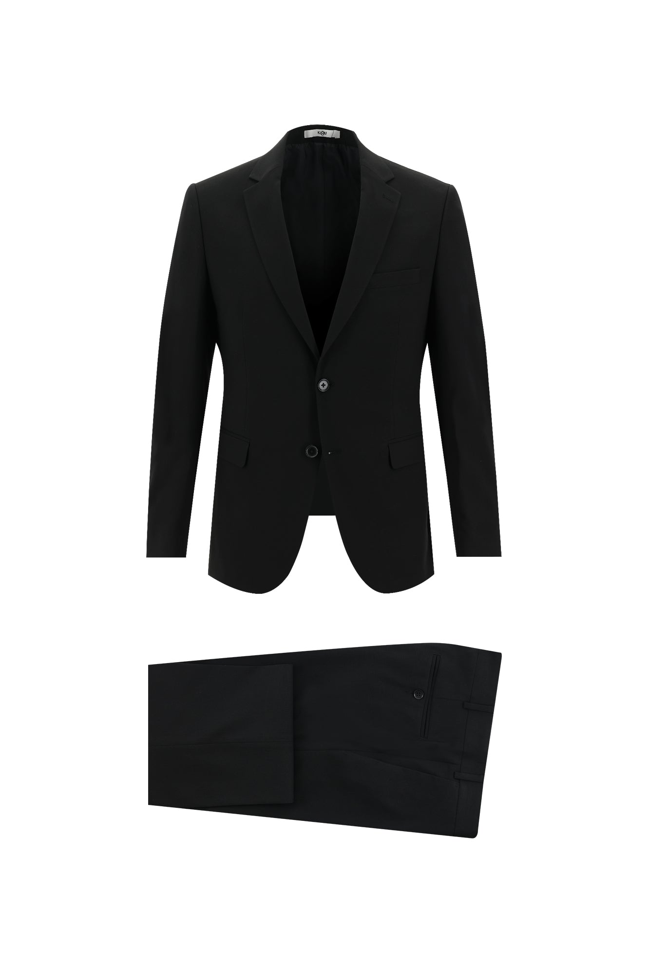 Siyah 7 Drop Slim Fit Dar Kesim Yünlü Takım Elbise