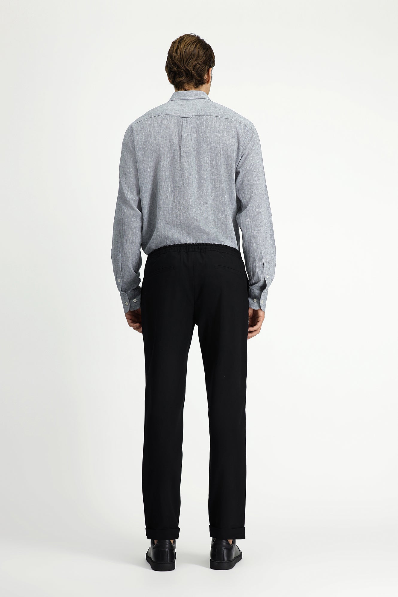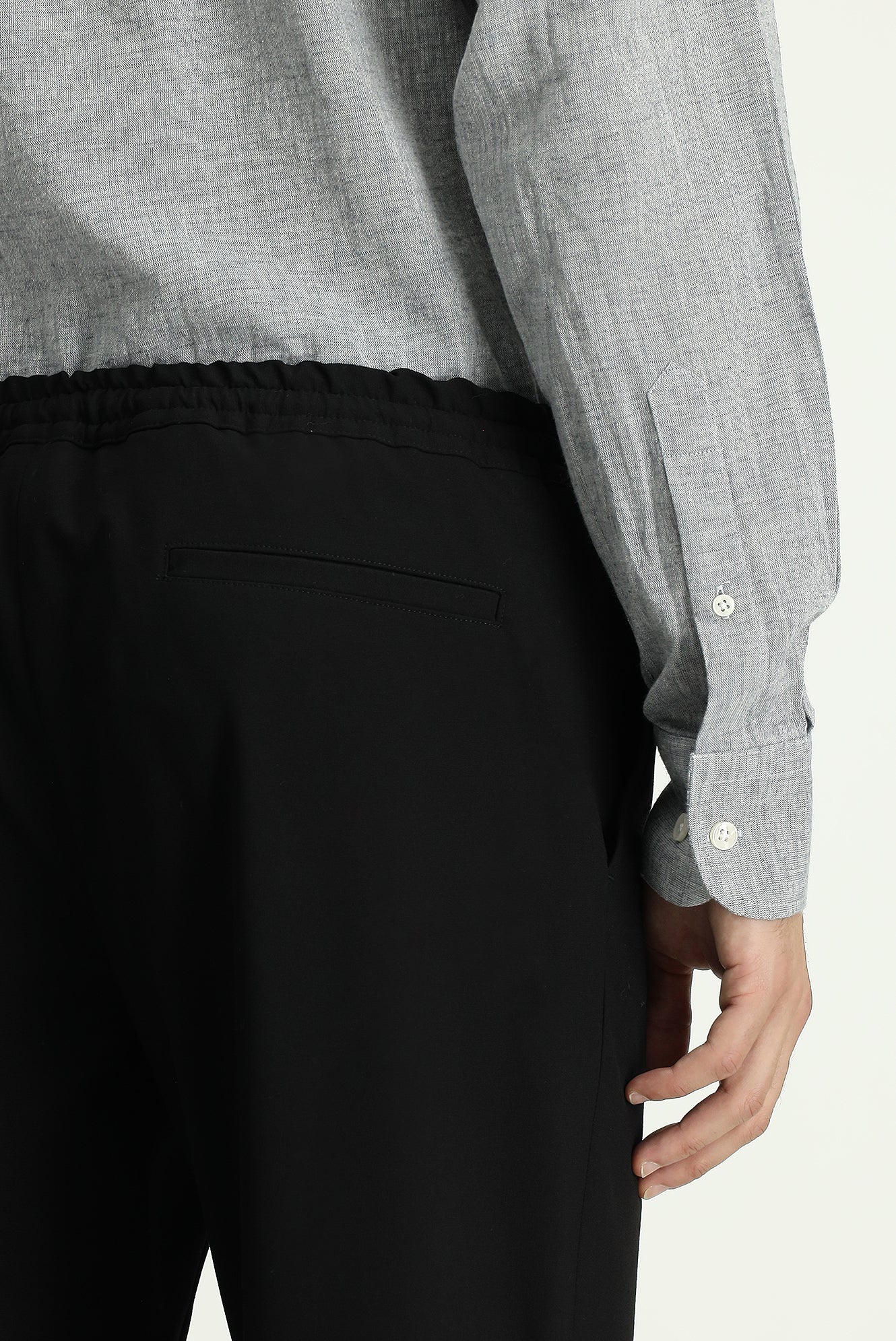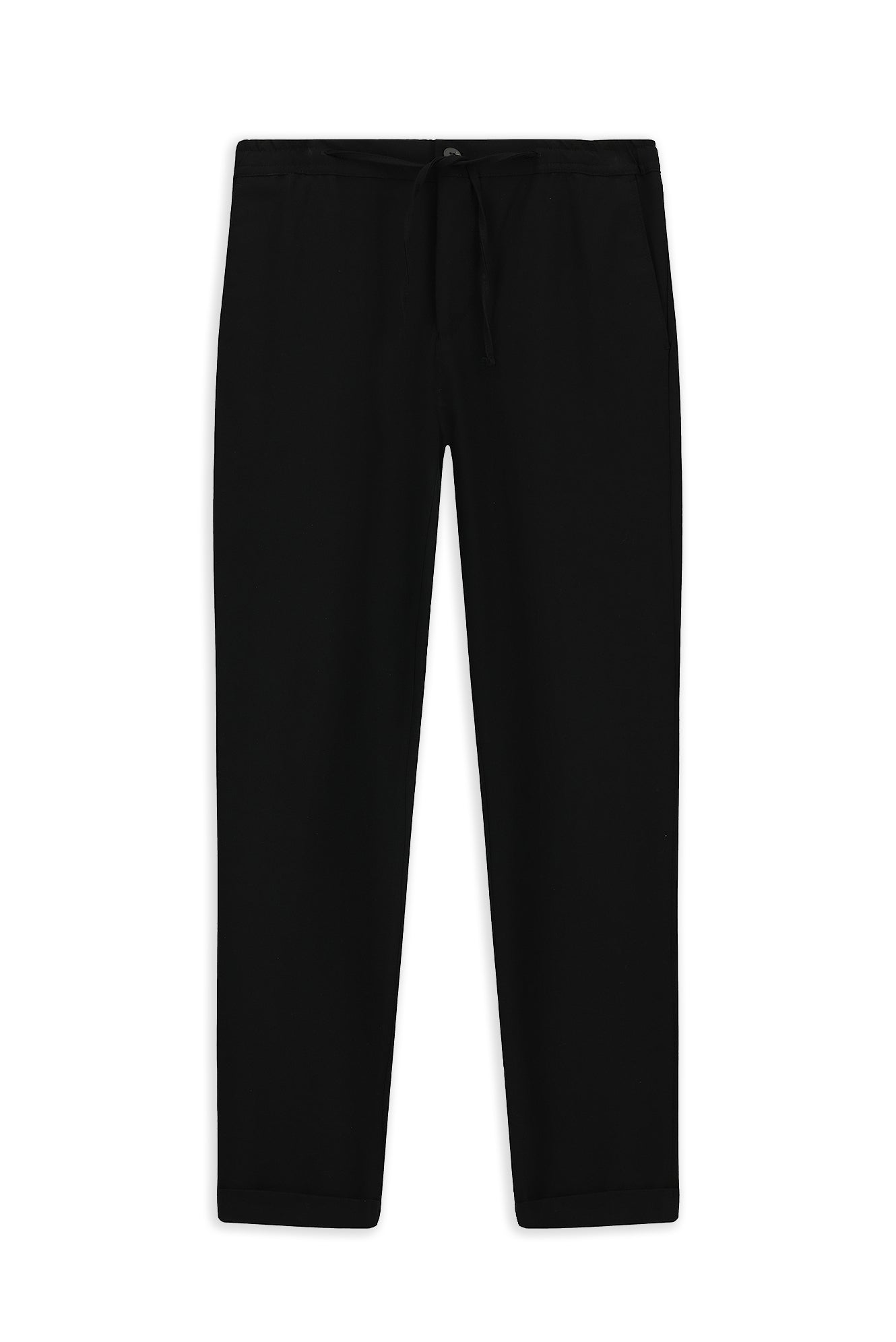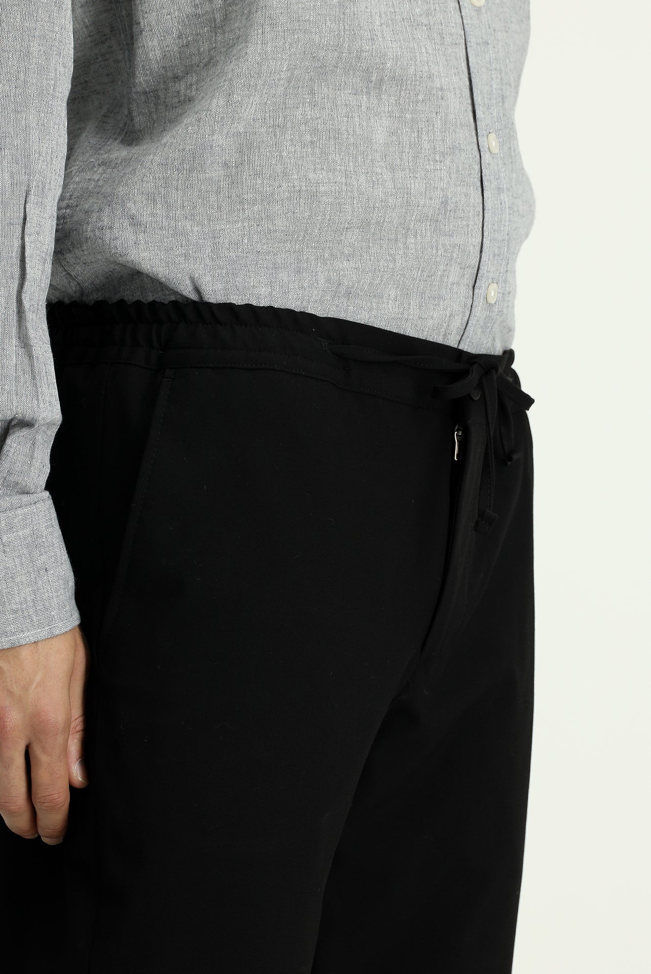 Siyah Slim Fit Dar Kesim Likralı Beli Lastikli İpli Klasik Kumaş Pantolon