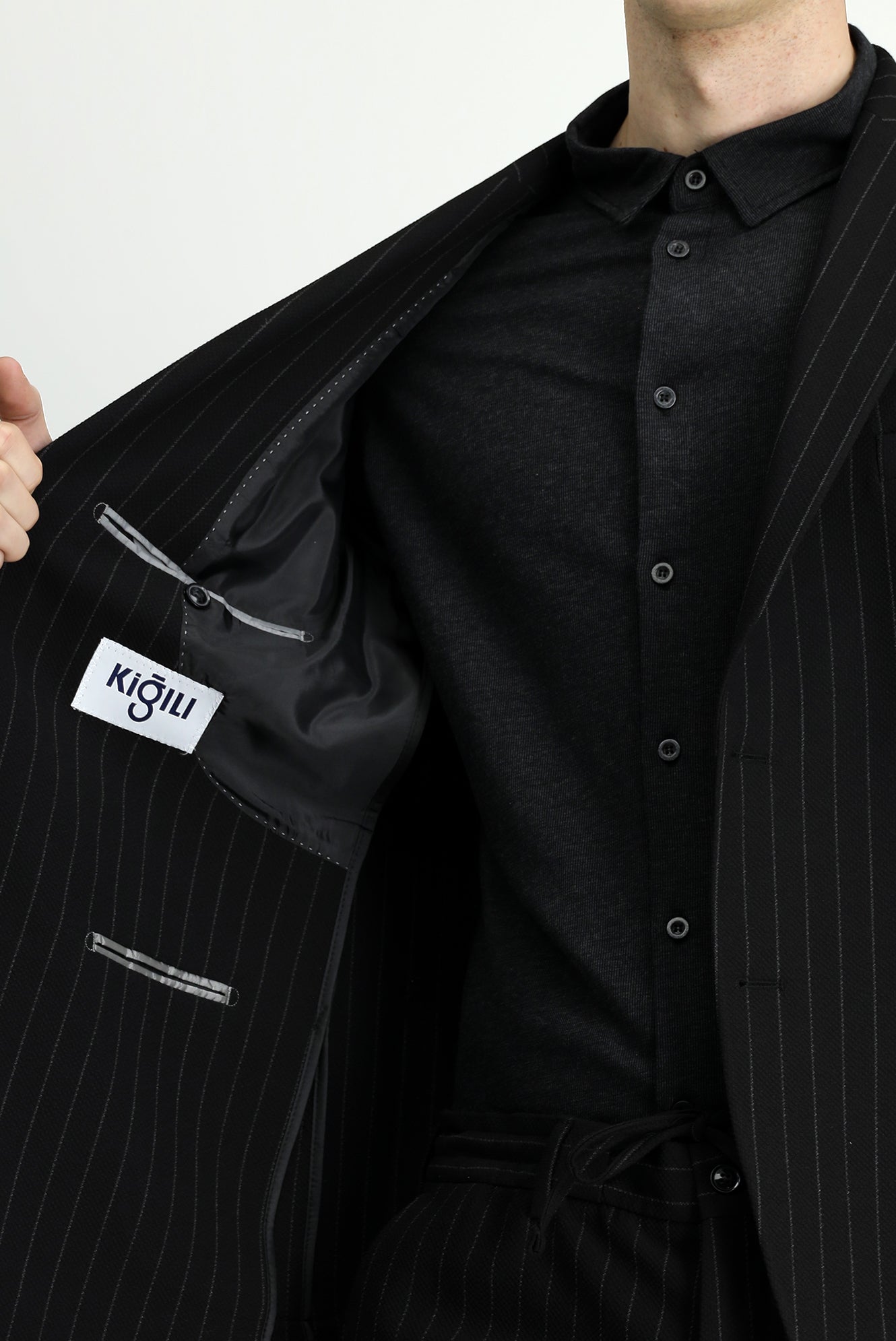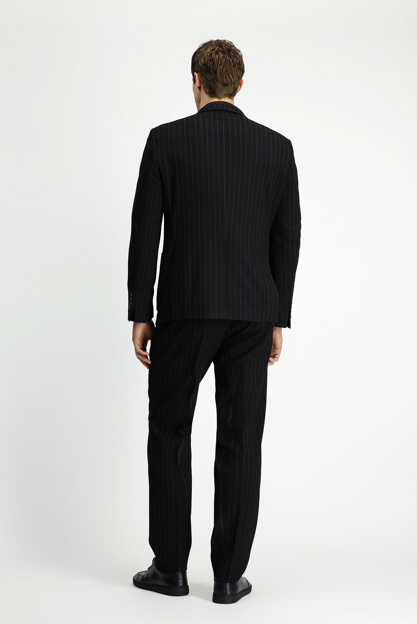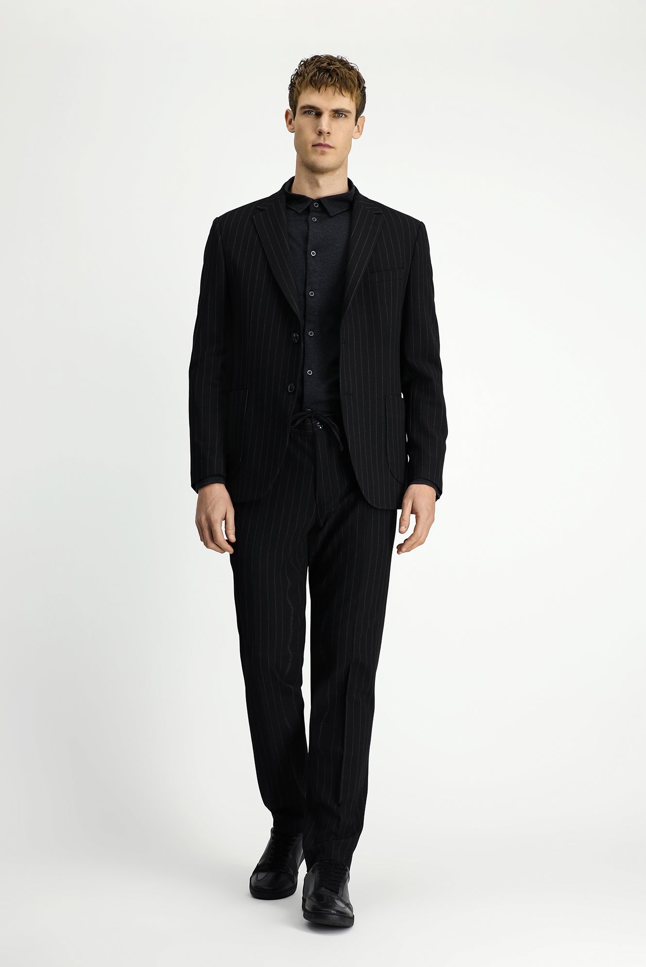 Siyah Slim Fit Dar Kesim Çizgili Beli İpli Spor Takım Elbise