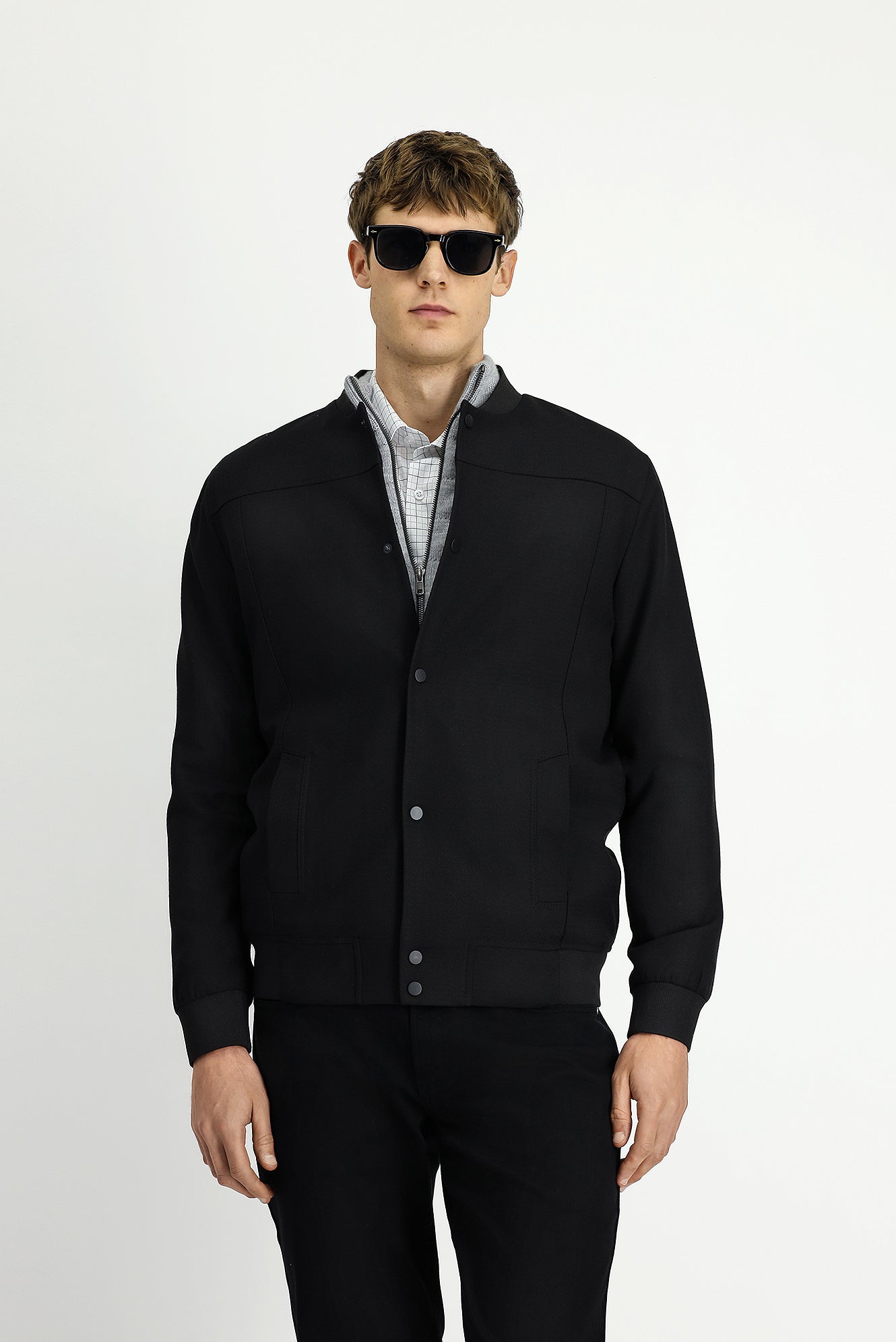 Siyah Slim Fit Dar Kesim Likralı Bomber Ceket Mont