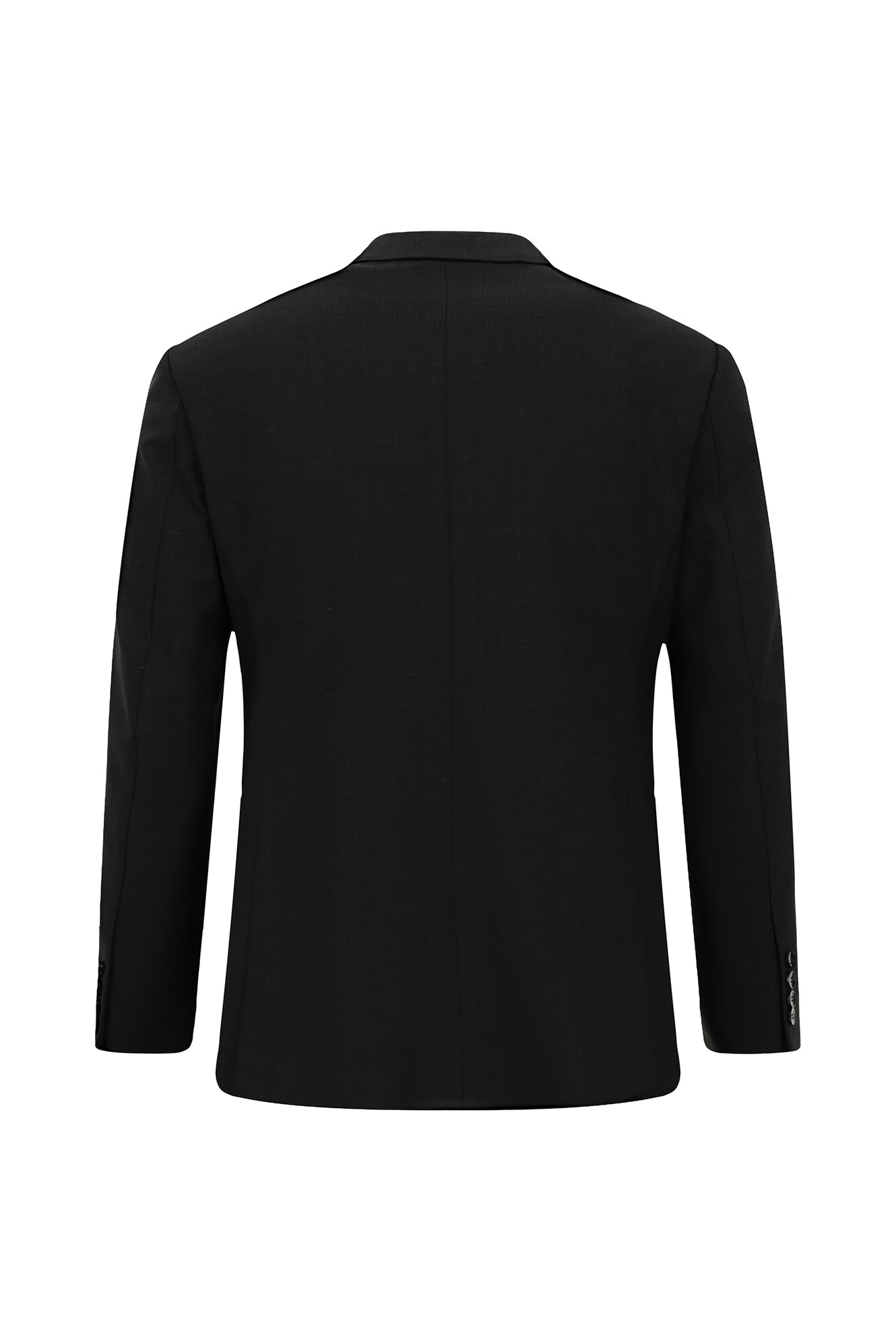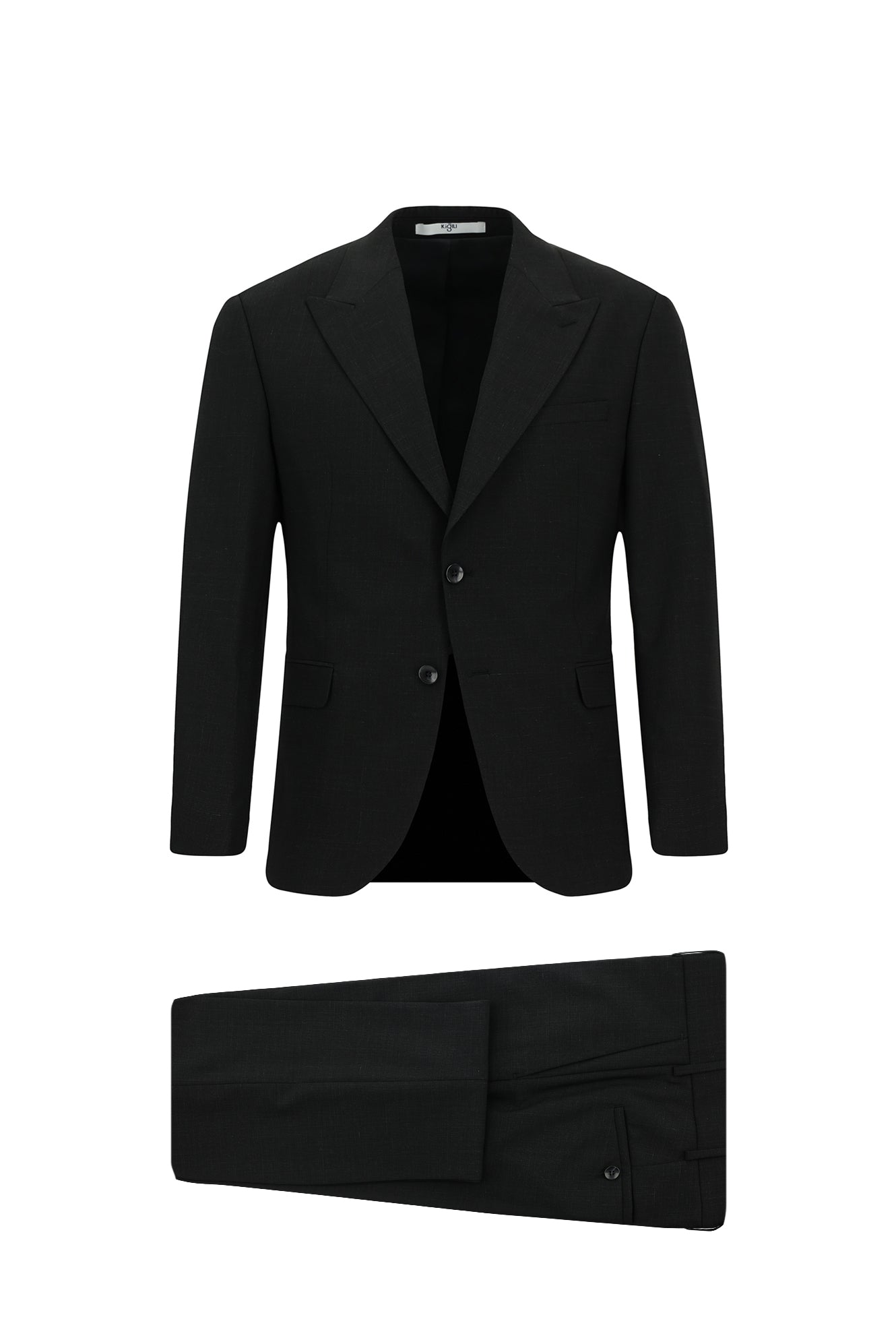 Siyah Slim Fit Dar Kesim Yünlü Klasik Desenli Takım Elbise