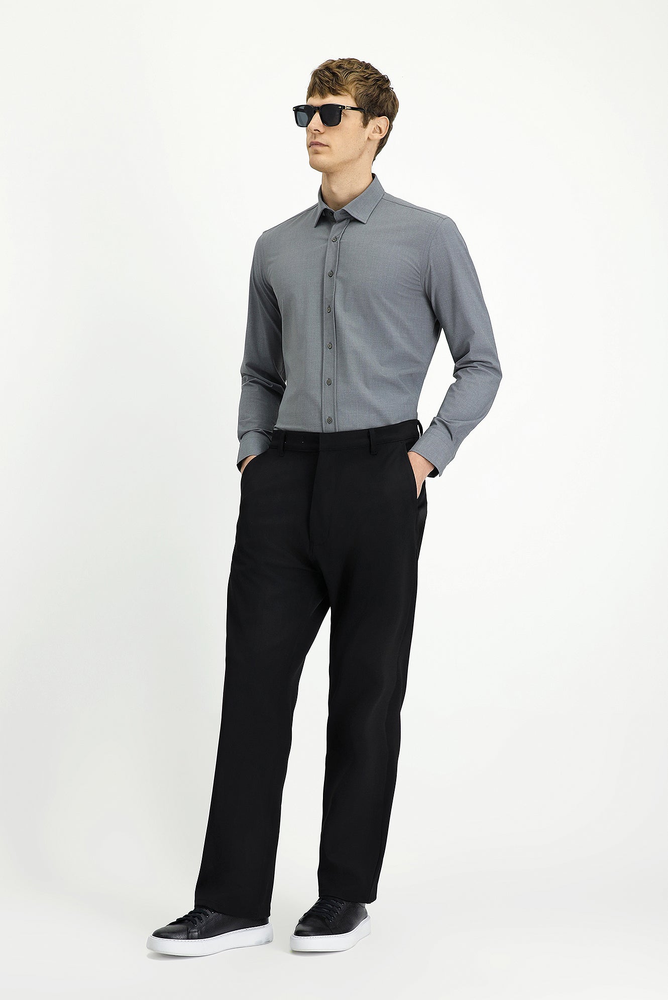 Siyah Slim Fit Dar Kesim Likralı Kanvas / Chino Pantolon