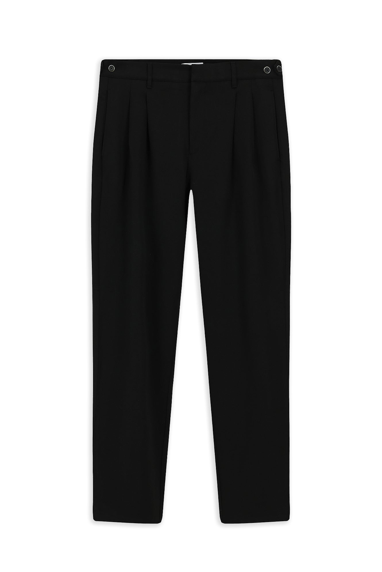 Siyah Straight Wide Relaxed Fit Pileli Likralı Kanvas / Chino Pantolon