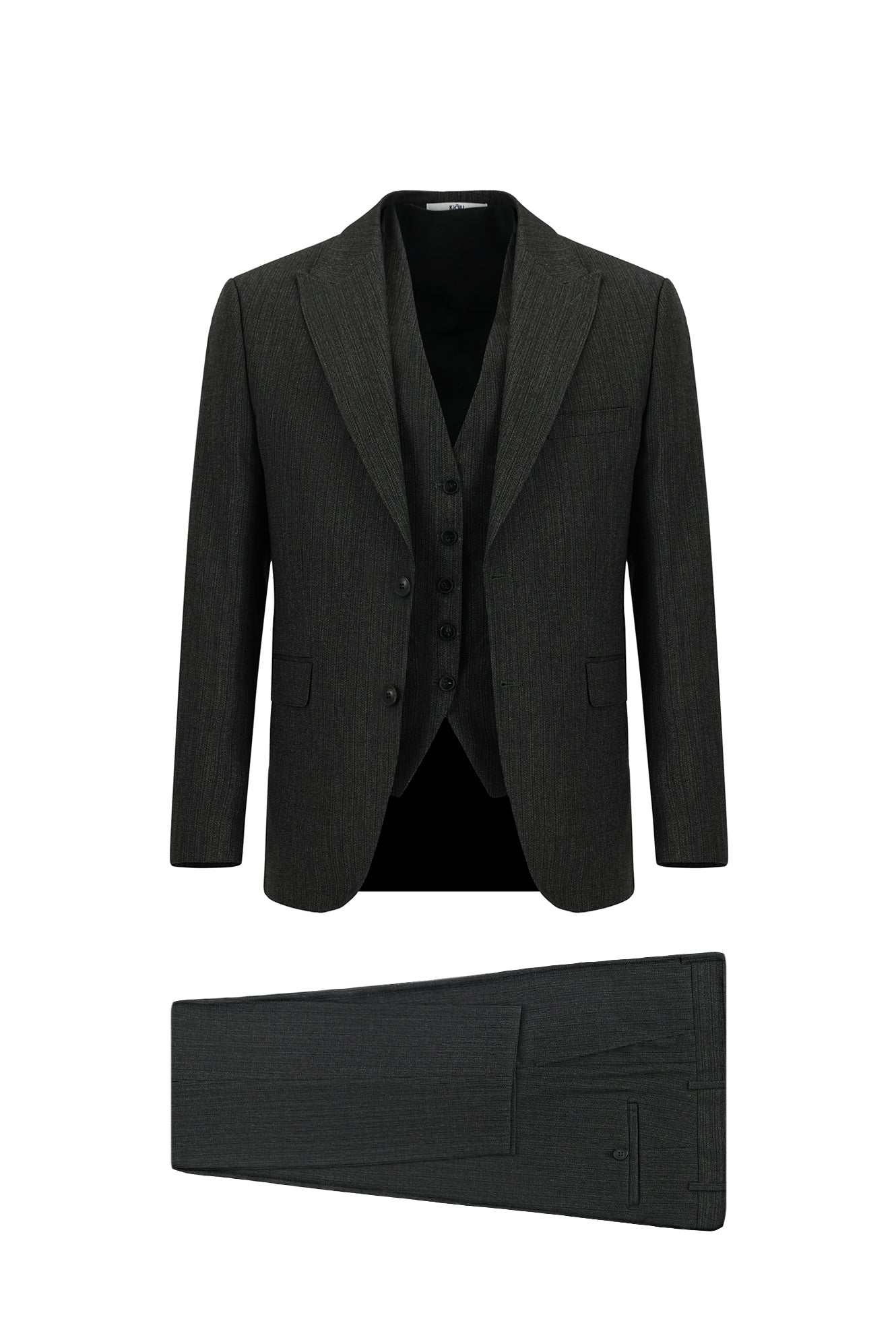 Siyah 7 Drop Super Slim Fit Eksra Dar Kesim Kombinli Yelekli Takım Elbise