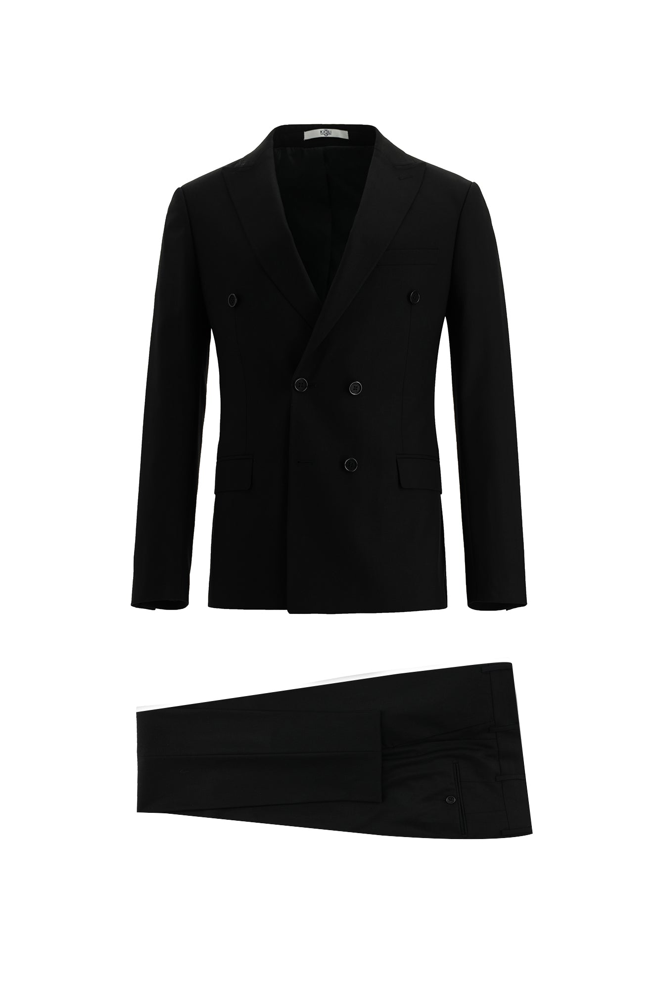 Siyah Super Slim Fit Ekstra Dar Kesim Kruvaze Takım Elbise