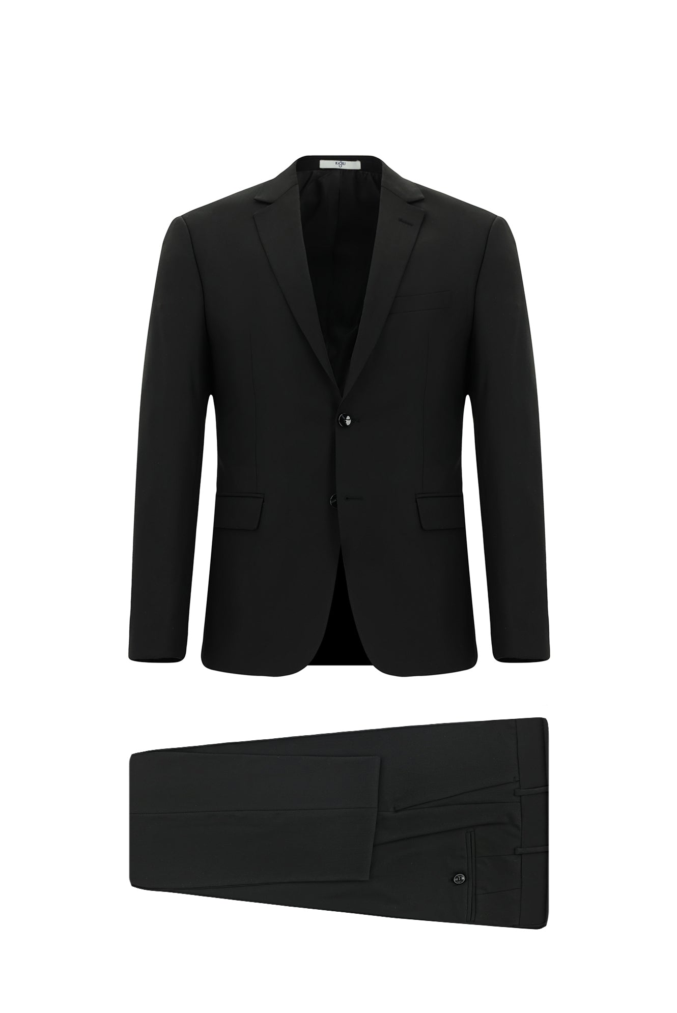 Siyah 7 Drop Super Slim Fit Eksra Dar Kesim Yünlü Klasik Takım Elbise