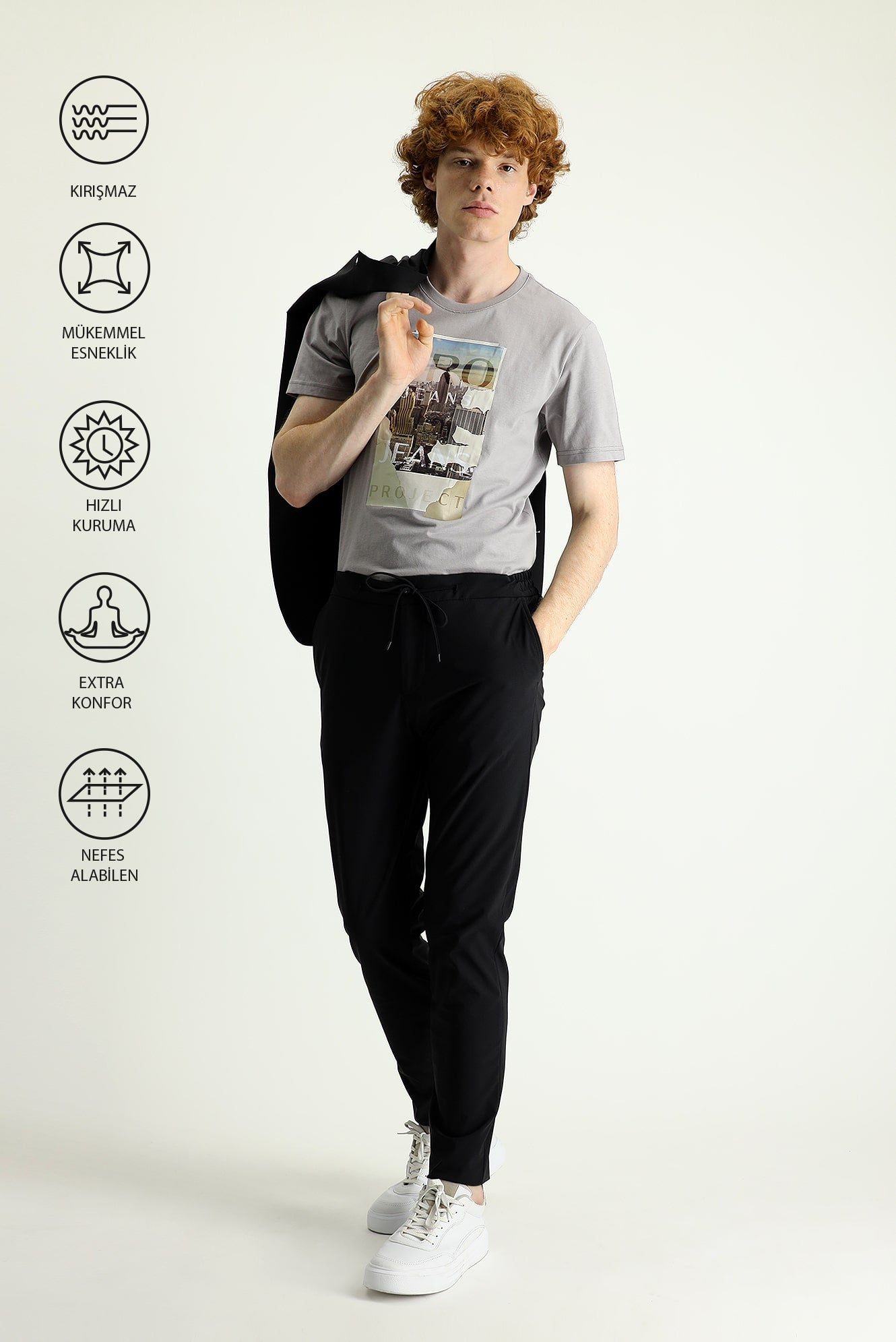 Siyah Techno-Line Slim Fit Jogger Pantolon