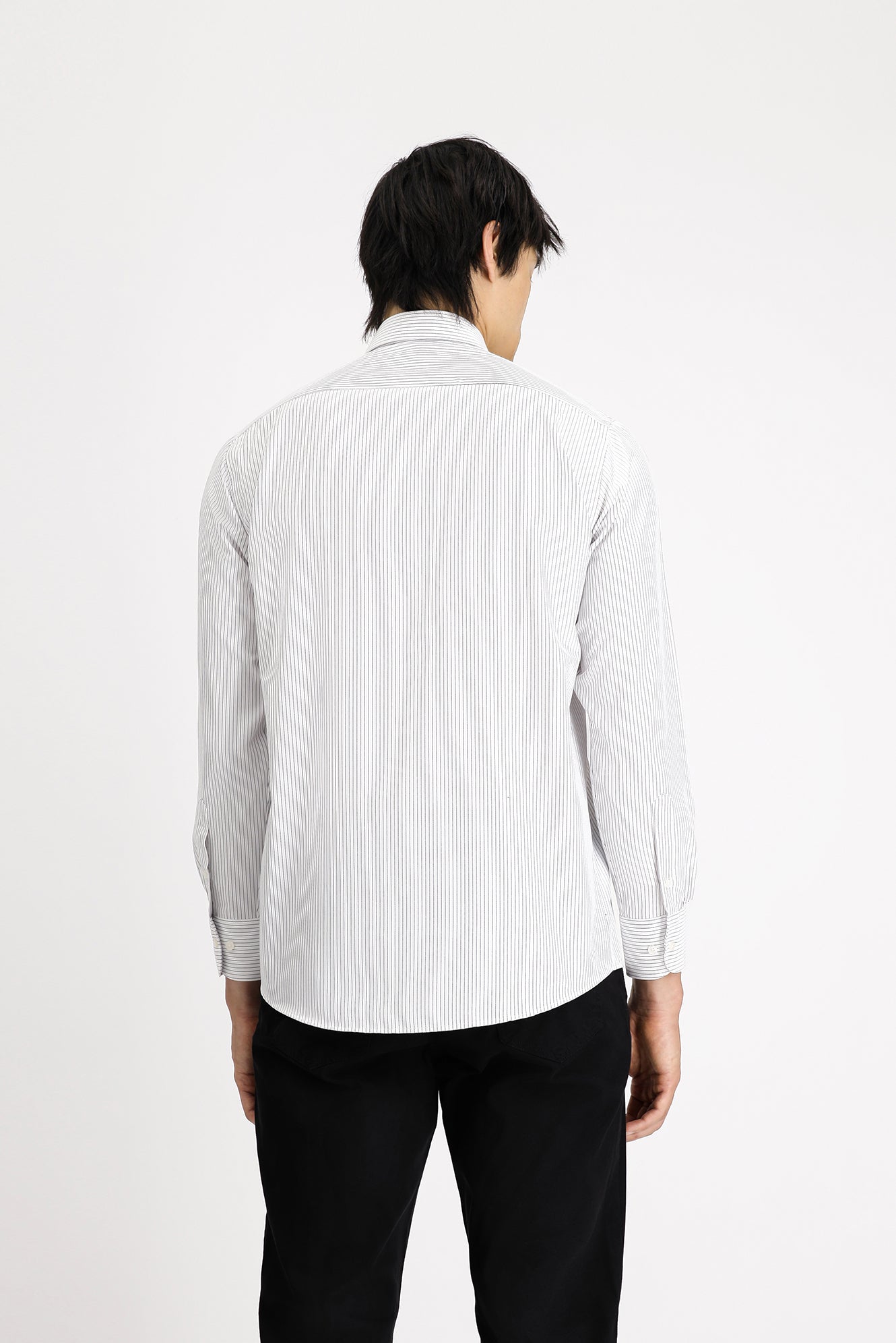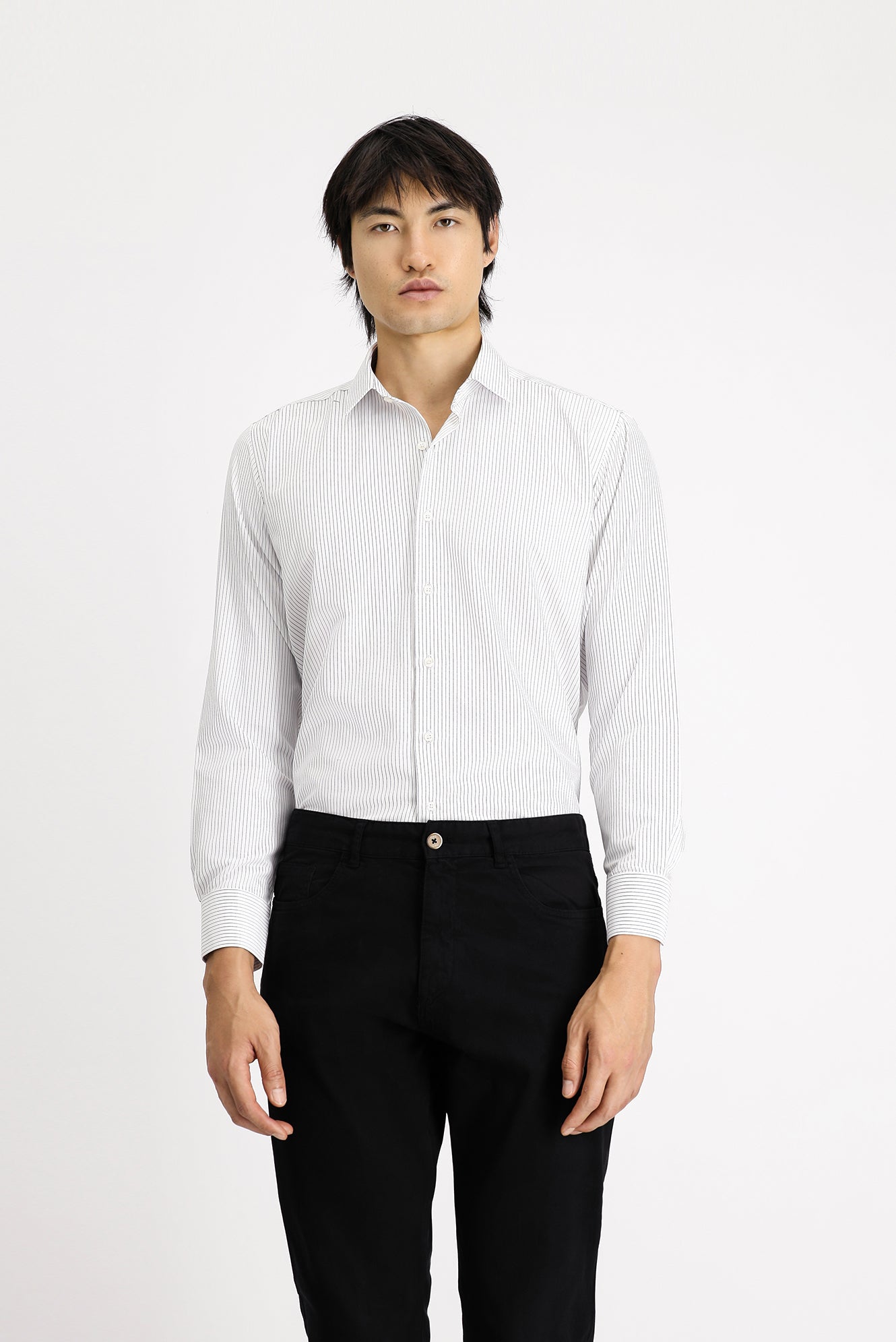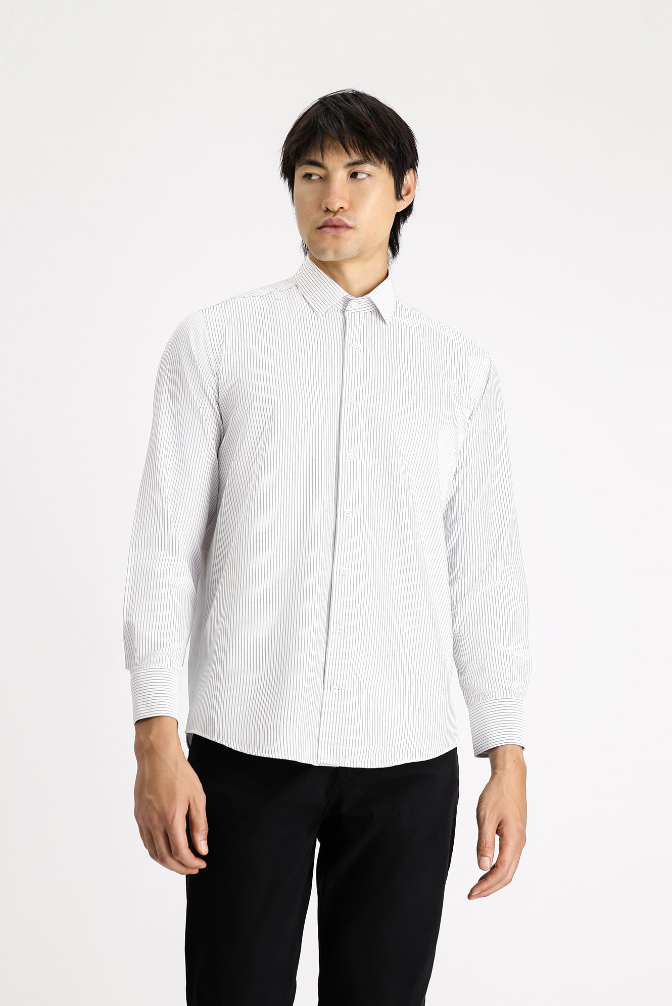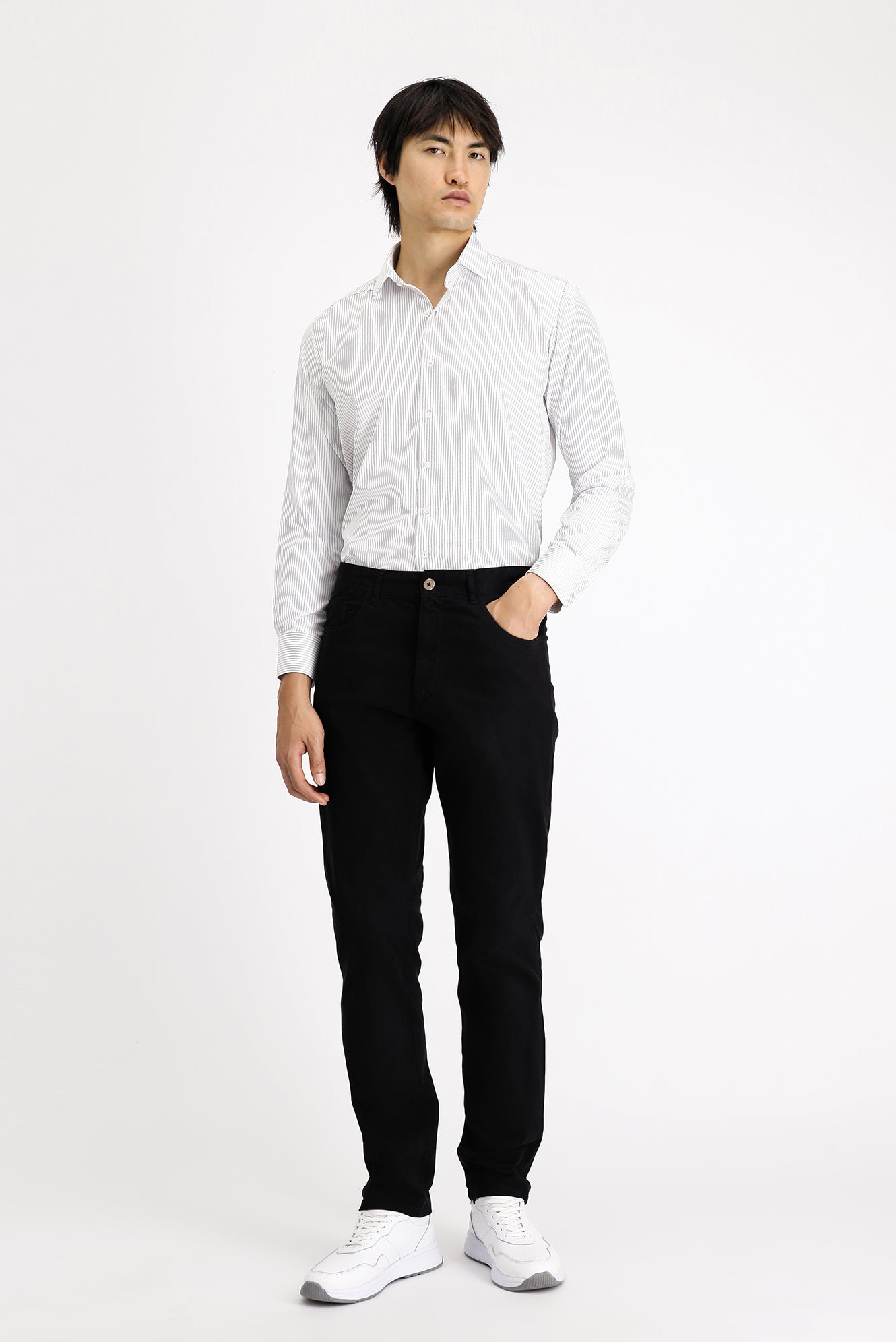 Siyah Uzun Kol Klasik Çizgili Pamuklu Kolay Ütülenebilir Gömlek