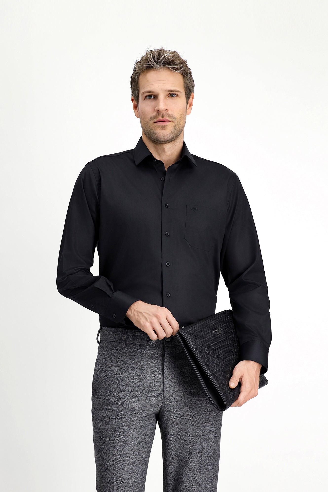 Siyah Uzun Kol Non Iron Saten Klasik Pamuklu Gömlek