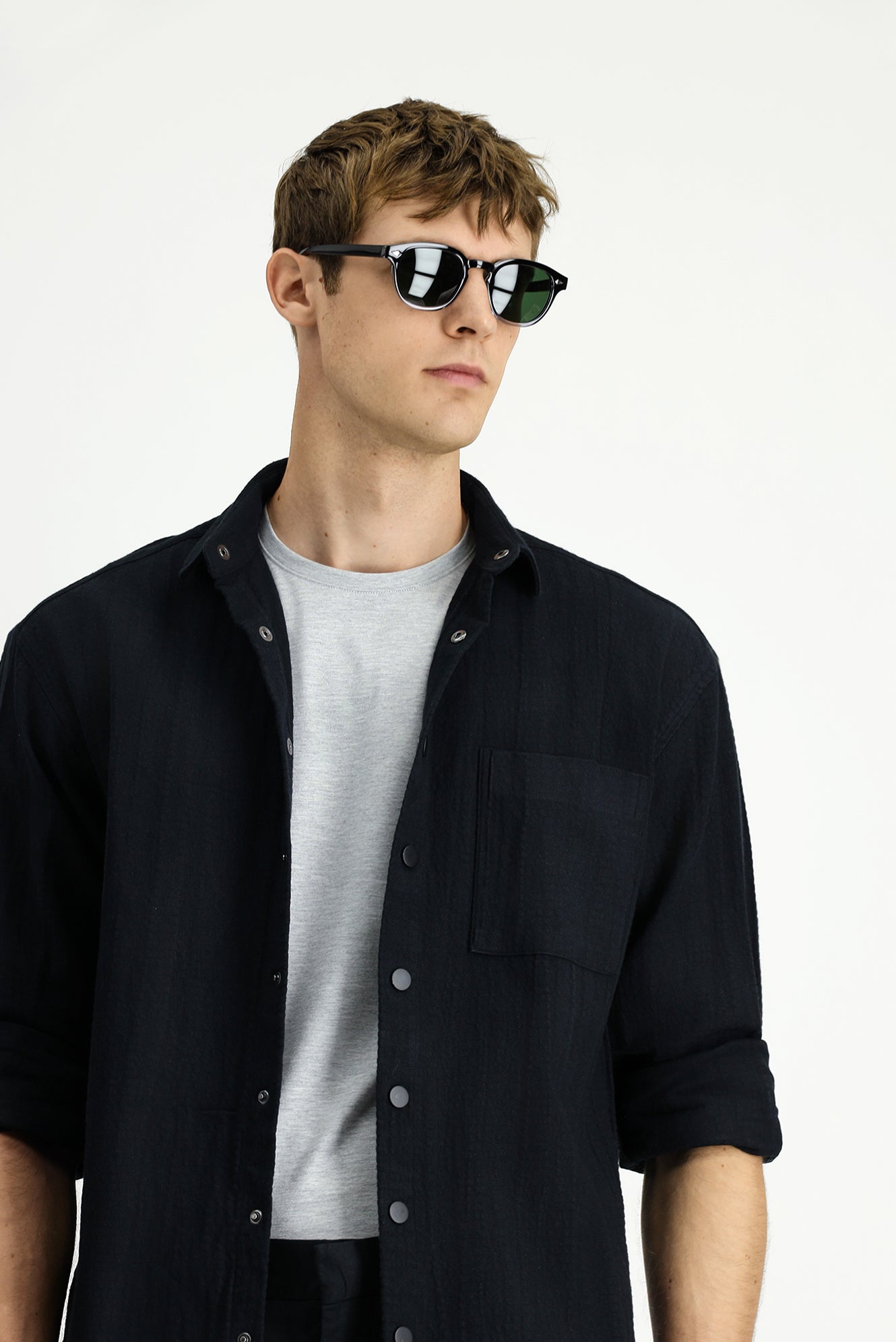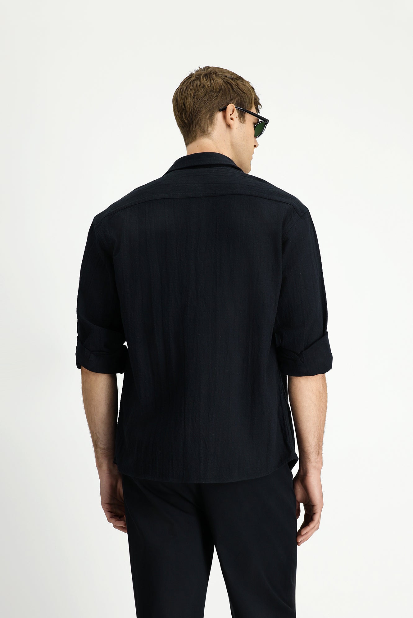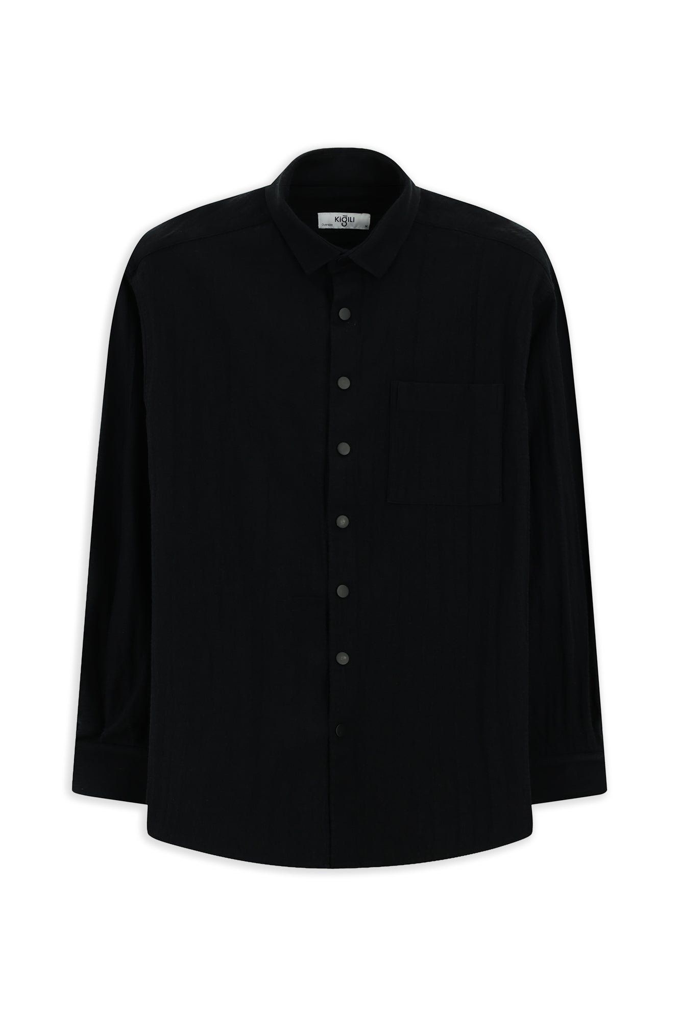 Siyah Uzun Kol Oversize Ekstra Rahat Kesim Desenli Pamuklu Gömlek