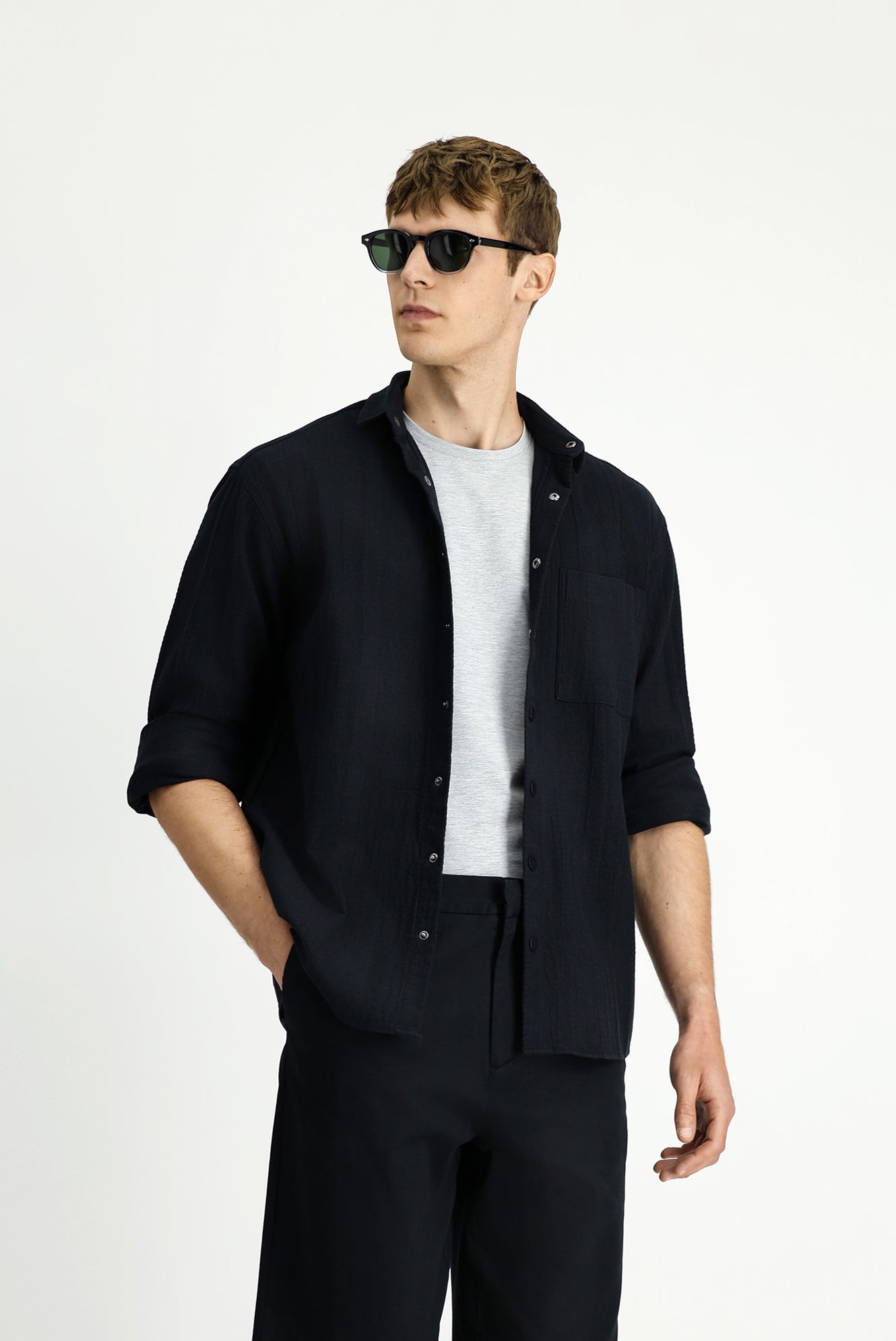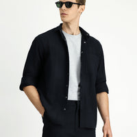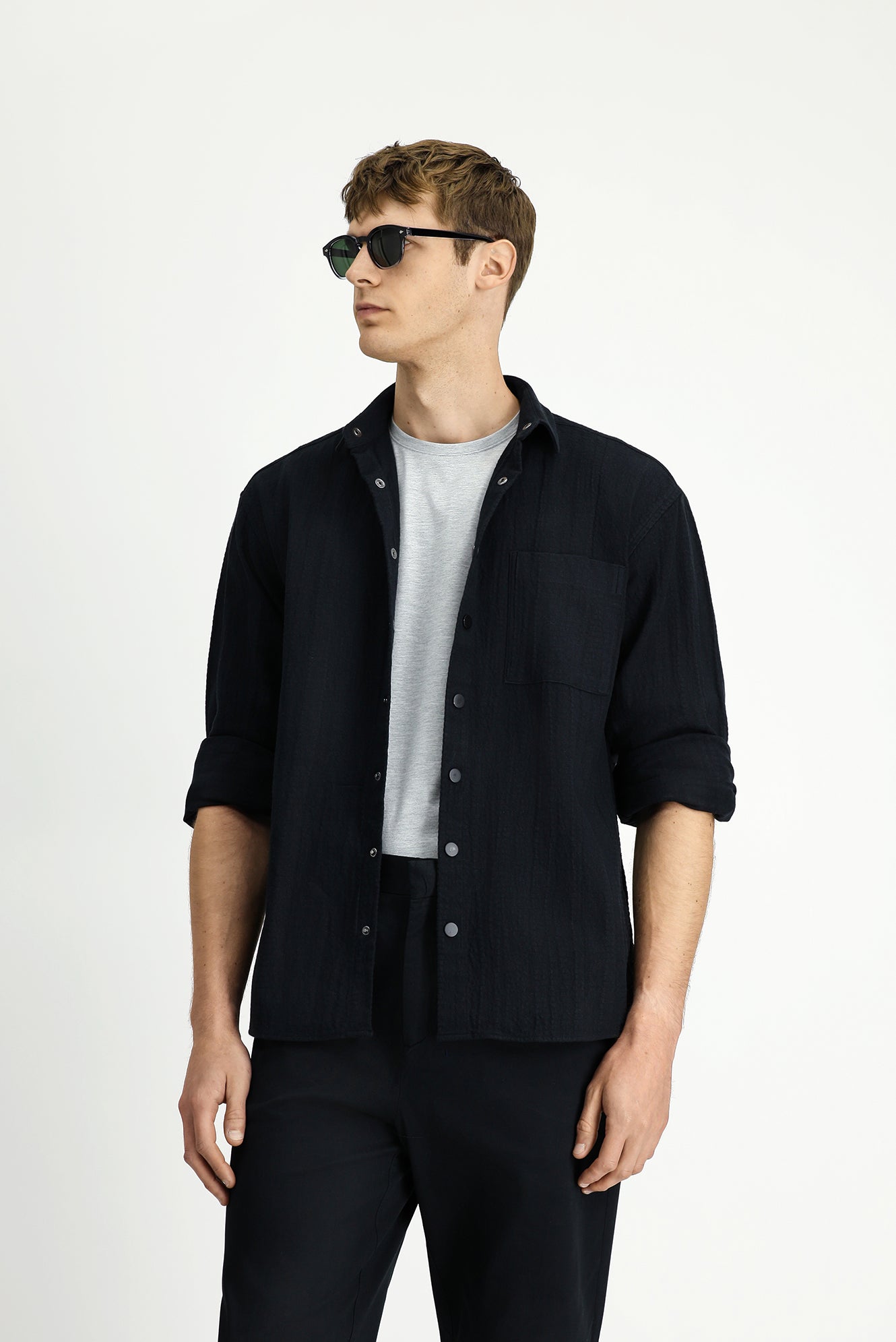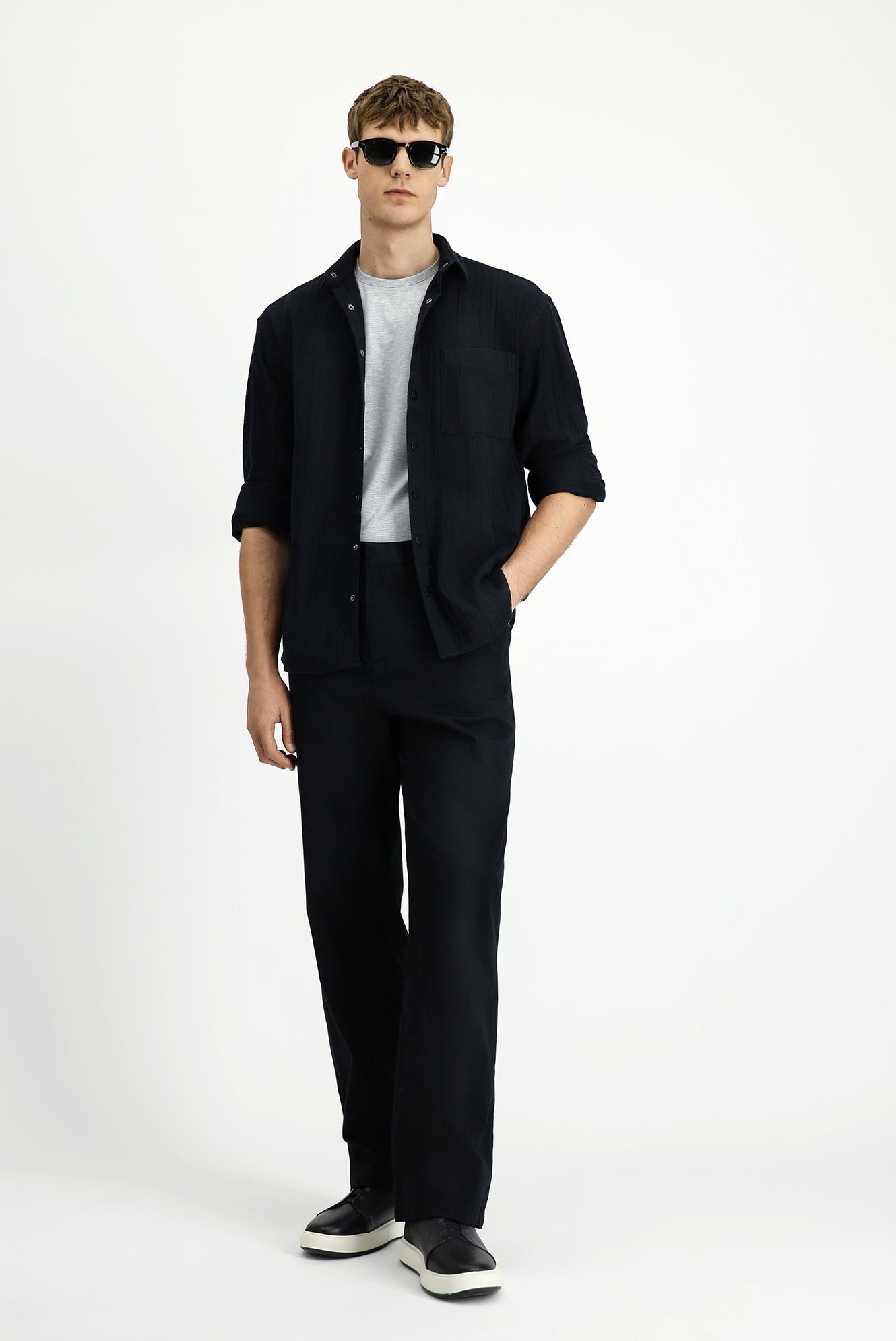 Siyah Uzun Kol Oversize Ekstra Rahat Kesim Desenli Pamuklu Gömlek