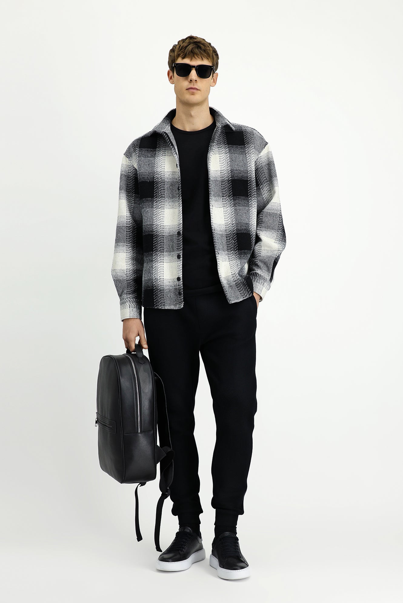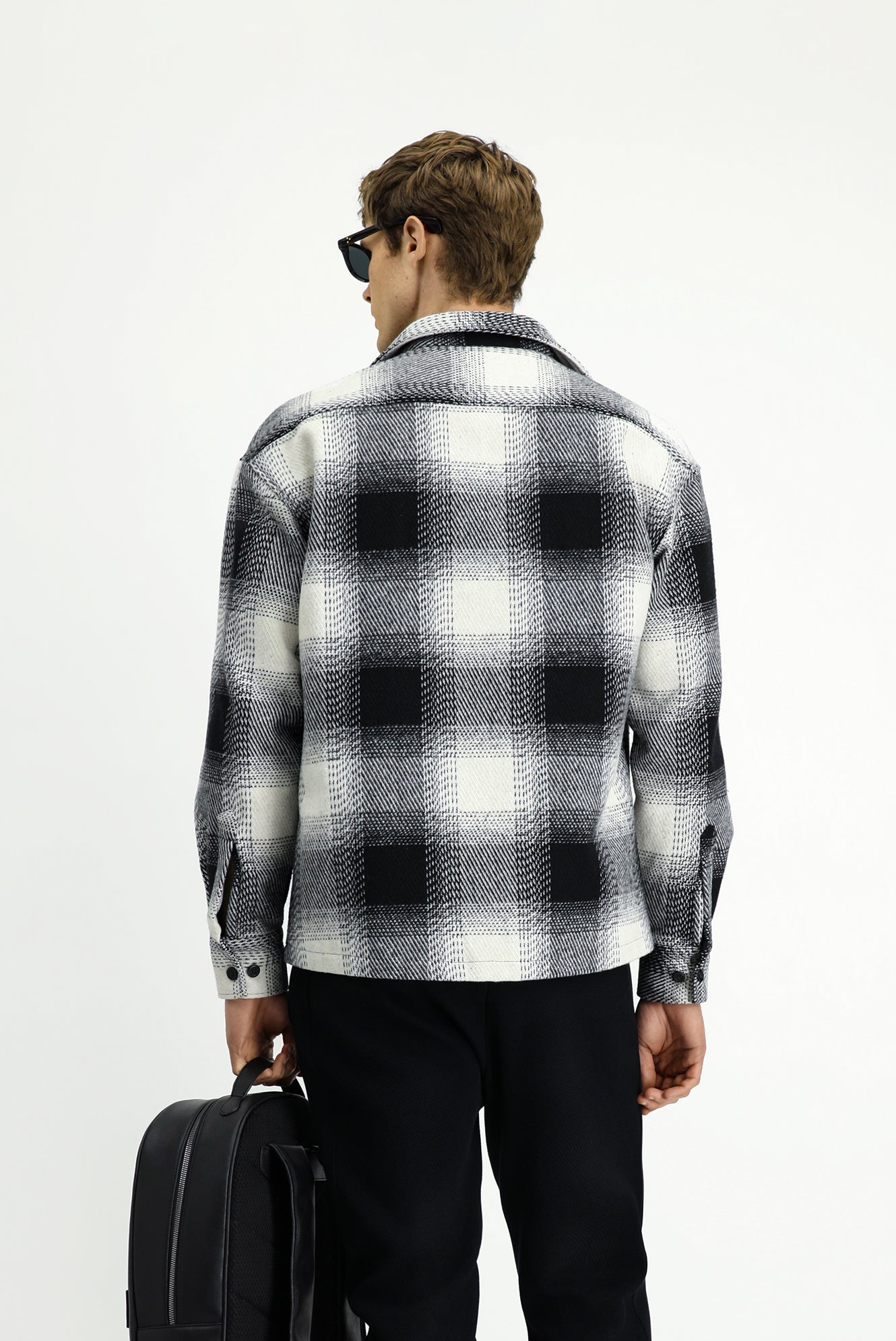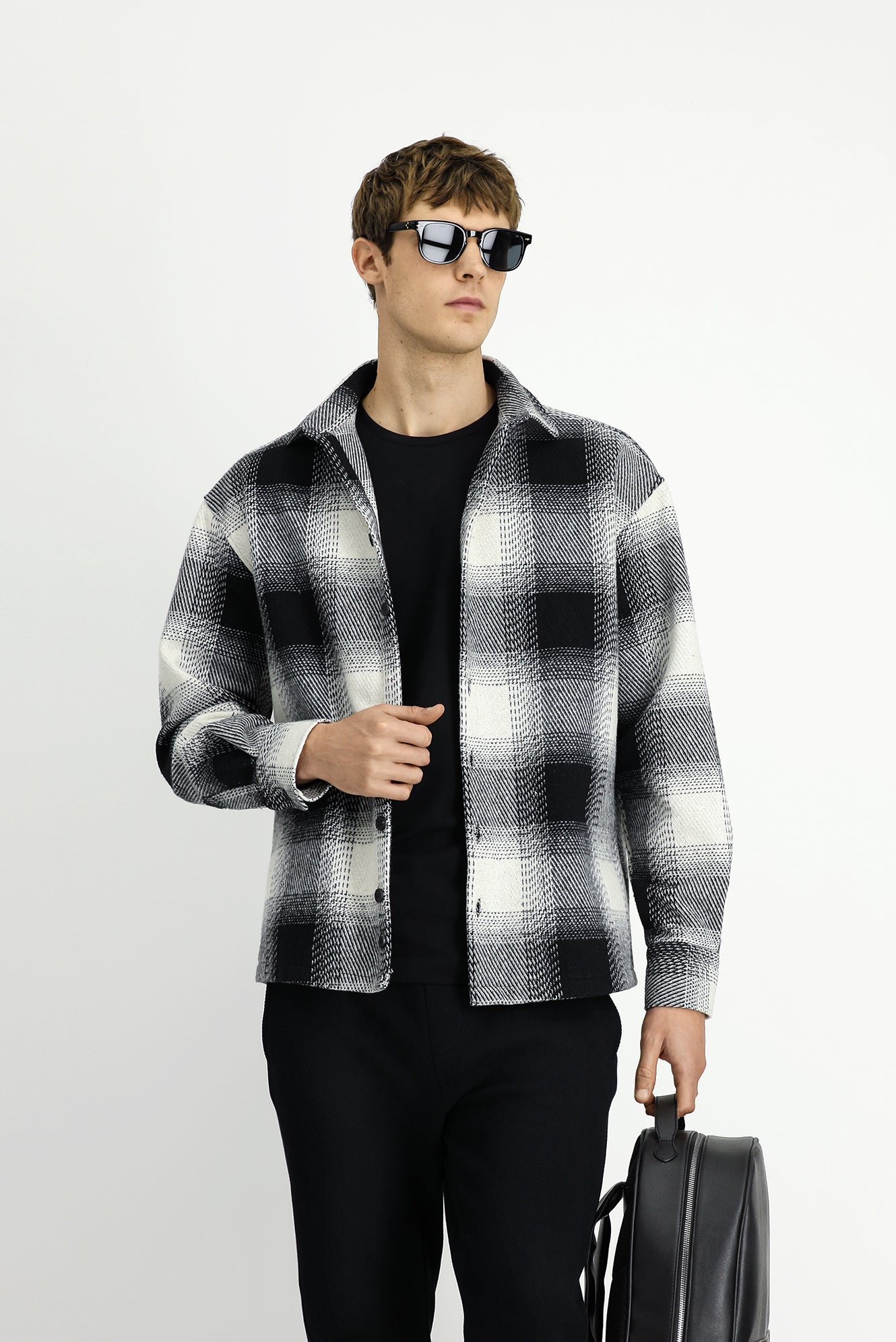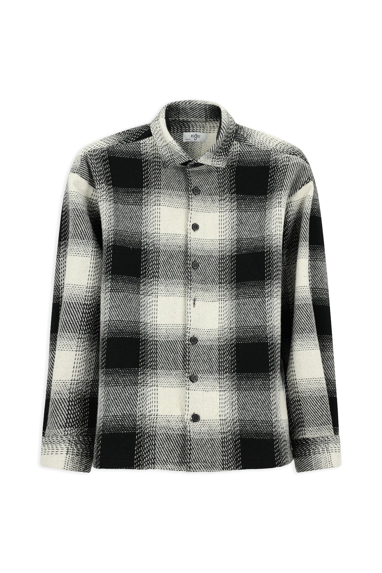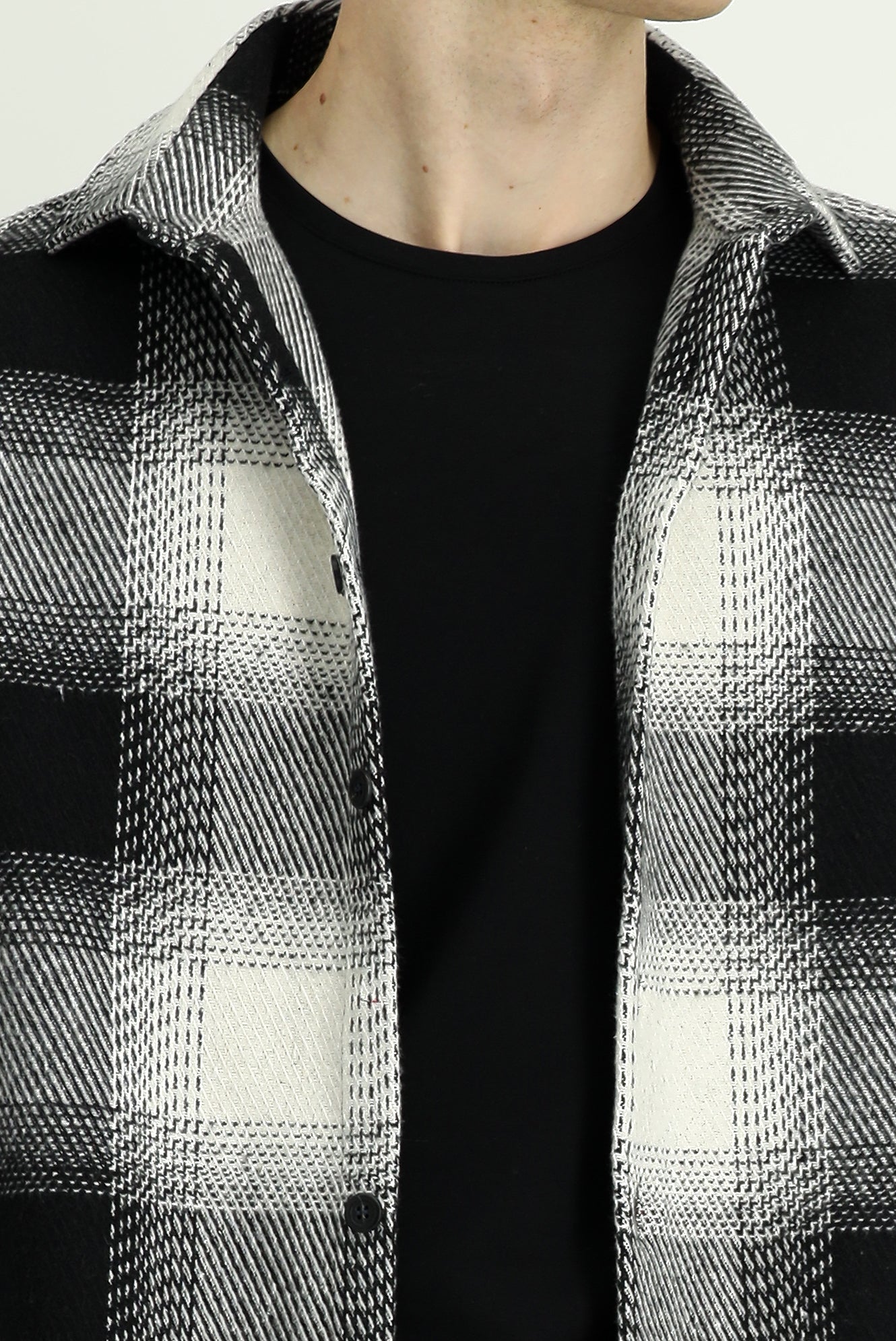 Siyah Uzun Kol Oversize Ekstra Rahat Kesim Spor Ekose Shacket Oduncu Pamuklu Gömlek / Mont