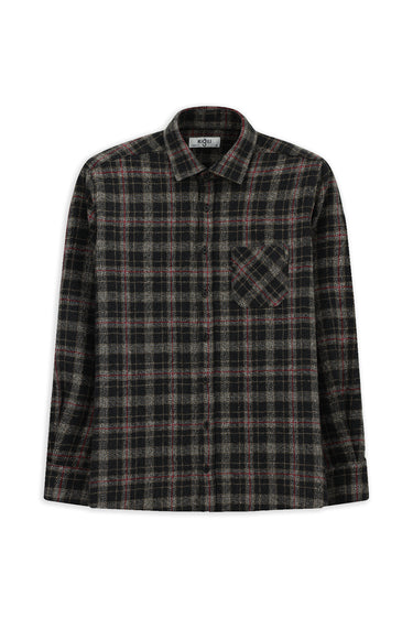 Siyah Uzun Kol Regular Fit Cepli Ekose Pamuk Oduncu Kışlık Gömlek