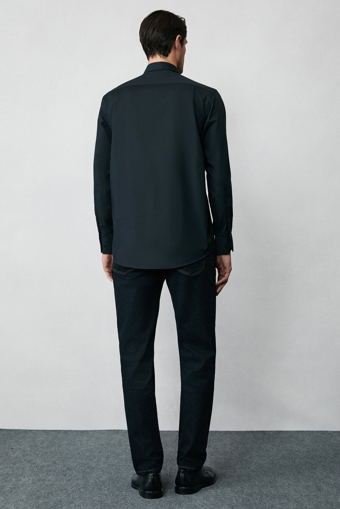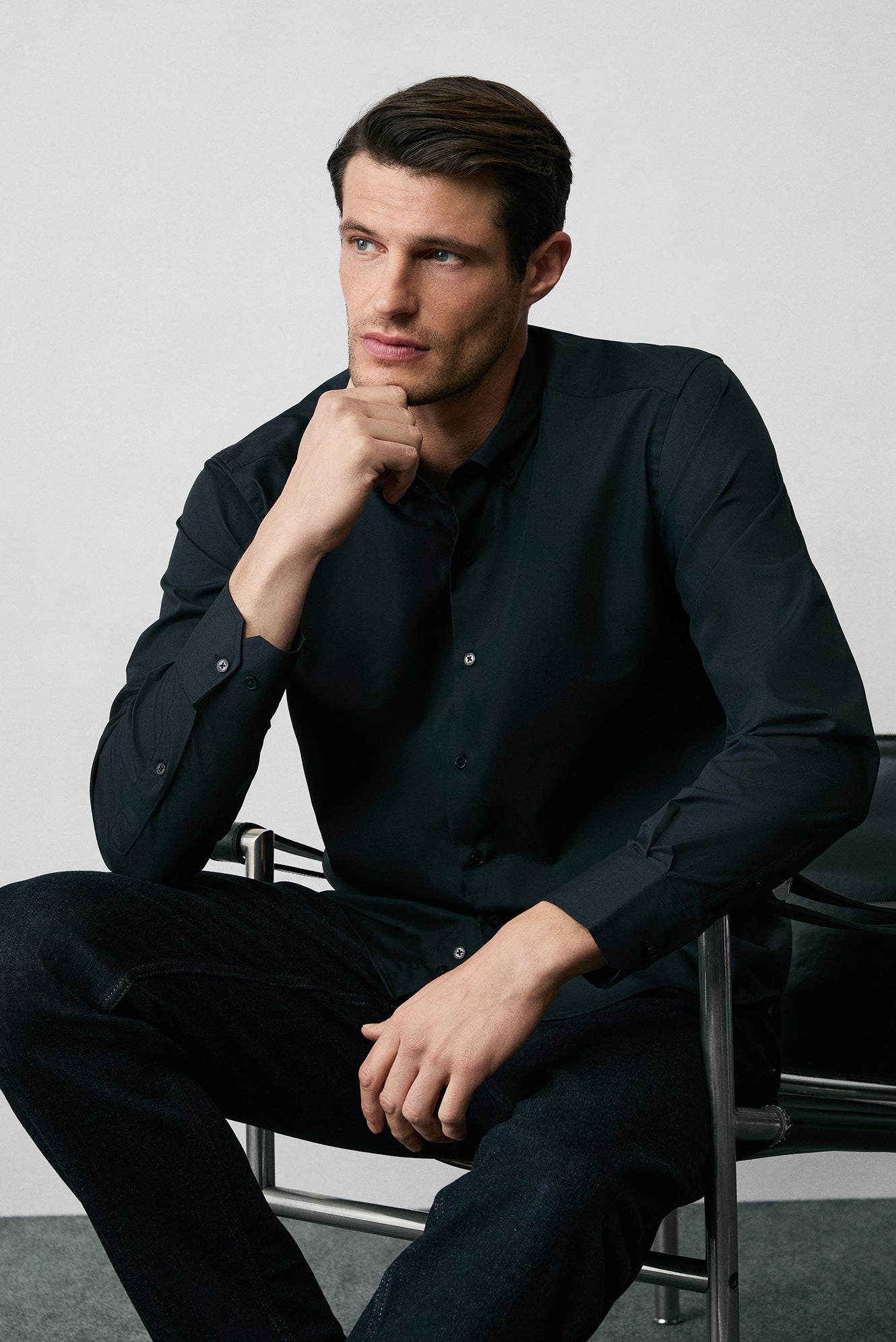 Siyah Uzun Kol Regular Fit Düğmeli Yaka Pamuklu Non Iron Ütü Gerektirmeyen Gömlek