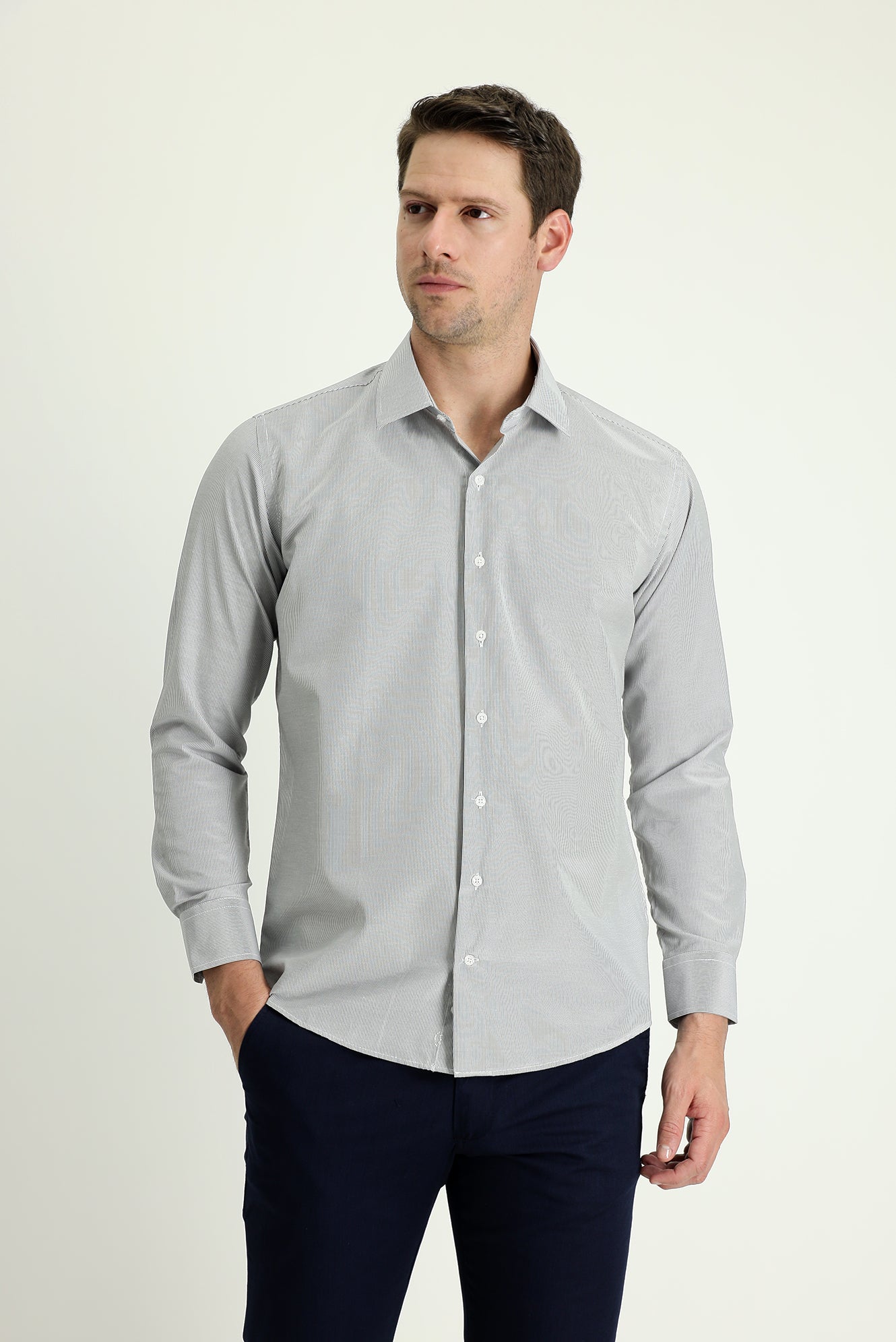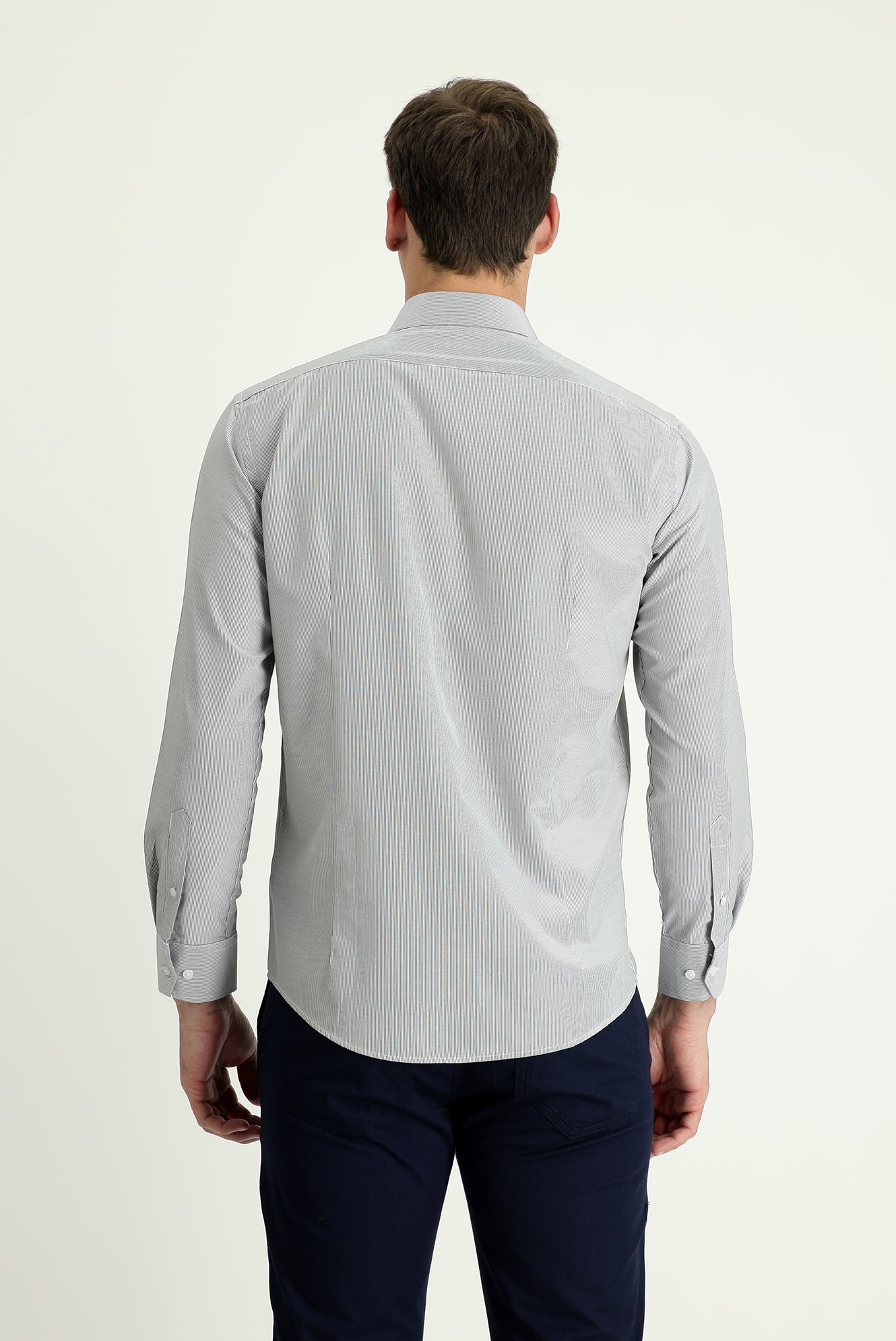 Siyah Uzun Kol Slim Fit Dar Kesim Klasik Çizgili Pamuklu Kolay Ütülenebilir Gömlek