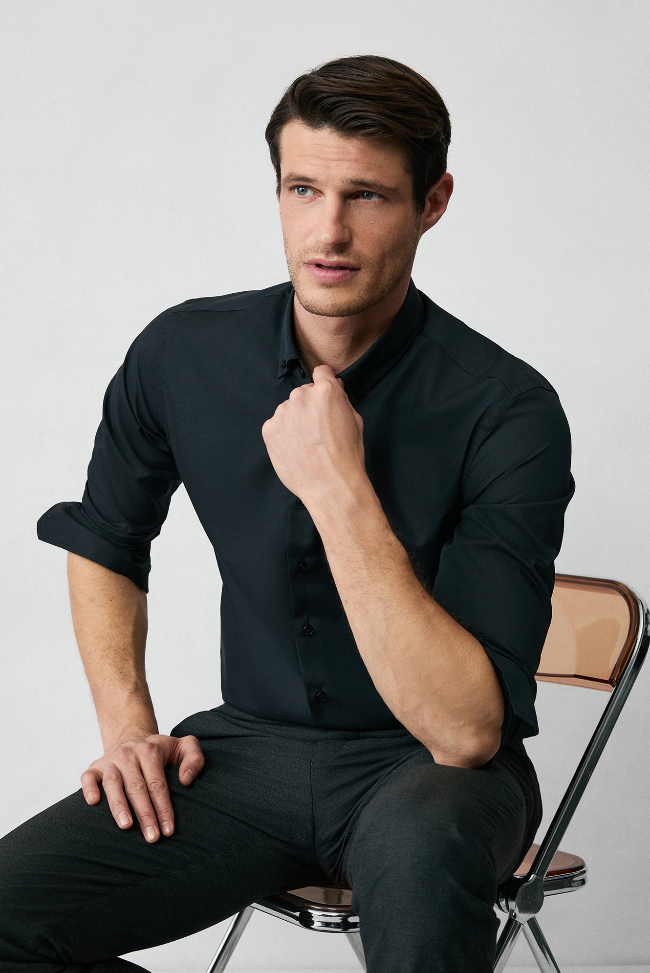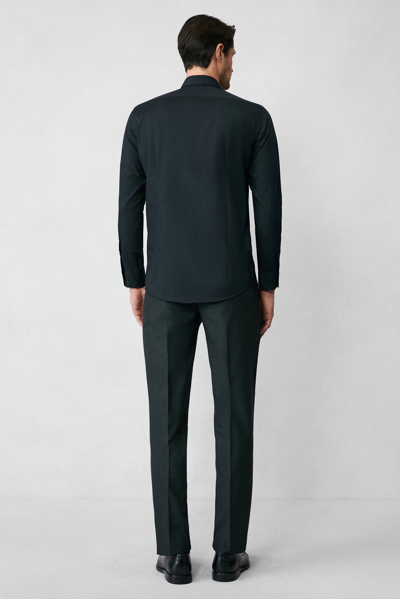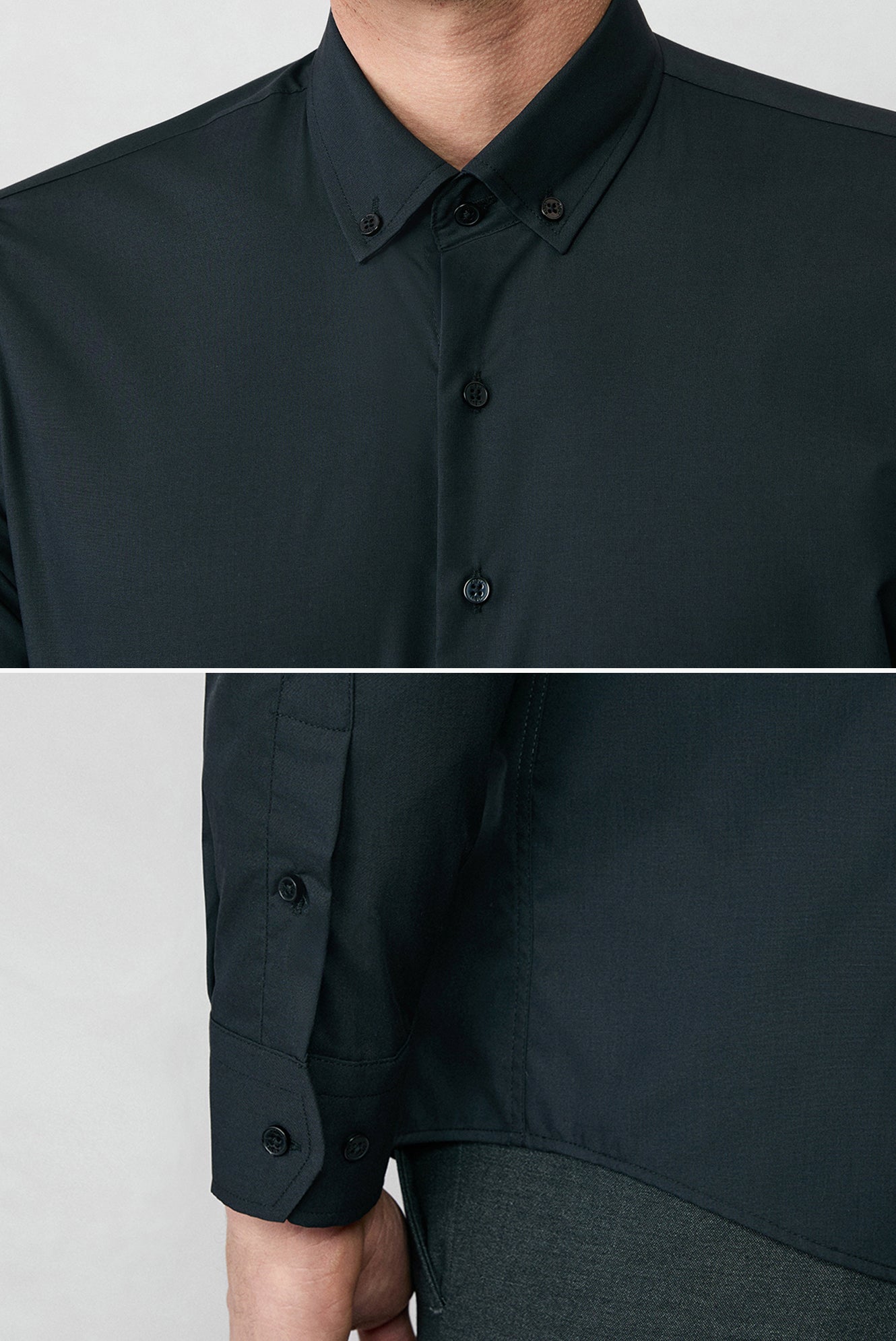 Siyah Uzun Kol Slim Fit Düğmeli Yaka Pamuklu Non Iron Ütü Gerektirmeyen Gömlek
