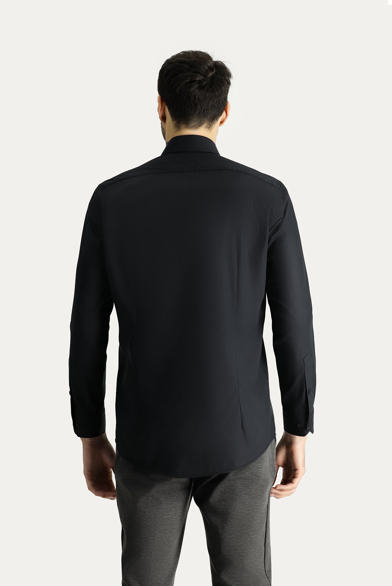 Siyah Uzun Kol Slim Fit Non Iron Ütü Gerektirmeyen Pamuklu Klasik Gömlek