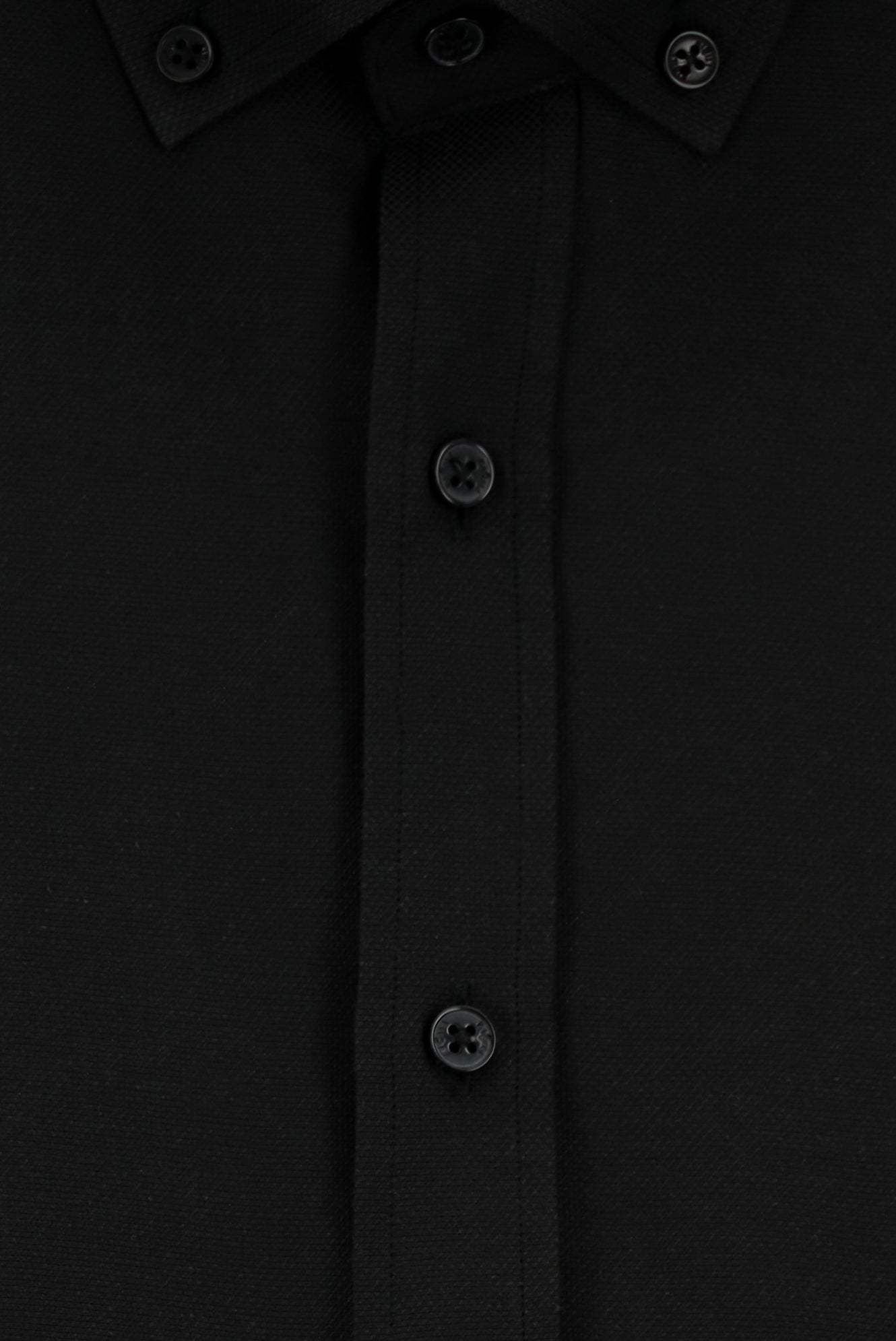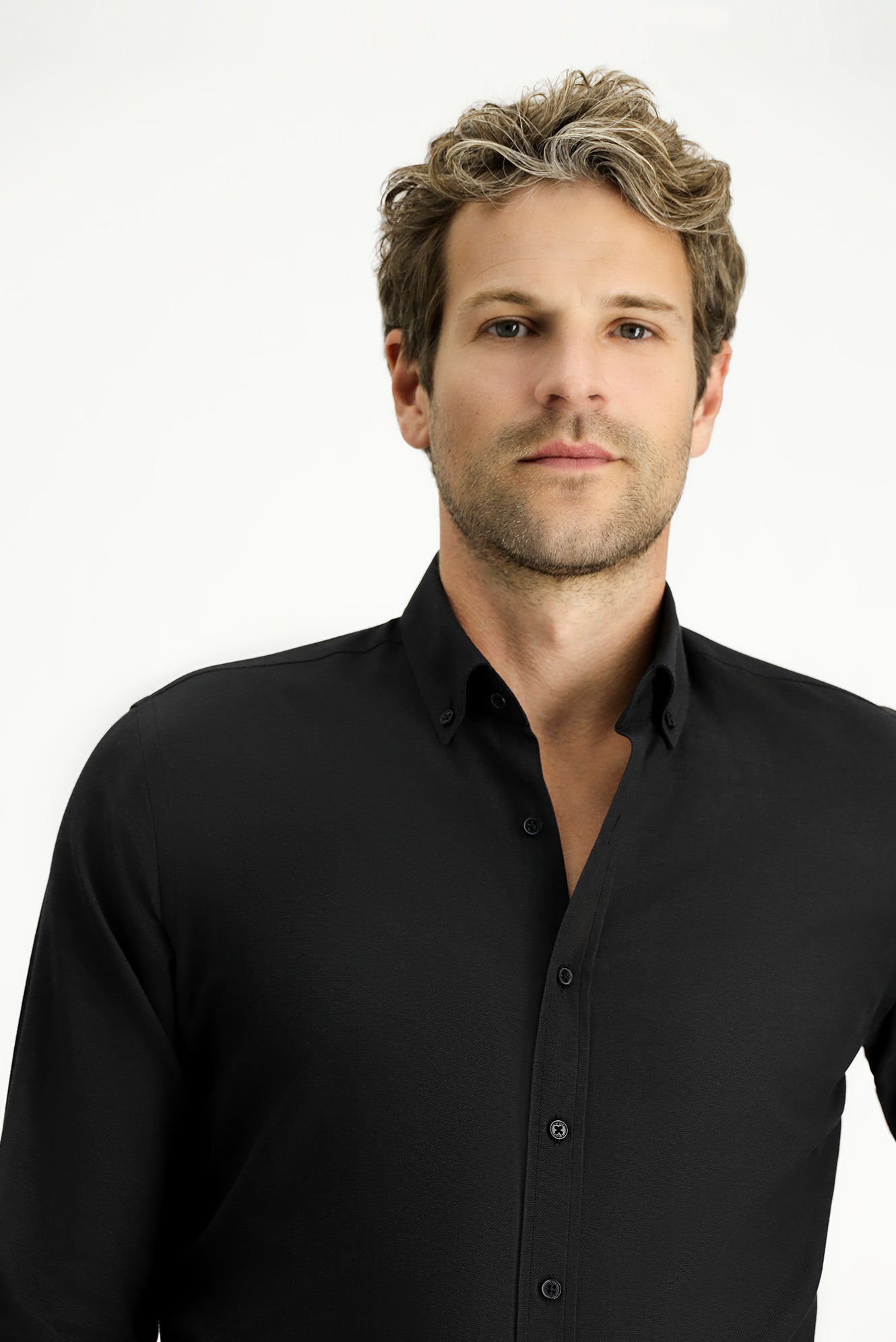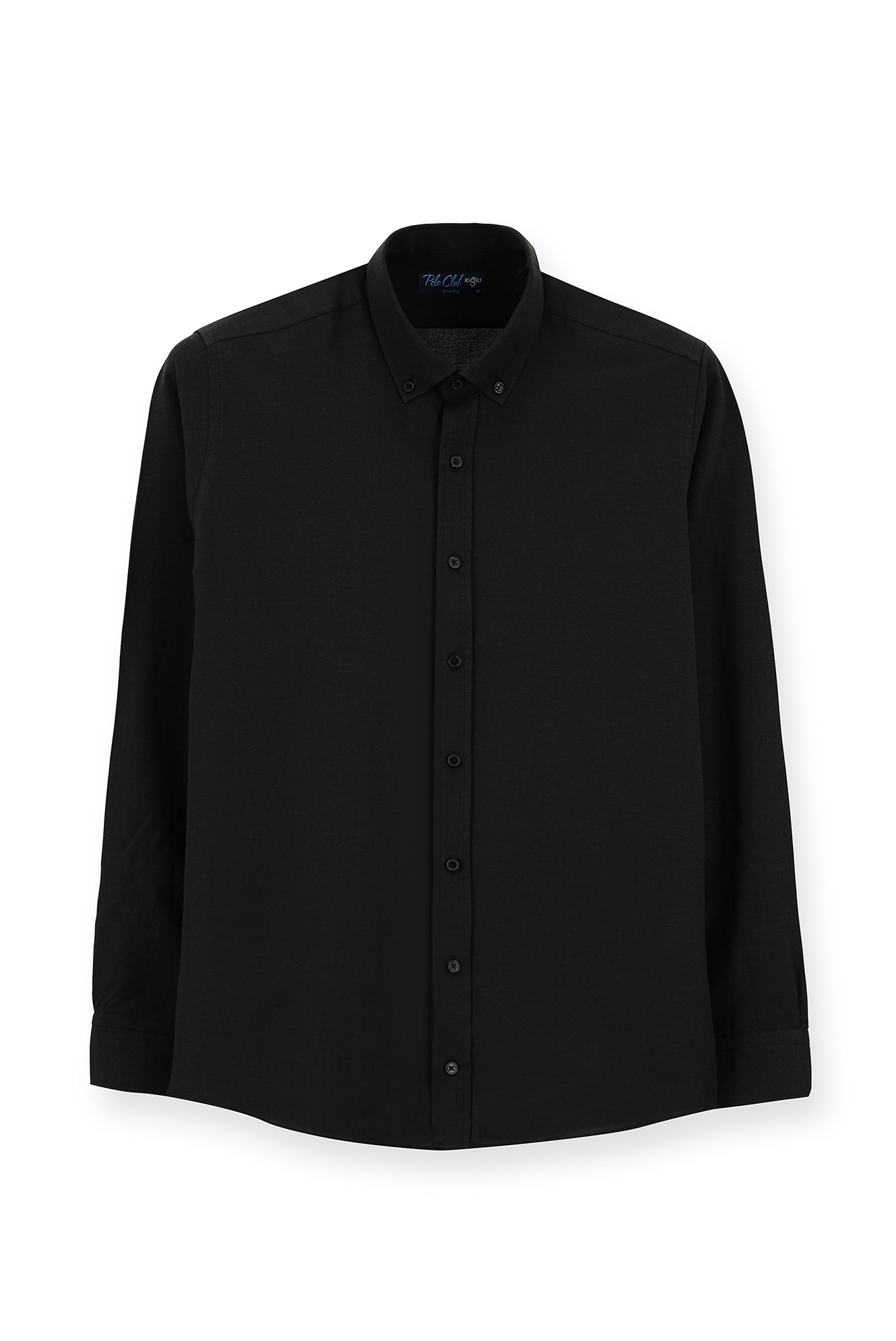 Siyah Uzun Kol Slim Fit Düğmeli Yaka Oxford Pamuklu Kolay Ütülenebilir Gömlek
