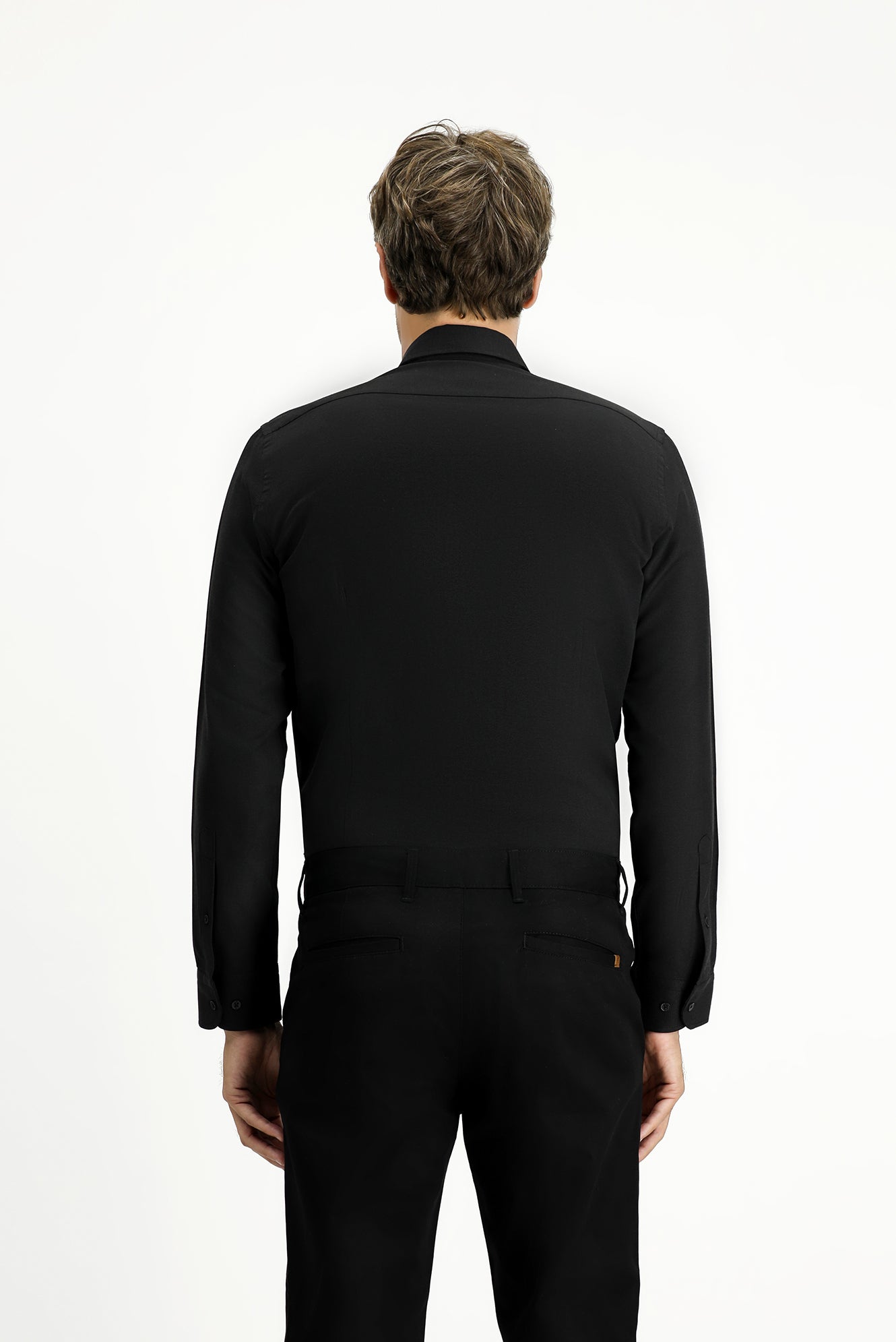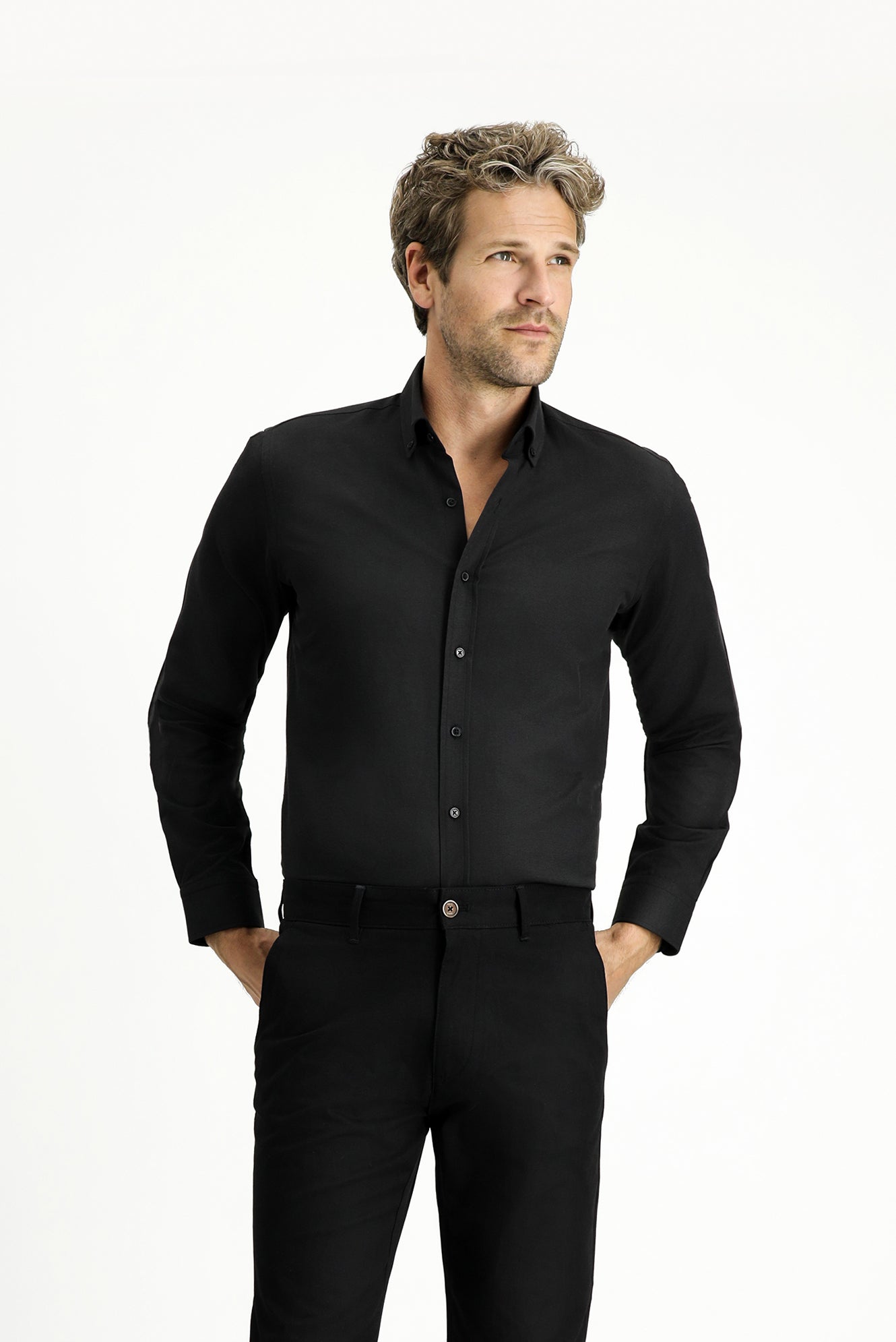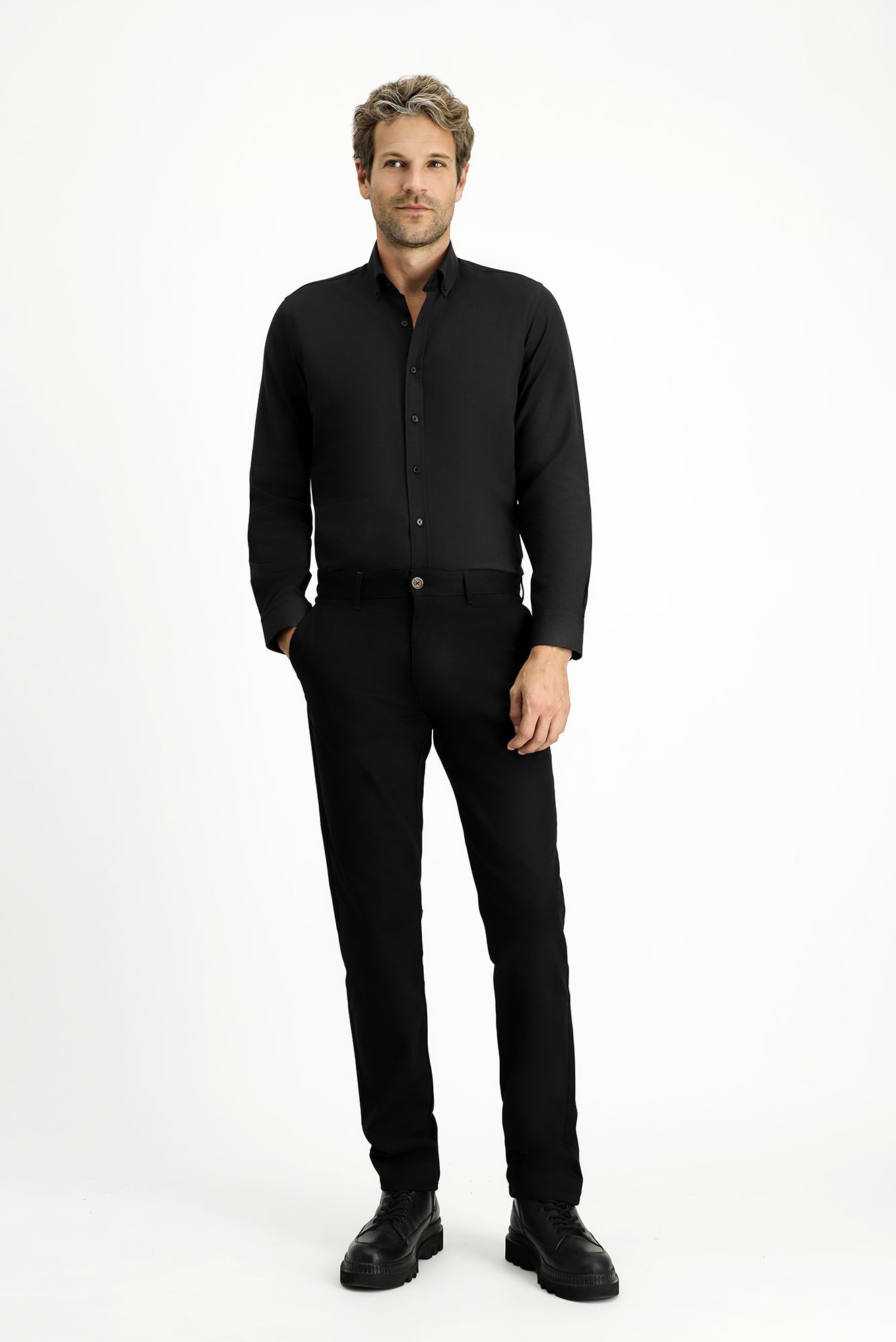 Siyah Uzun Kol Slim Fit Düğmeli Yaka Oxford Pamuklu Kolay Ütülenebilir Gömlek