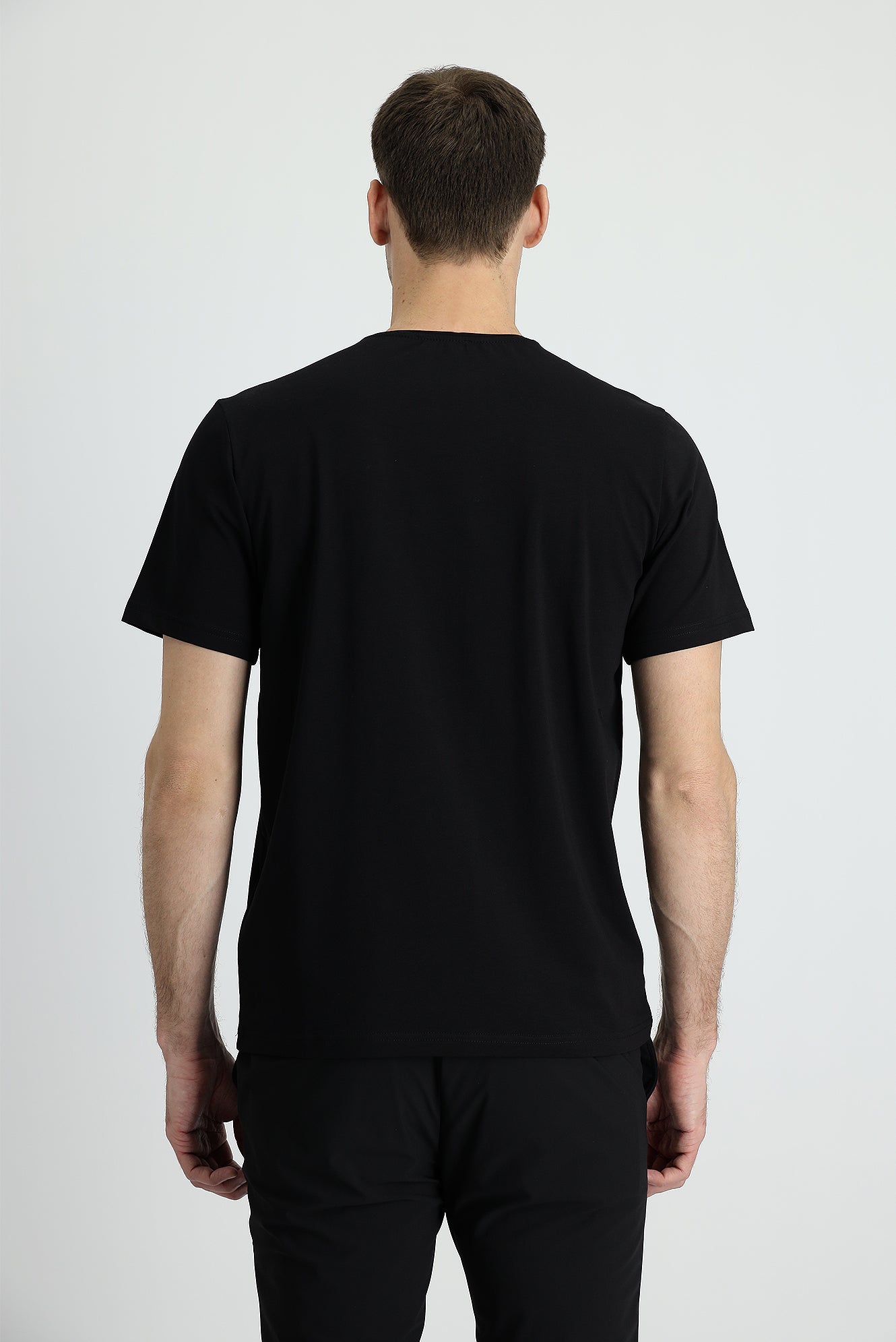 Siyah V Yaka Regular Fit Nakışlı Süprem Tişört