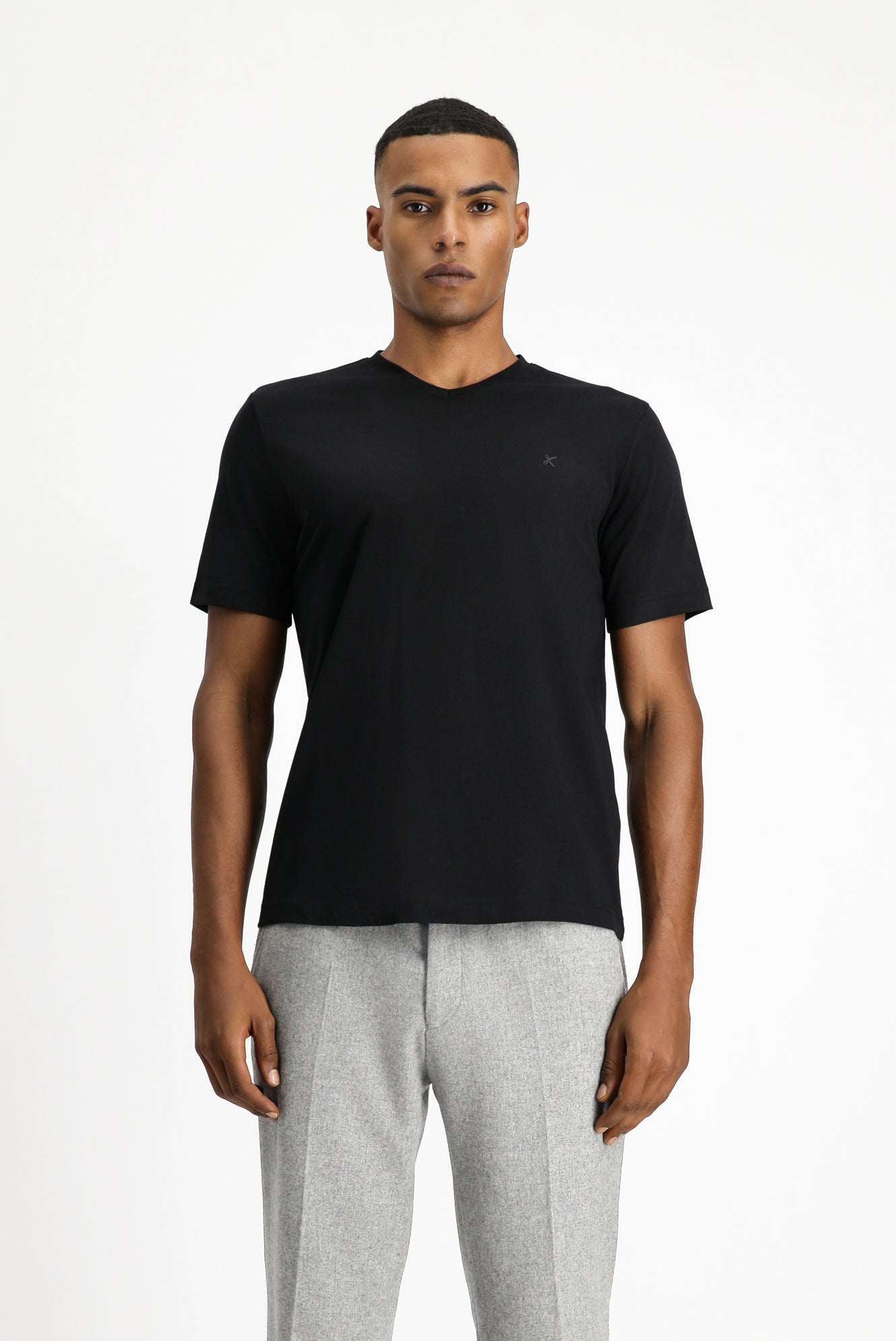 Siyah V Yaka Slim Fit Dar Kesim Süprem Pamuklu Tişört