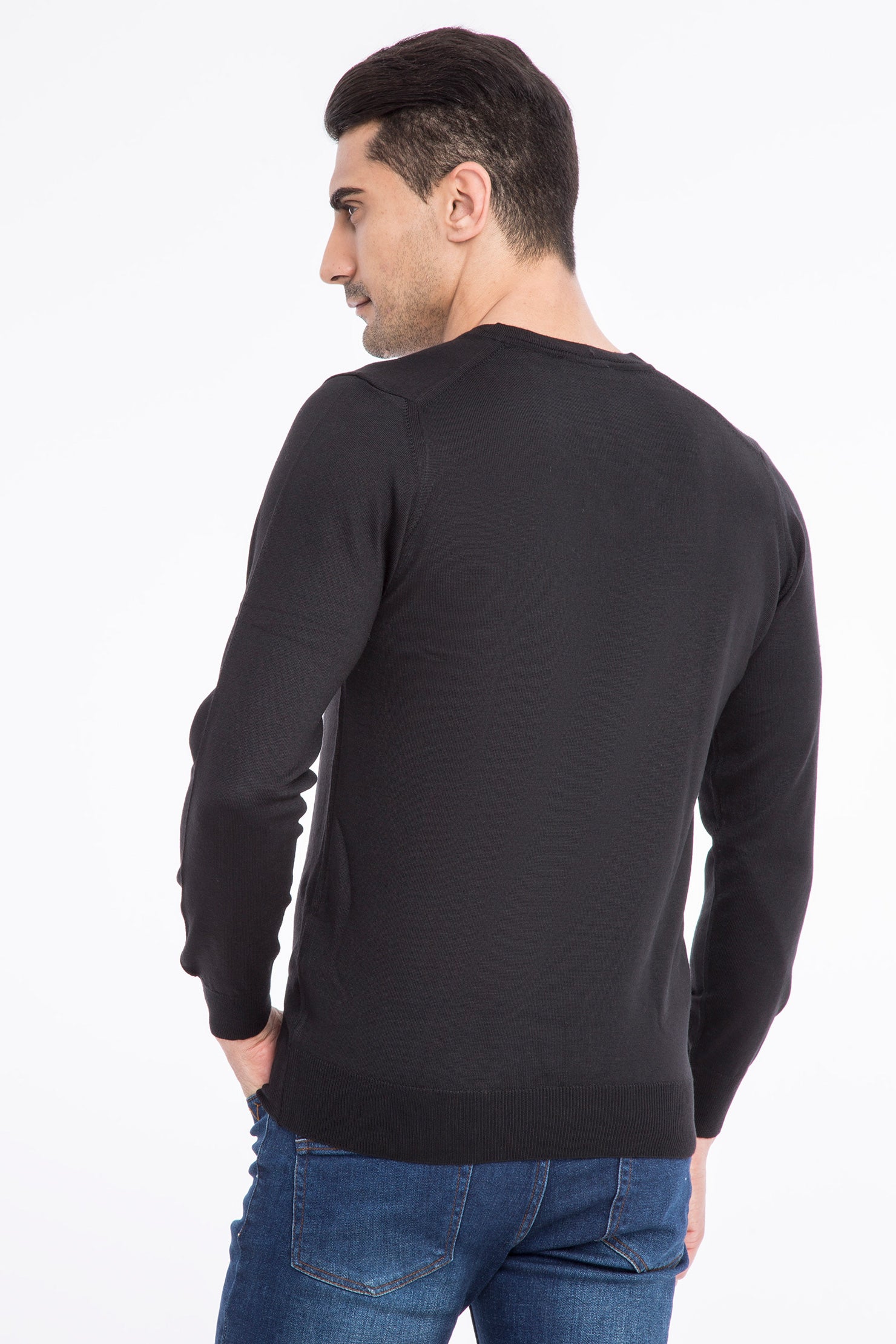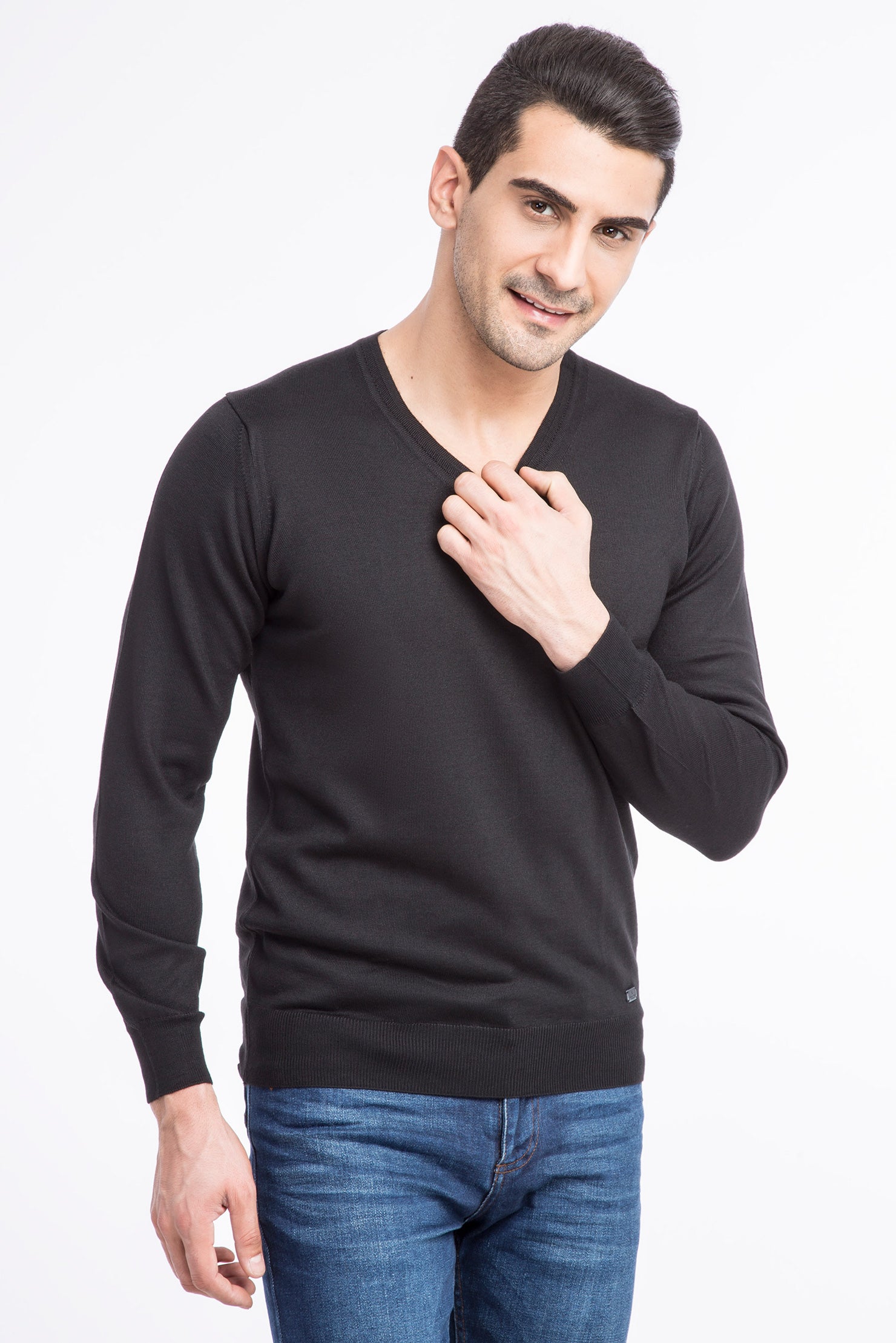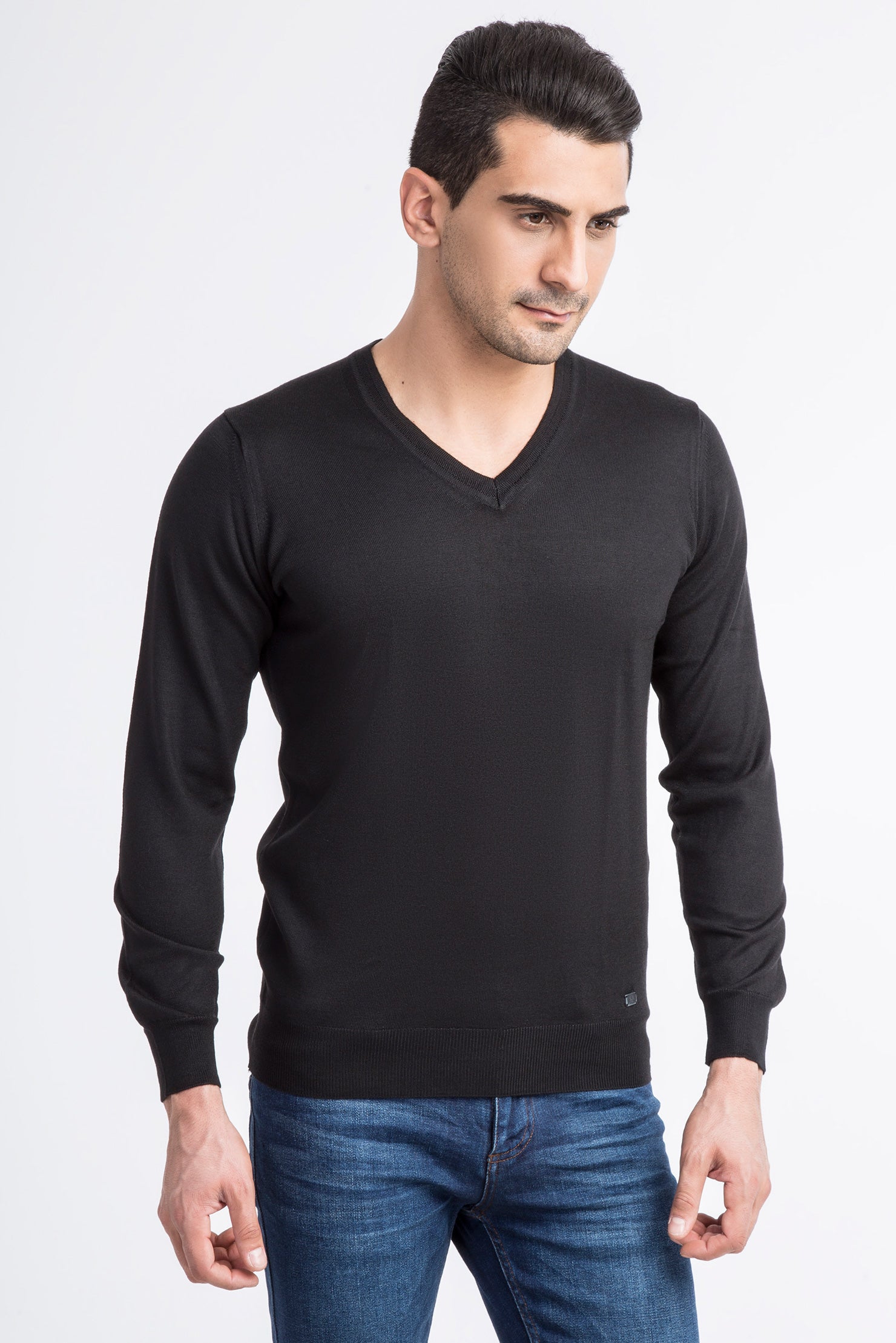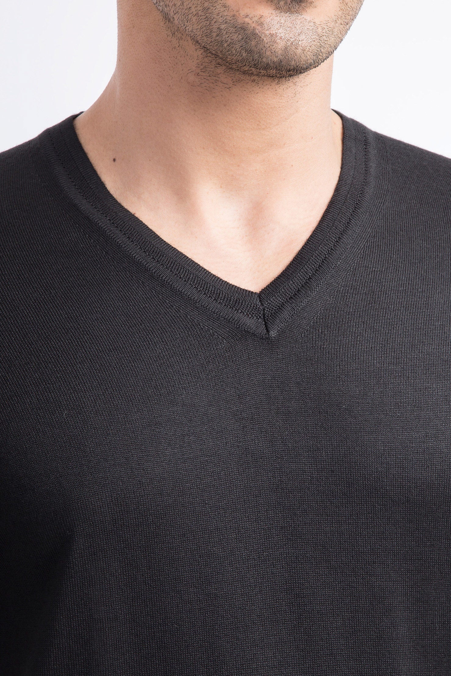 Siyah V Yaka Yünlü Triko Kazak