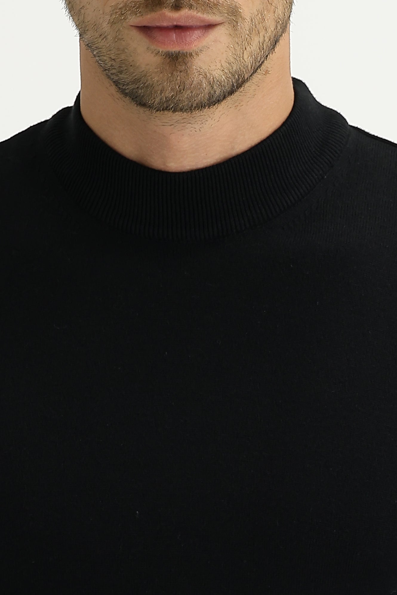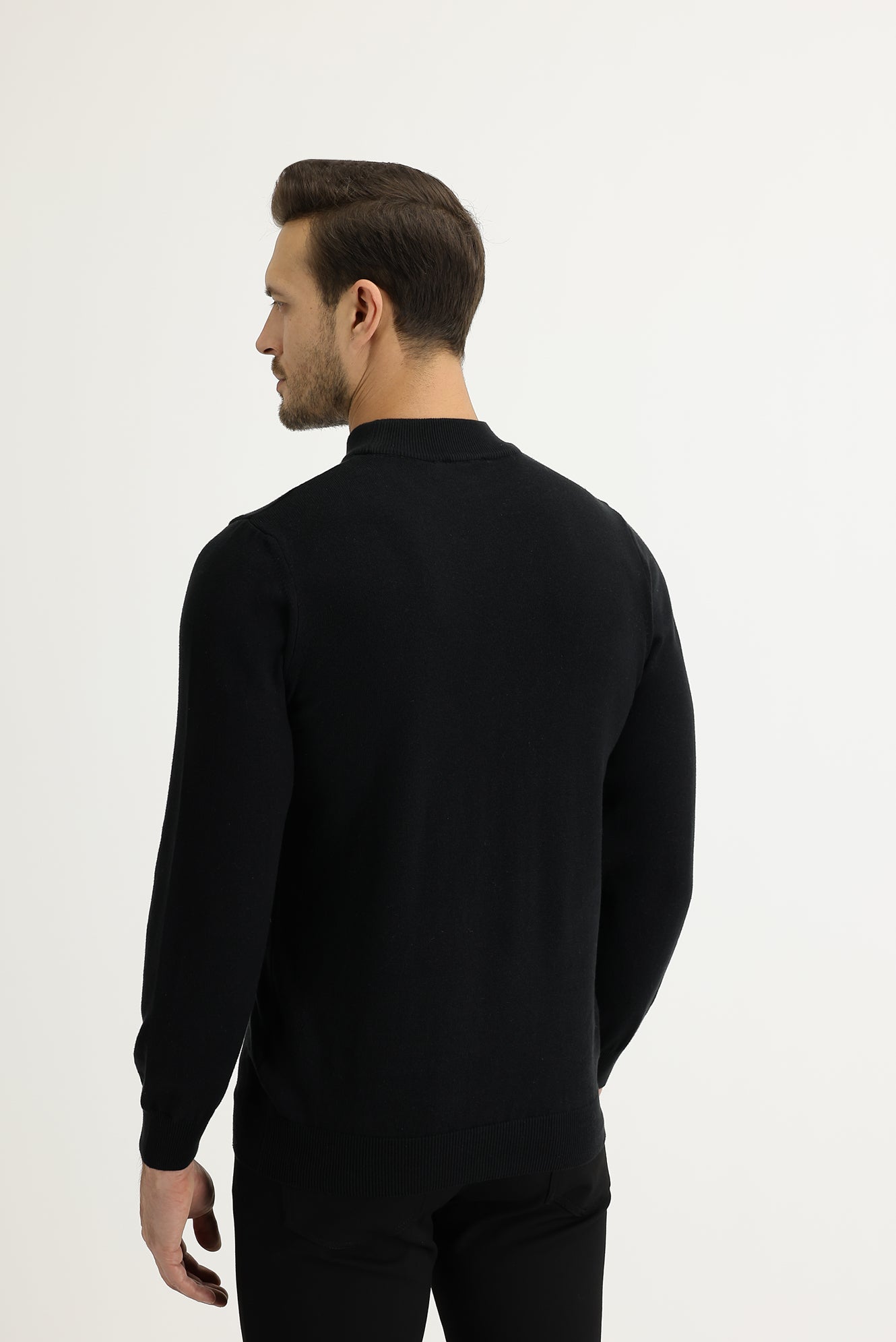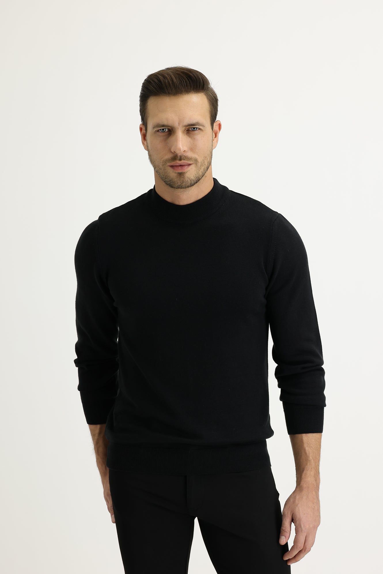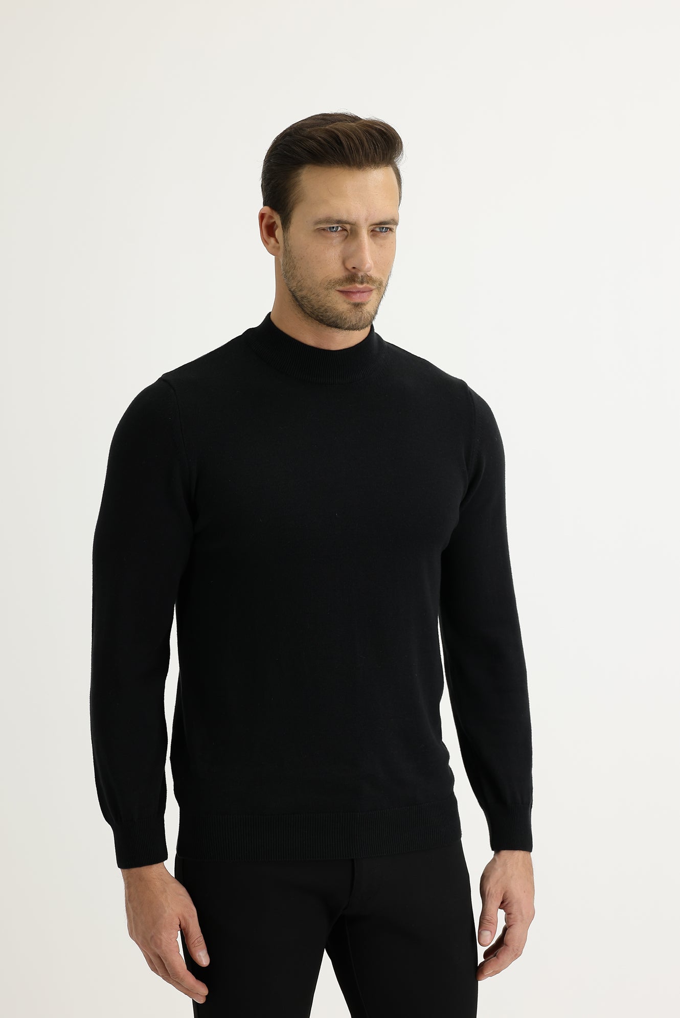 Siyah Yarım Balıkçı Yaka Regular Fit Triko Kazak