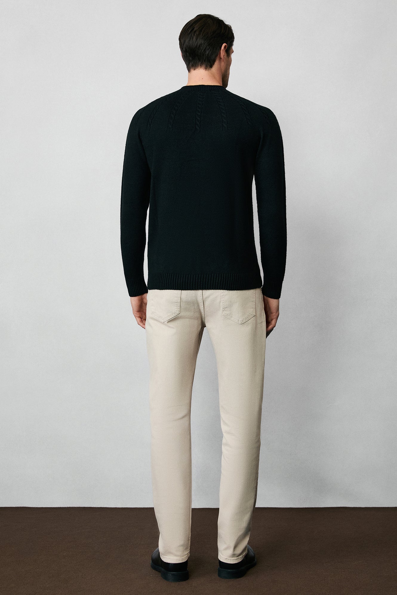 Siyah Yarım Balıkçı Yaka Slim Fit Desenli Dikişsiz Triko Kazak