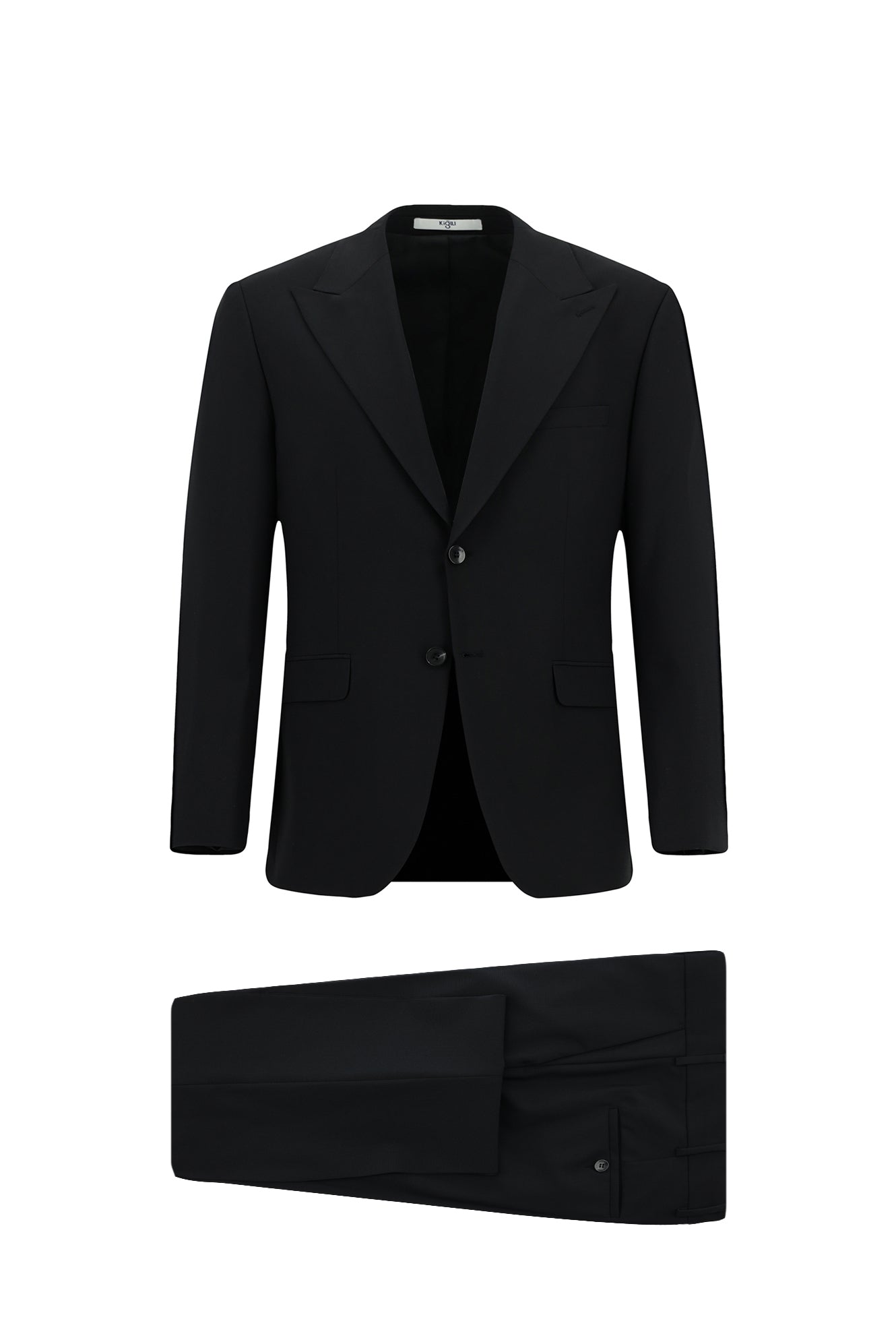 Siyah Slim Fit Dar Kesim Yünlü Klasik Takım Elbise