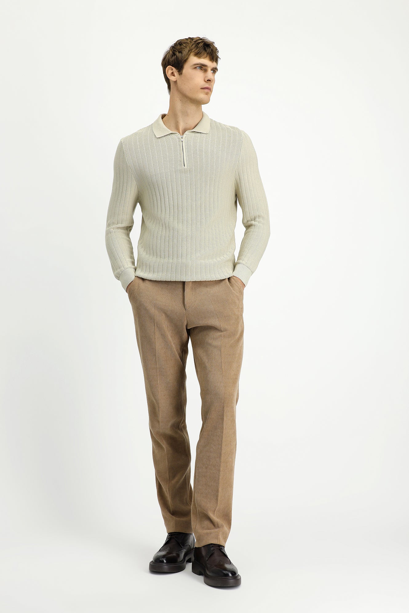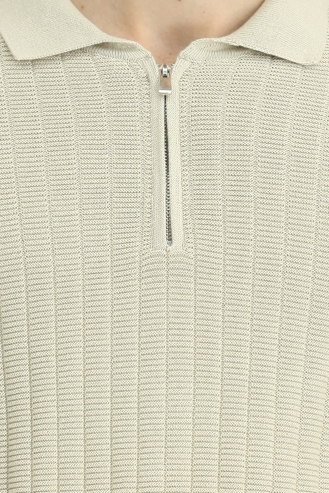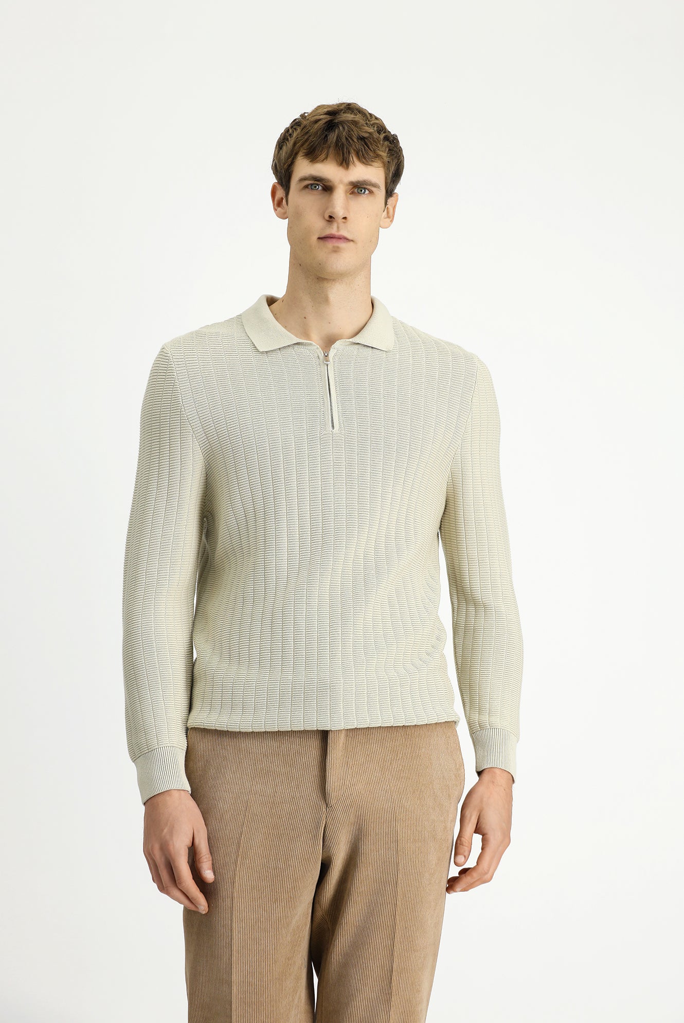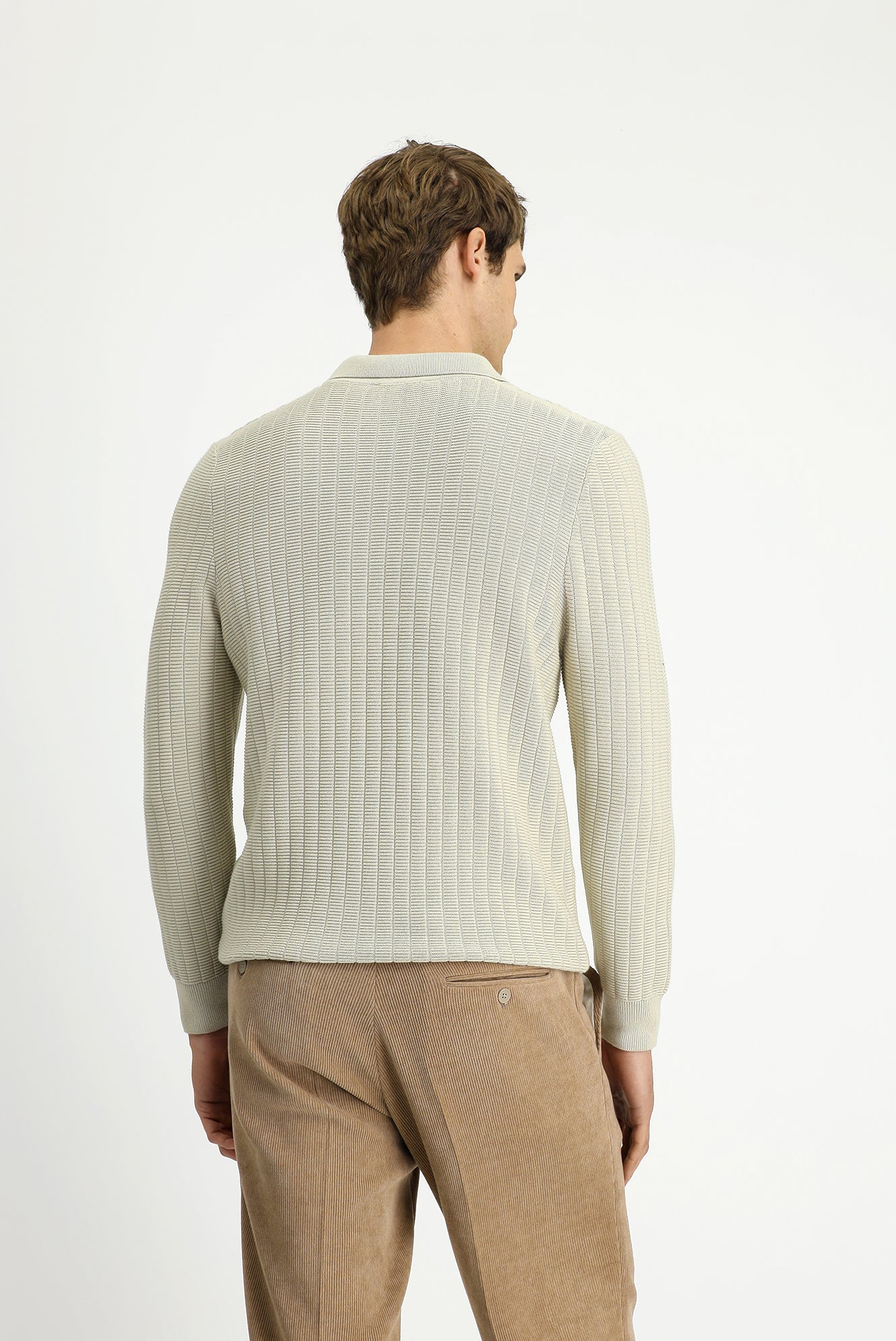 Taş Polo Yaka Regular Fit Desenli Fermuarlı Pamuklu Triko Kazak