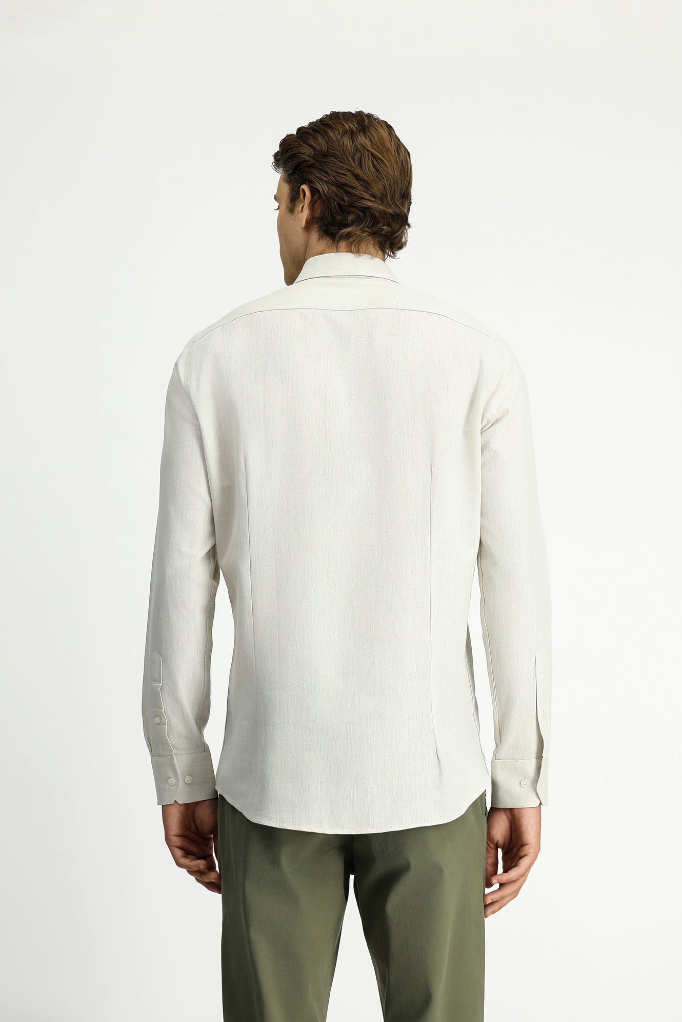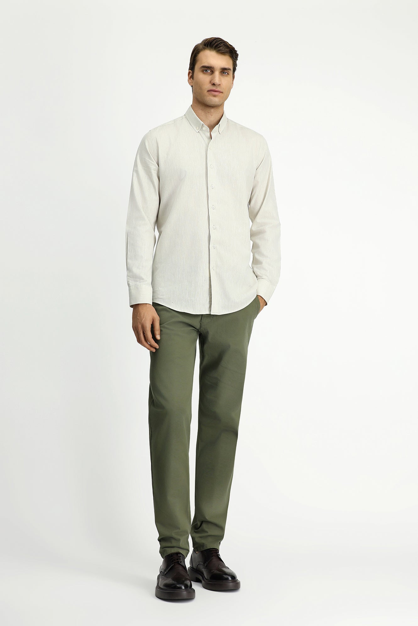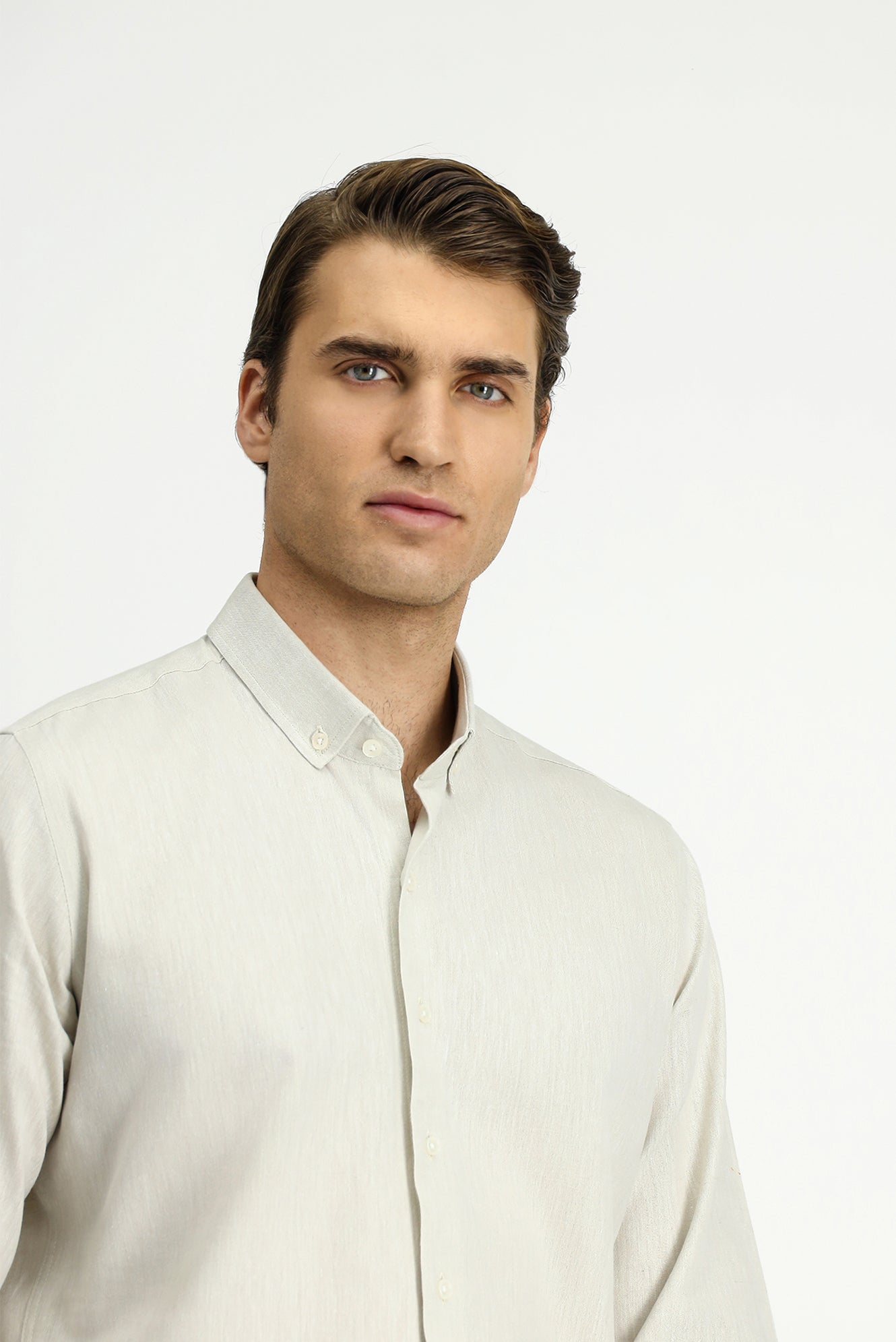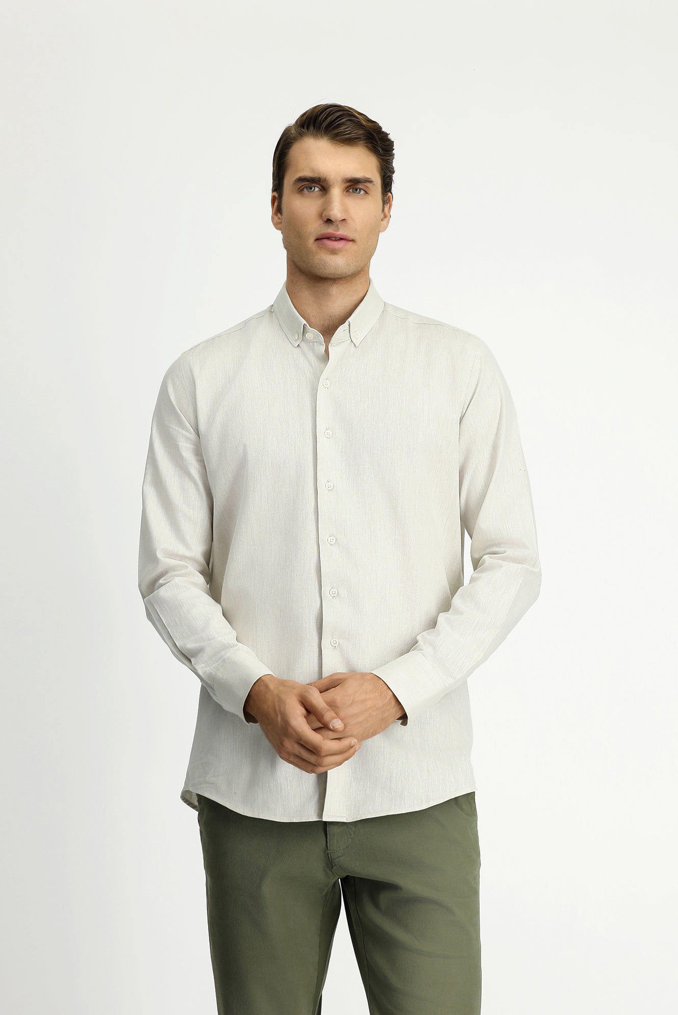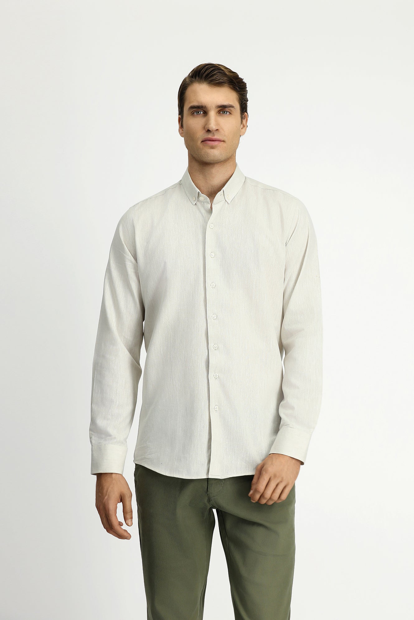 Taş Uzun Kol Slim Fit Dar Kesim Pamuklu Keten Düğmeli Yaka Gömlek