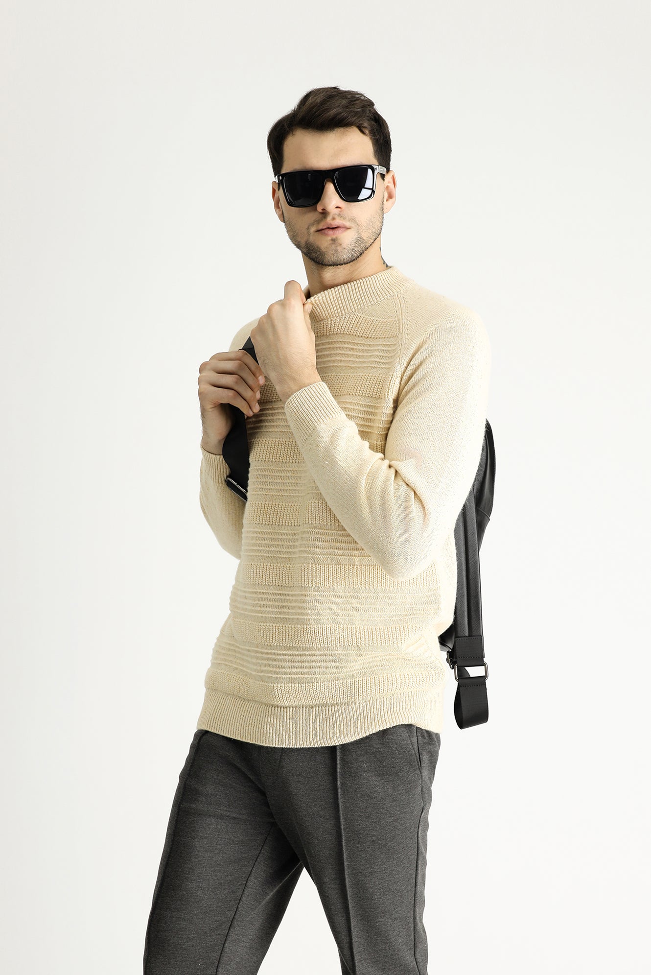 Taş Yarım Balıkçı Yaka Slim Fit Dar Kesim Desenli Yünlü Triko Kazak