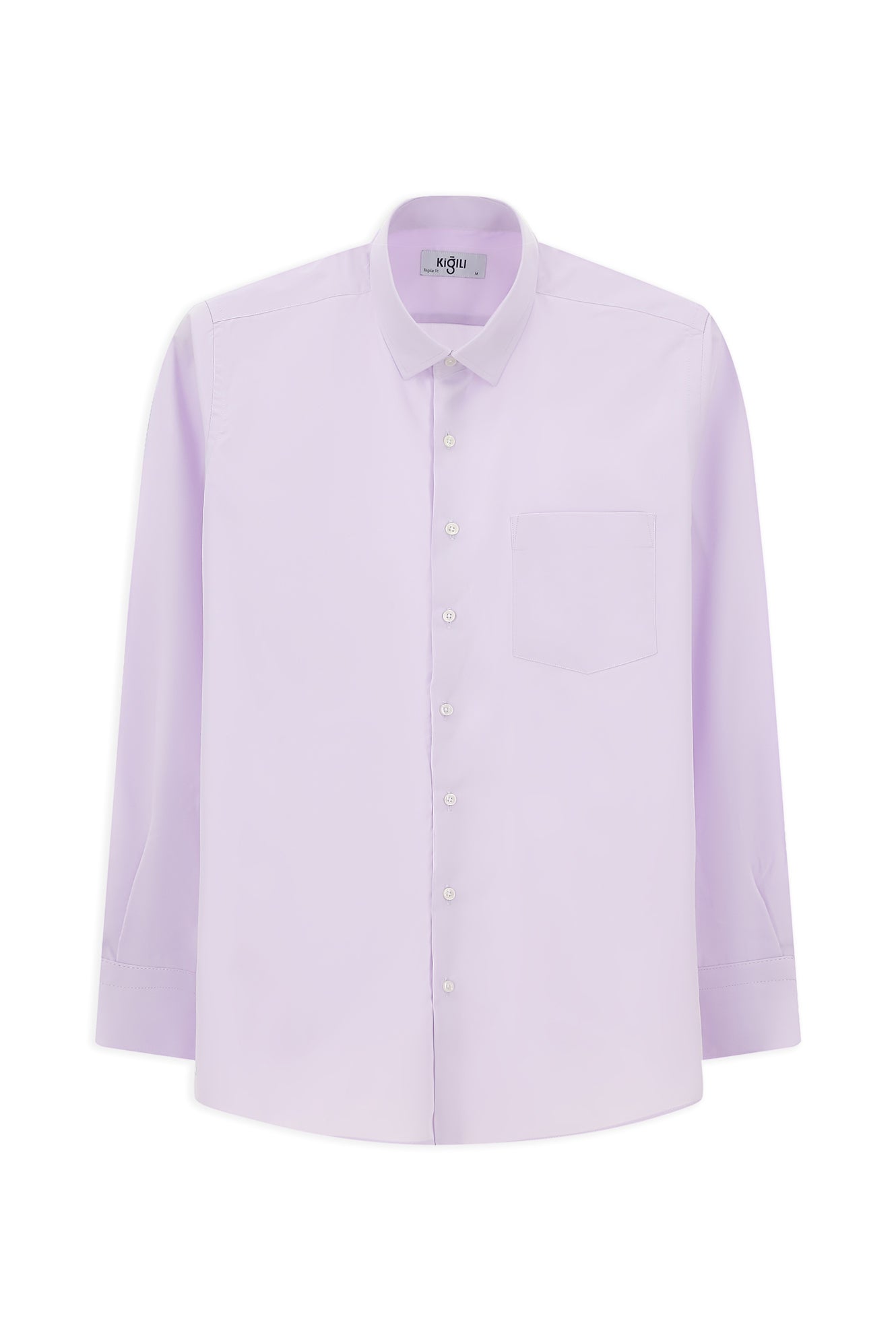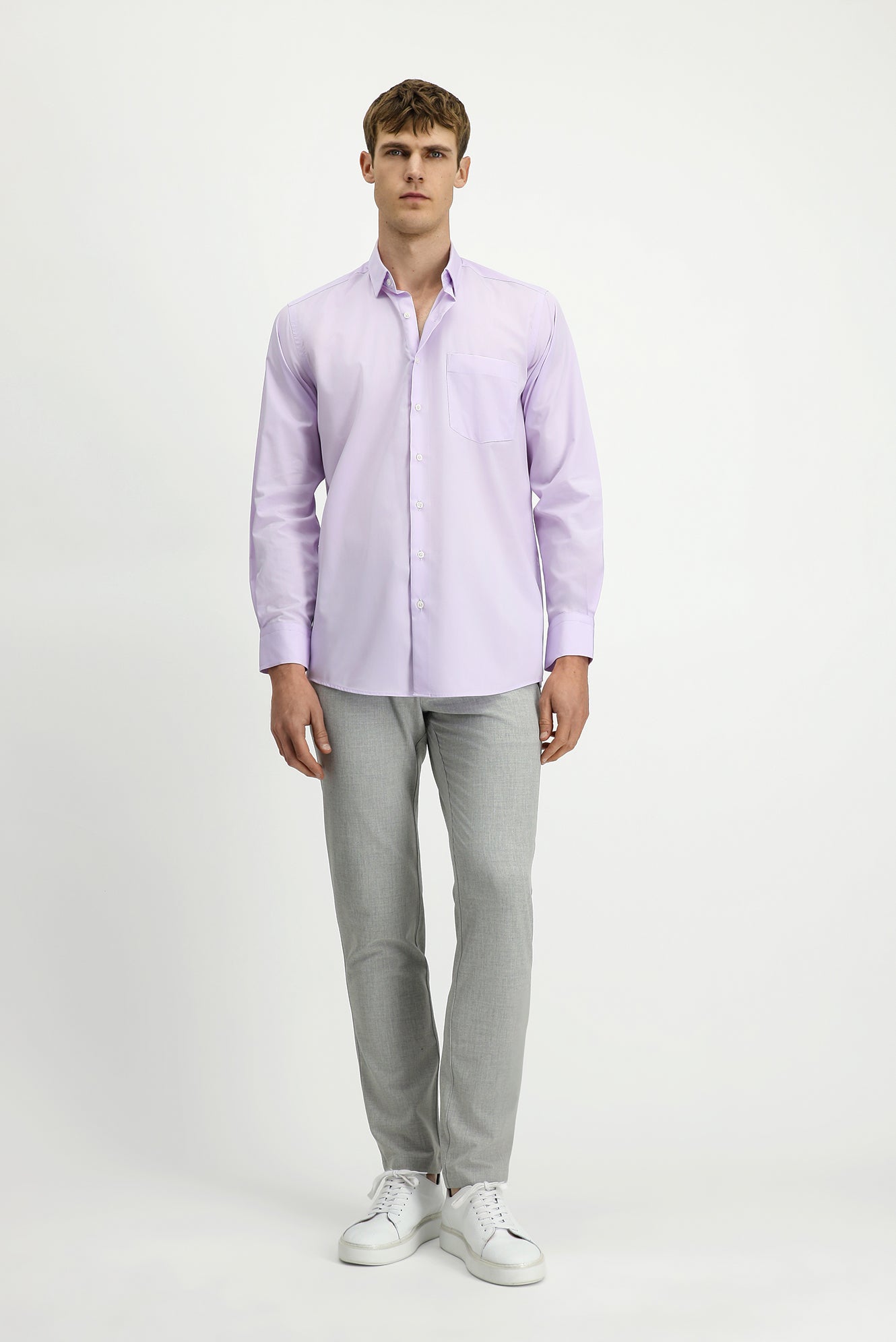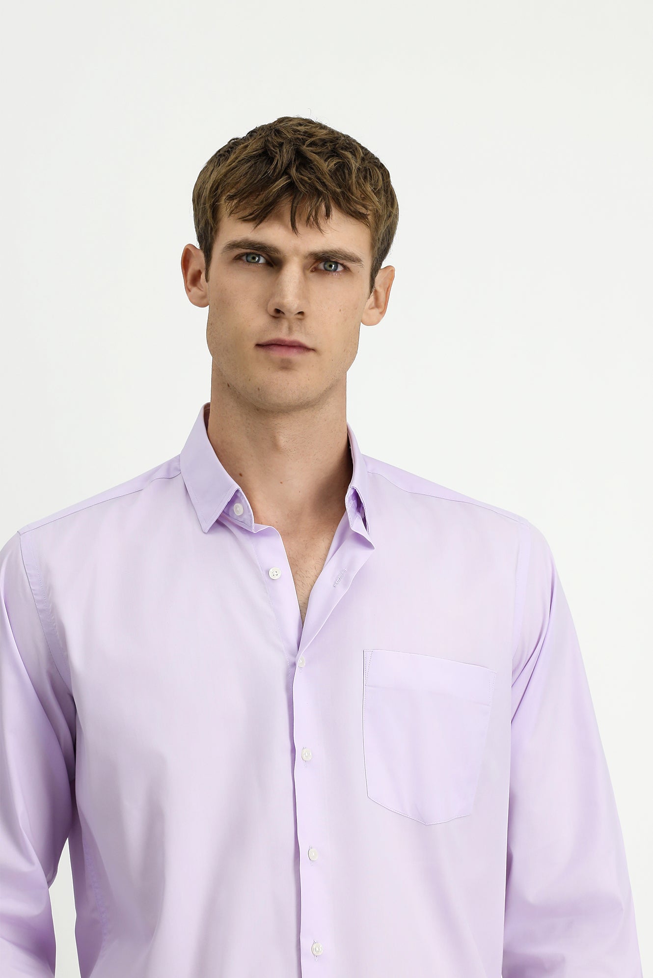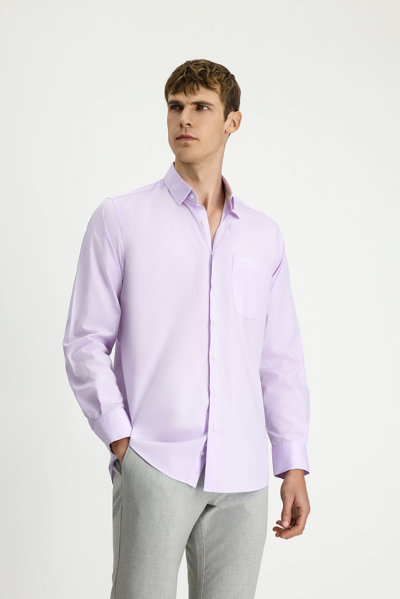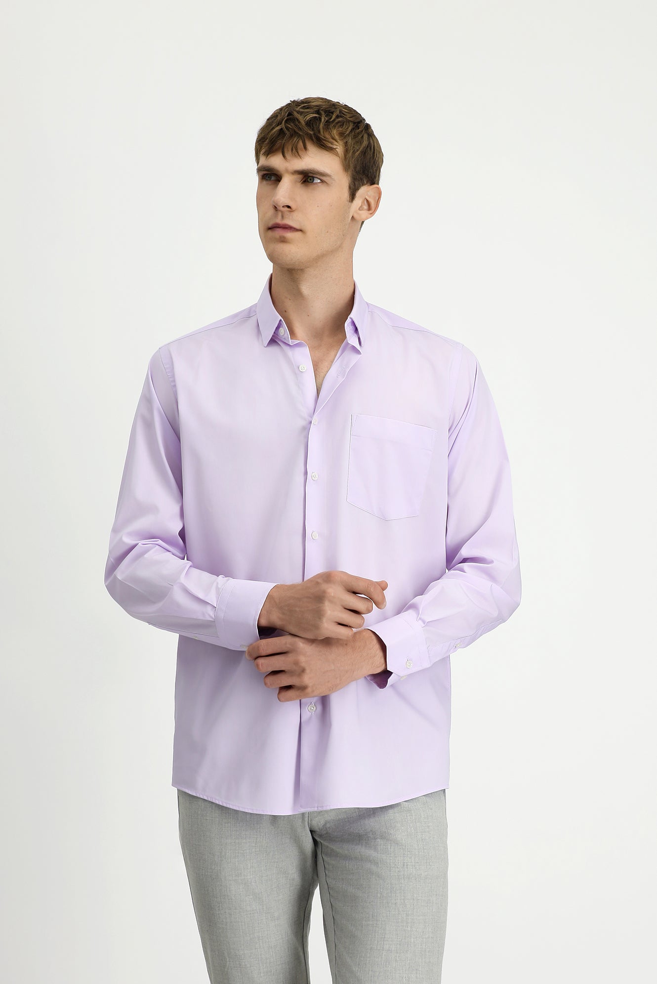 Toz Pembe Uzun Kol Klasik Pamuklu Bambu Gömlek