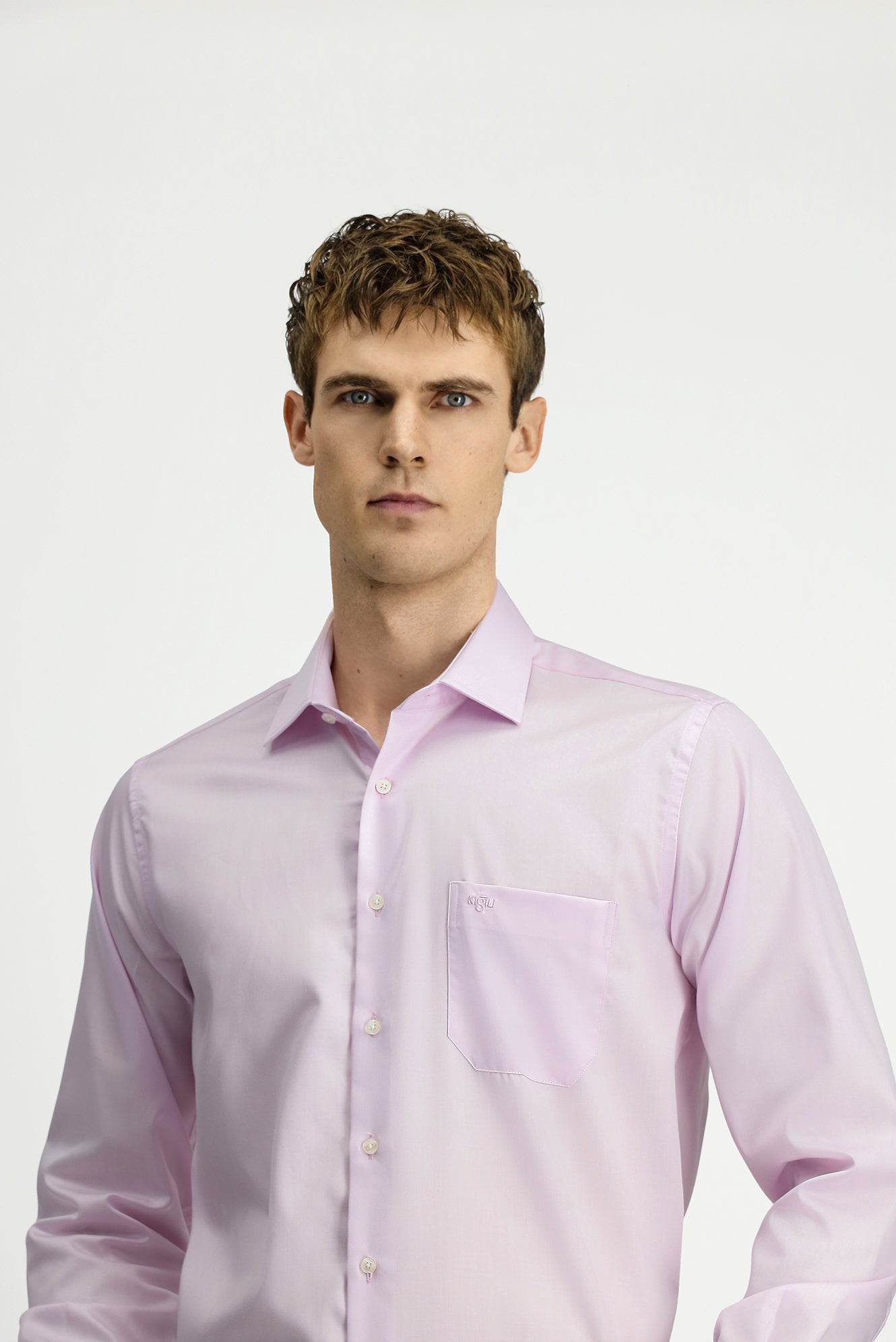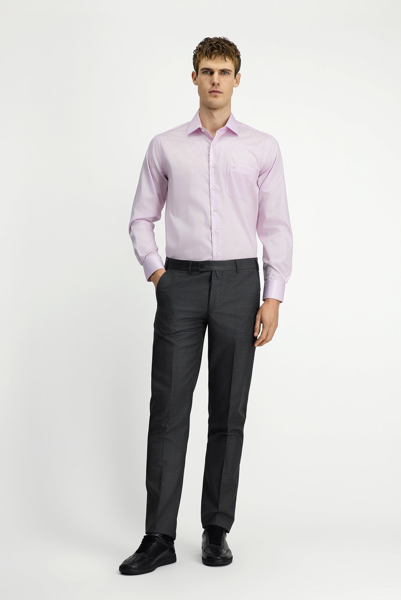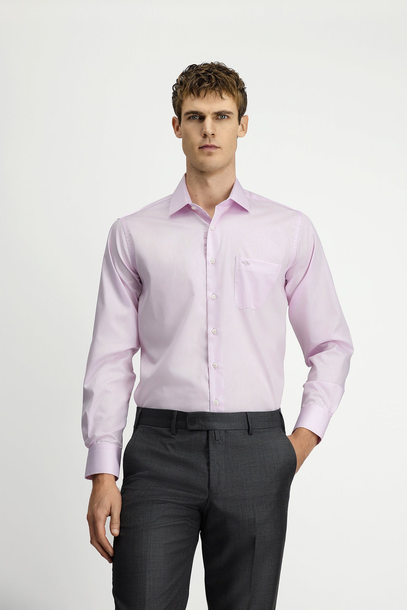 Toz Pembe Uzun Kol Non Iron Saten Klasik Cepli Pamuklu Gömlek