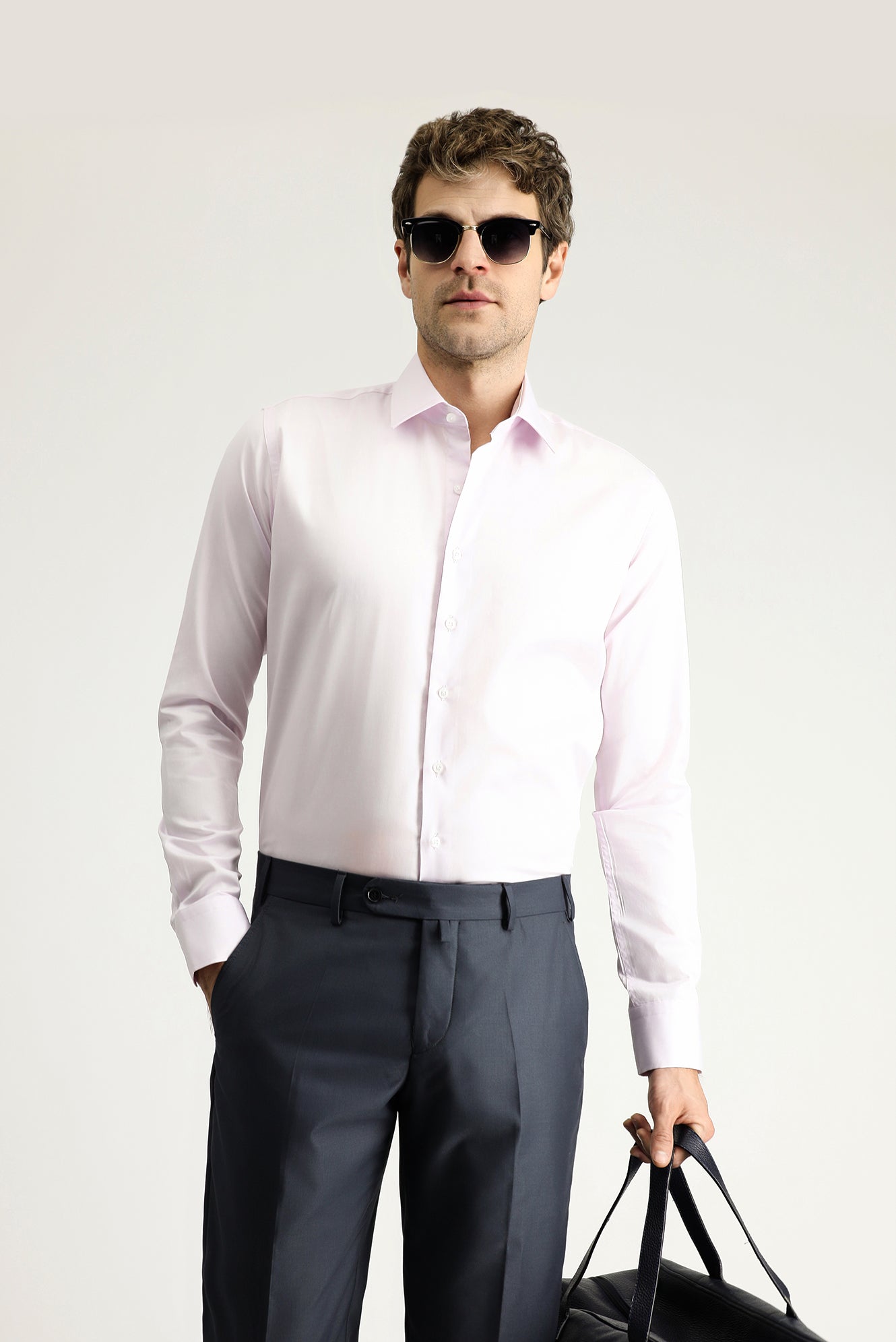 Toz Pembe Uzun Kol Slim Fit Dar Kesim Non Iron Saten Klasik Pamuklu Gömlek