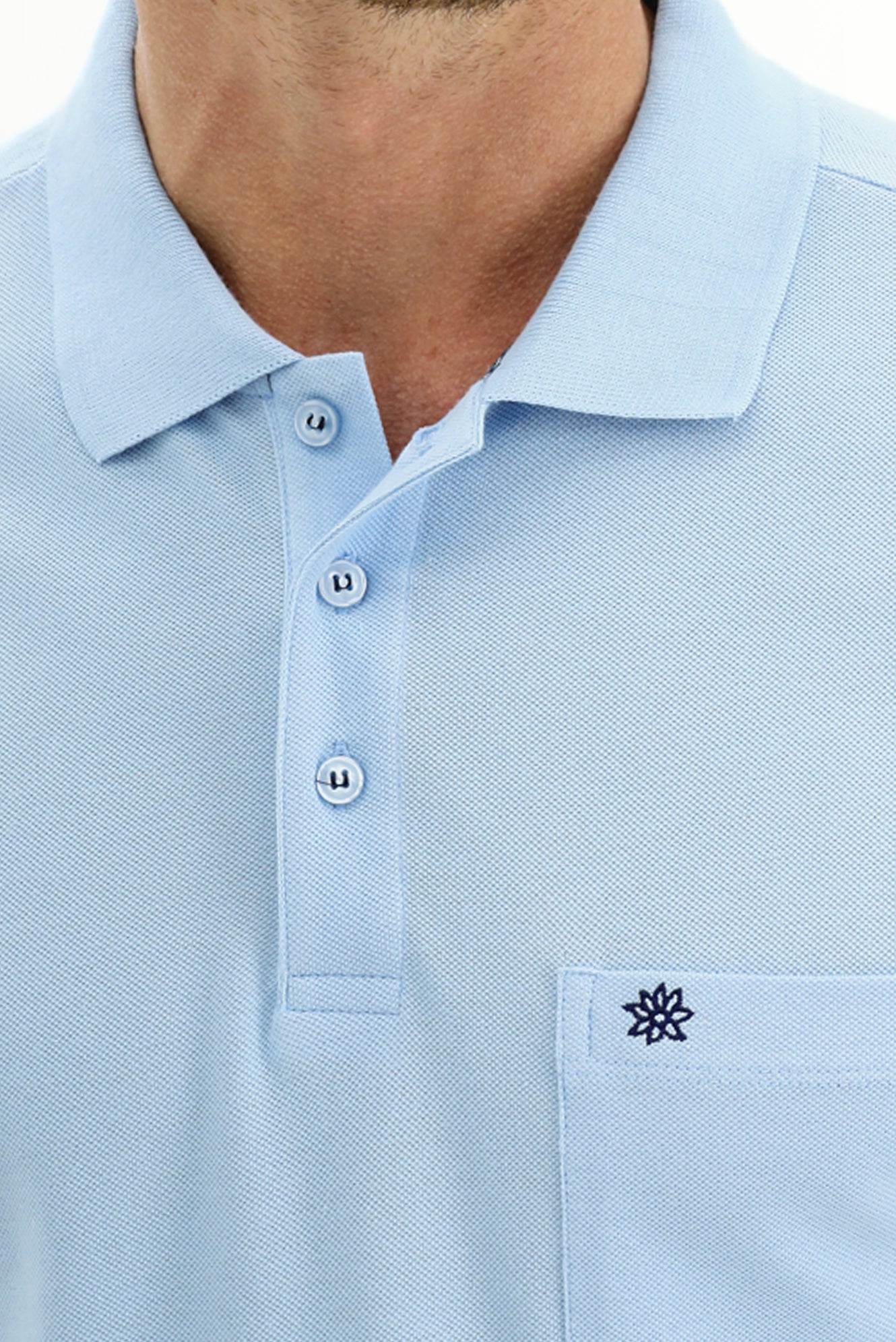 Uçuk Mavi Cepli Polo Yaka Regular Fit Pamuk Tişört