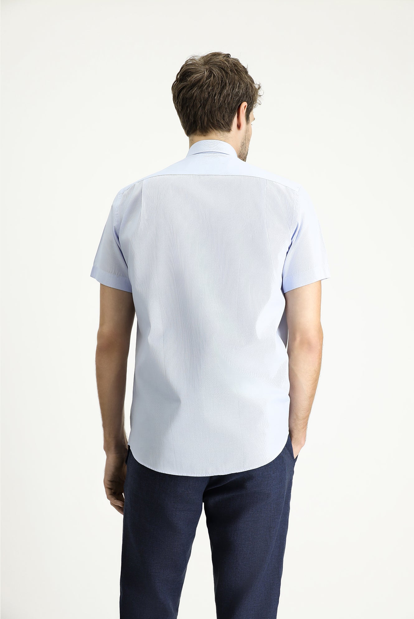 Uçuk Mavi Kısa Kol Regular Fit Çizgili Pamuklu Gömlek