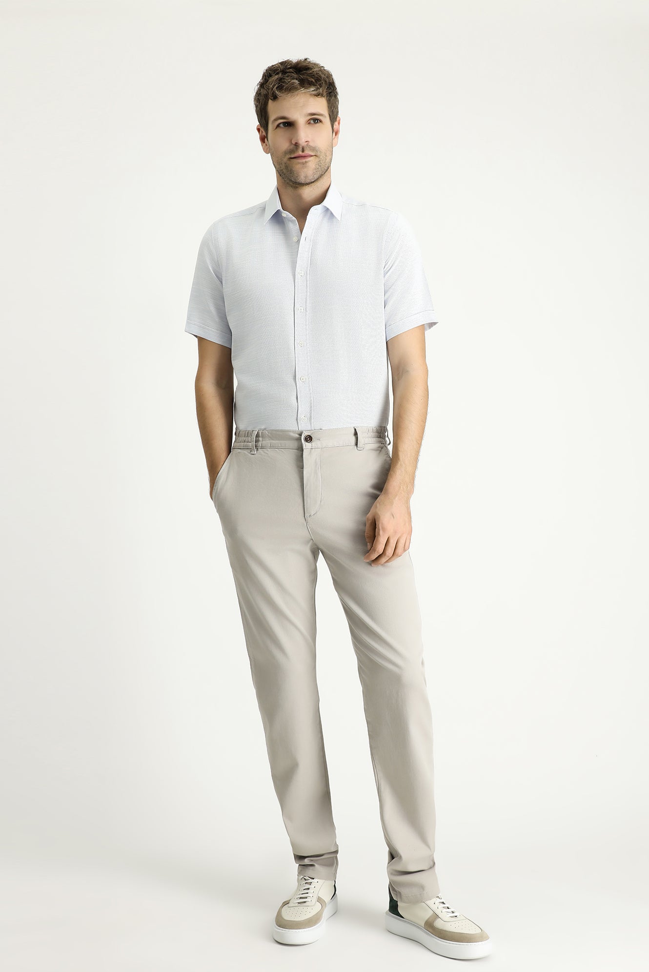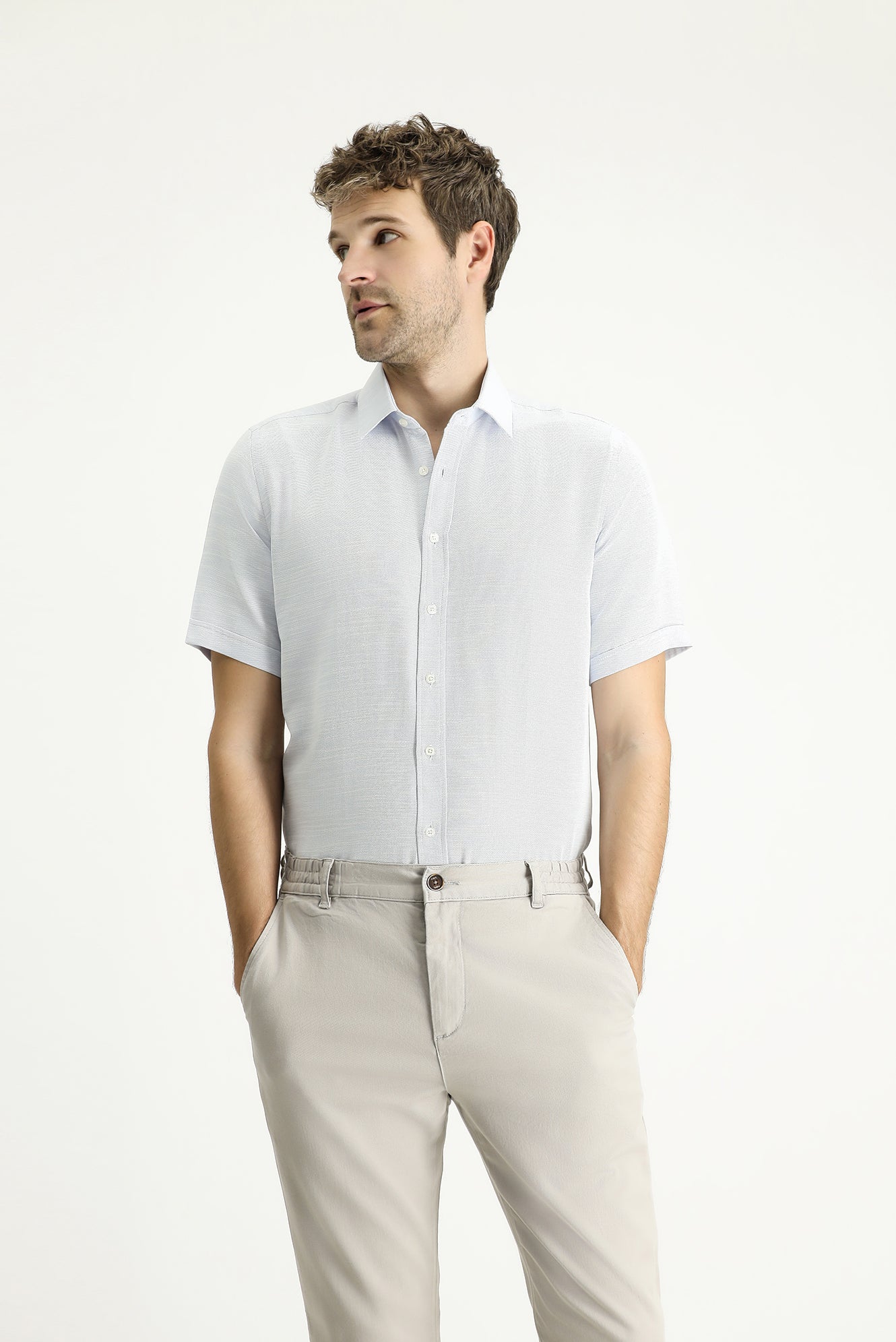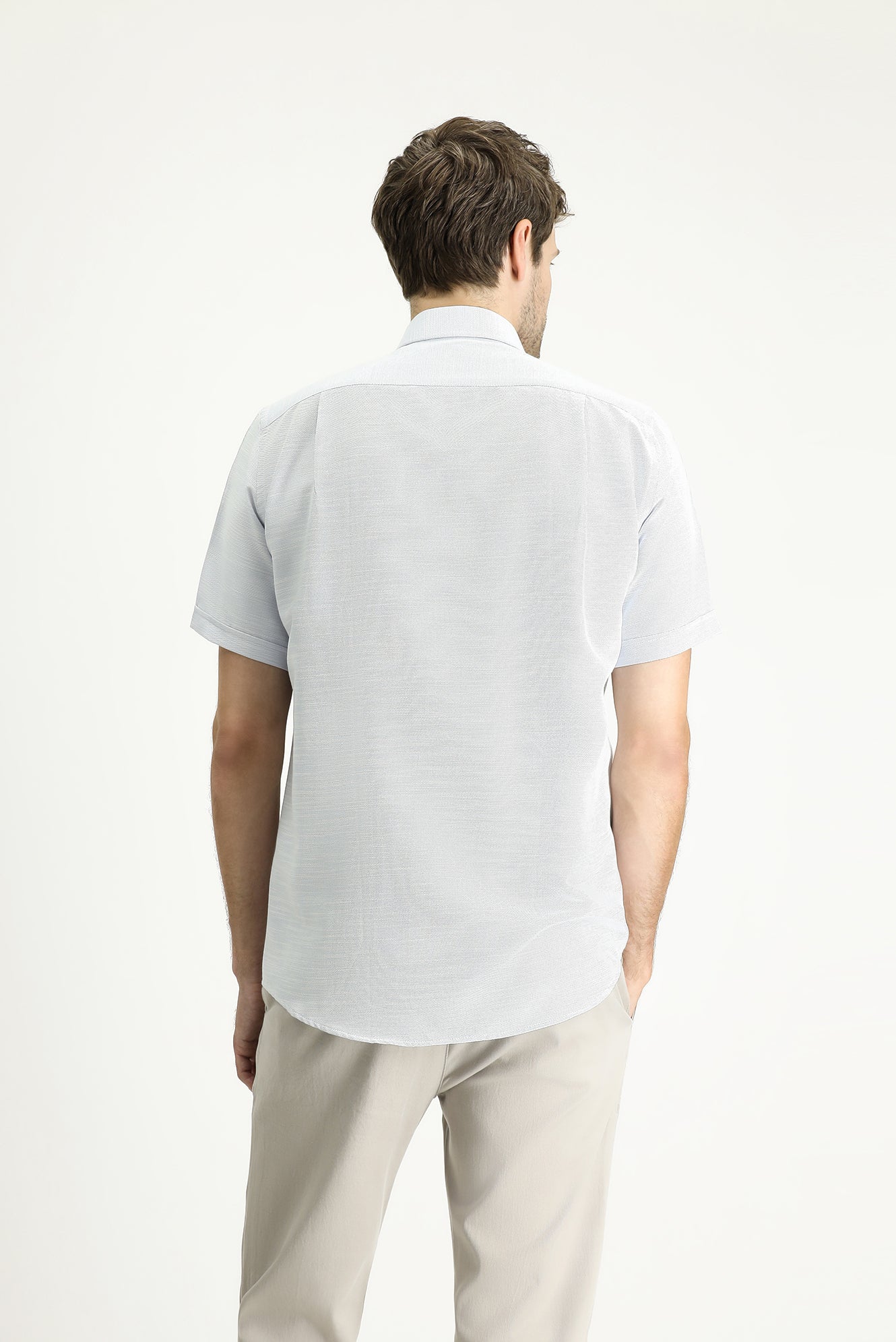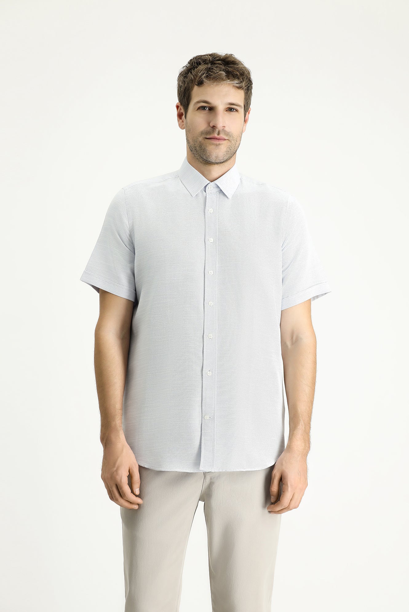 Uçuk Mavi Kısa Kol Regular Fit Keten Görünümlü Pamuklu Gömlek