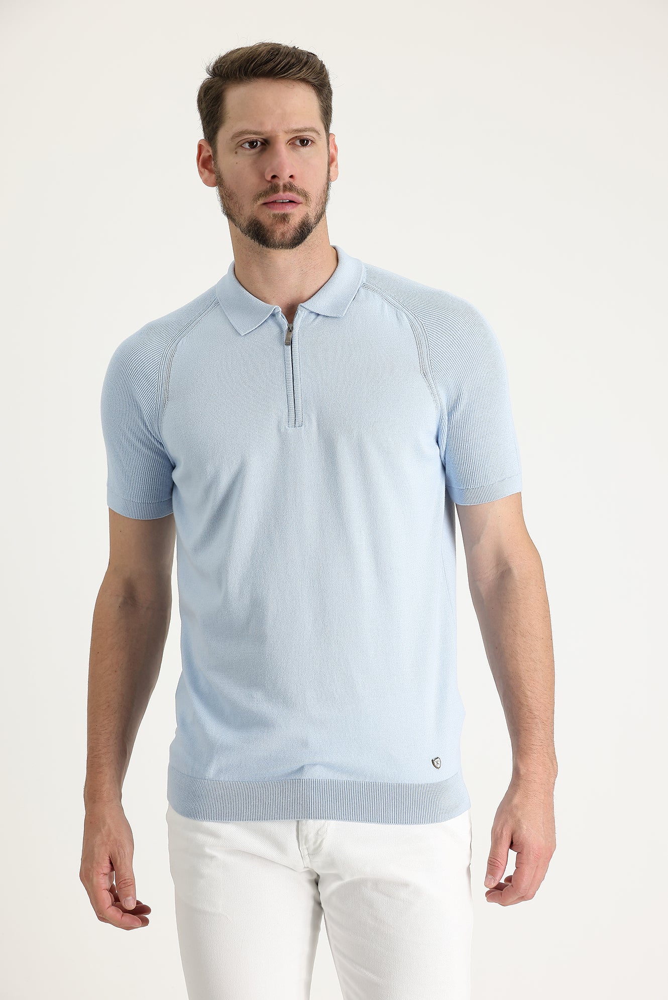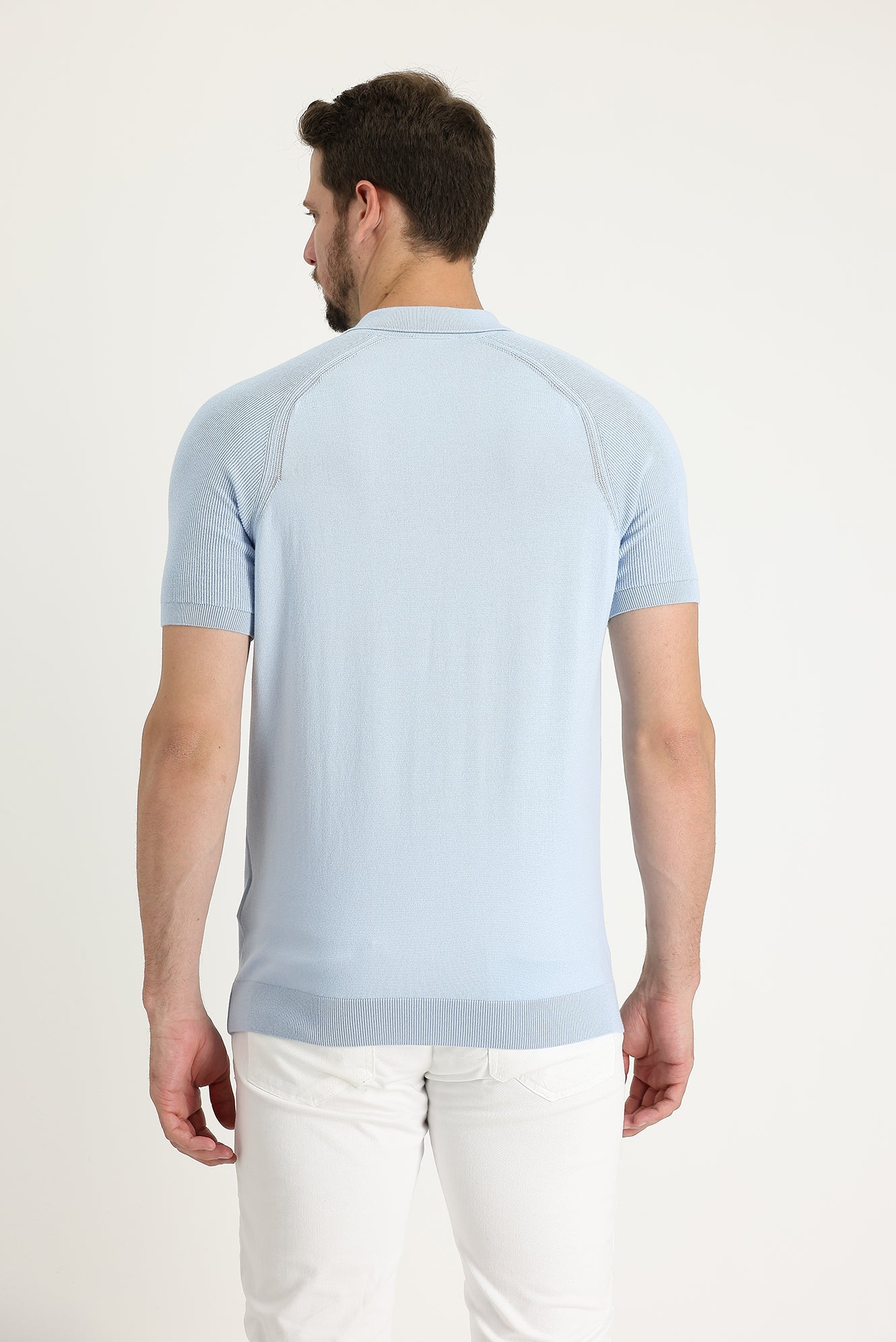 Uçuk Mavi Polo Yaka Desenli Tişört